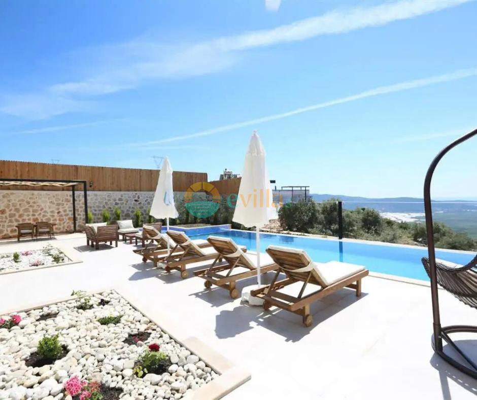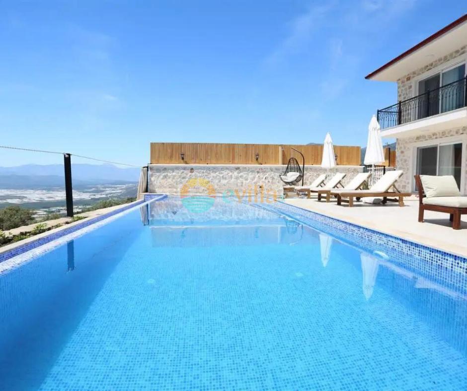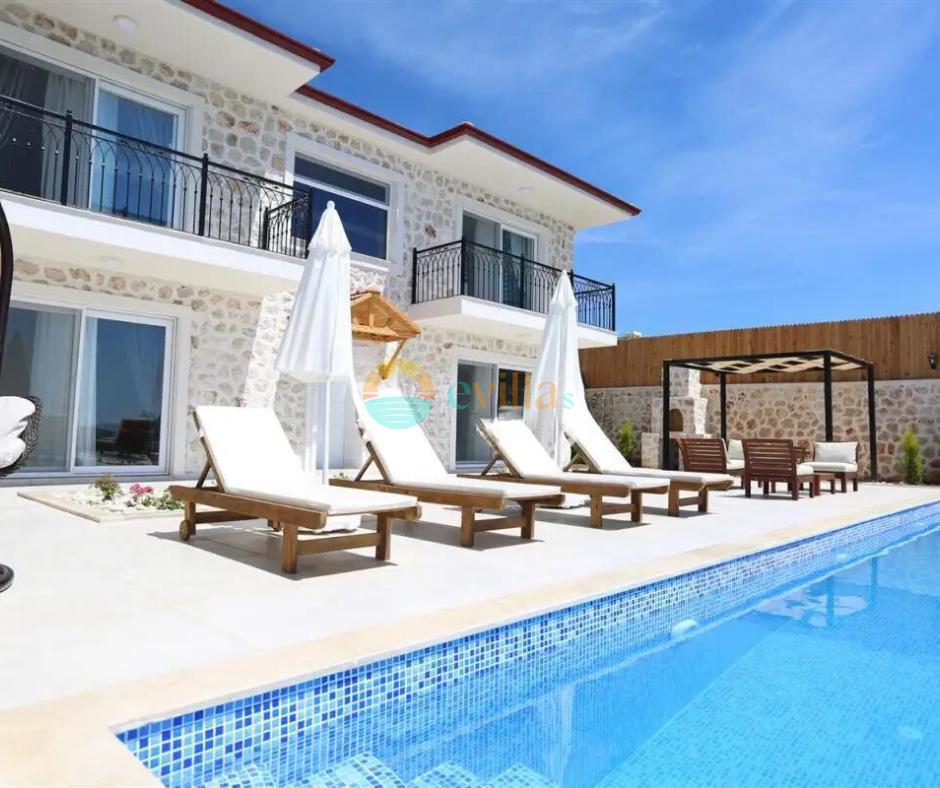 Die Villa zur Miete Kalkan Kaş ist ein freistehender Rückzugsort mit einem konservativen Pool, der seine Gäste zum Entspannen und Genießen der mediterranen Sonne einlädt. Diese Villa liegt in der ruhigen Gegend von Kaş Kalkan Üzümlü und bietet Urlaubern eine luxuriöse Entspannungsmöglichkeit. Wenn Sie die Villa betreten, werden Sie von einem geschmackvoll eingerichteten Innenraum mit modernen Annehmlichkeiten und bequemen Möbeln begrüßt. Die Küche ist für diejenigen, die gerne kochen, gut ausgestattet und bietet gleichzeitig eine komfortable Umgebung, die sich perfekt als Ergänzung zu den Wohnräumen eignet. Aber was diese Villa wirklich auszeichnet, sind ihre Außenbereiche. Der große Pool, der gepflegte Garten und die großen Terrassen bieten zahlreiche Möglichkeiten für Outdoor-Vergnügen, egal ob Sie in der Sonne faulenzen oder im Freien unter dem Sternenhimmel speisen.