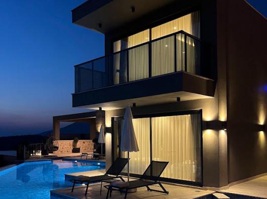Unsere Villa ist eine hochmoderne und luxuriöse Villa mit einer Kapazität von 8 Gästen in 4 Schlafzimmern. Mit seinen vorteilhaften Ausstattungsmerkmalen wie Innen- und Außenpools sowie Sauna und Türkischem Bad ist unsere Villa der perfekte Ort für Familien und Freunde, um eine schöne Zeit miteinander zu verbringen. Die Poolterrasse unserer Villa ist groß und bietet den Gästen viel Platz zum Sonnenbaden, Entspannen und sogar zum Essen im Freien, während sie den spektakulären Sonnenuntergang von Kalkan über den darunter liegenden Buchten beobachten. Der Keller der Villa bietet Ihnen stundenlange Unterhaltung, egal ob Sie mitten im Sommer hier übernachten oder einen gemütlichen Winterurlaub verbringen möchten. Sauna, Türkisches Bad, Innenpool und Kinoraum sind in der Villa enthalten und bieten das ultimative Luxuserlebnis.