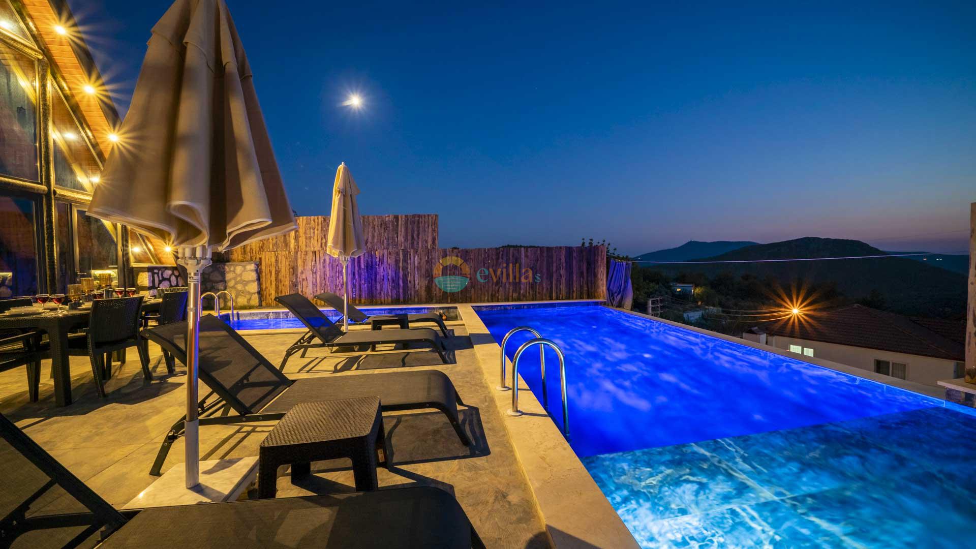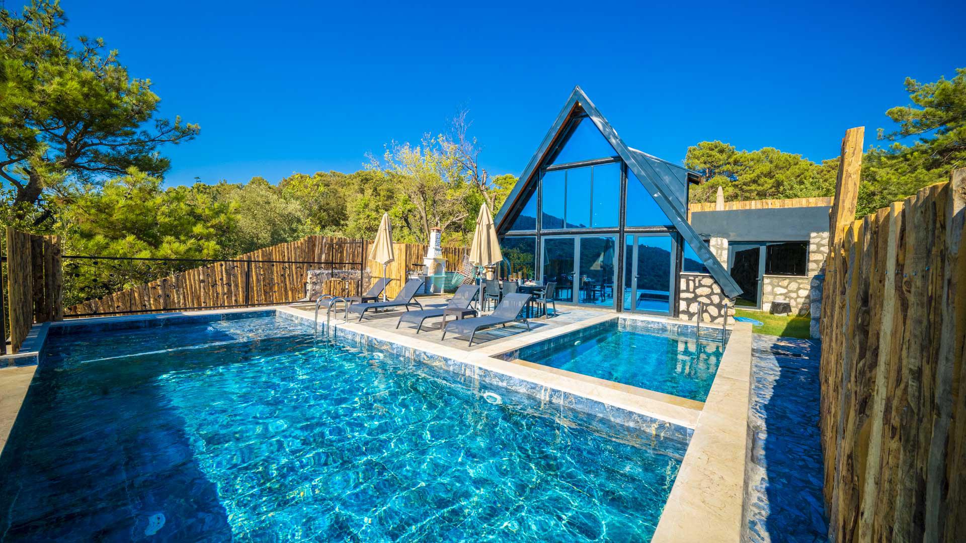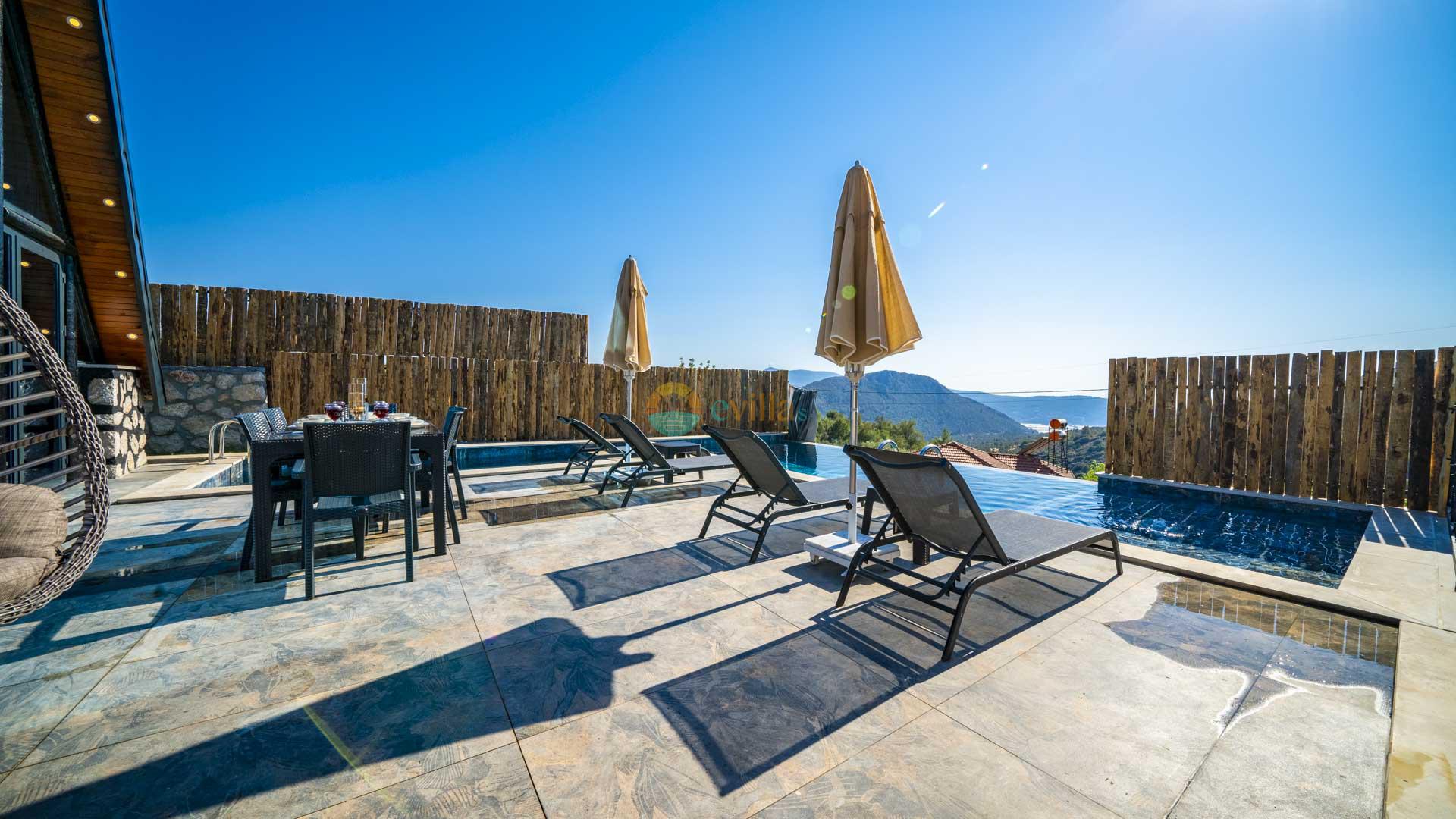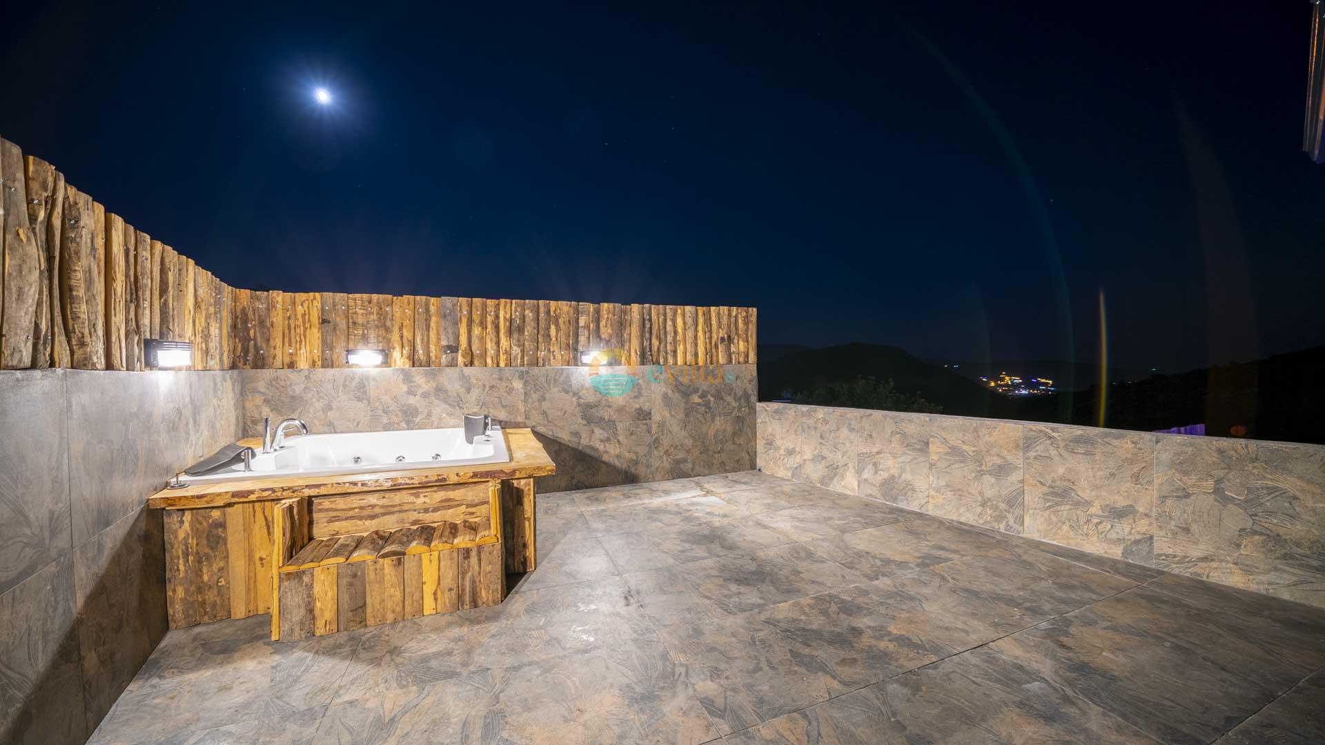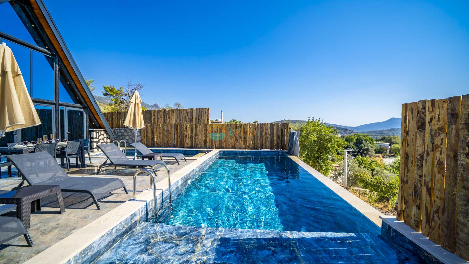 Unsere Villa wurde mit Blick auf jedes Detail für diejenigen entworfen, die einen ruhigen Urlaub in der Natur verbringen möchten. Es liegt in der Region Kalkan Üzümlü. Unsere Villa verfügt über 2 Schlafzimmer und bietet Platz für 4 Personen. Unsere Villa im Bungalowstil, die im Mittelpunkt der Aufmerksamkeit derjenigen steht, die einen Urlaub in einem anderen Stil suchen, steht im Mittelpunkt der Aufmerksamkeit von Naturliebhabern. Unsere Villa, die mit ihrer modernen, komfortablen Einrichtung und dem Whirlpool auf der Terrasse Ihrem Urlaub eine andere Atmosphäre verleiht, öffnet Ihnen dank ihres von außen geschützten Pools die Türen zu einem Urlaub, den Sie allein mit Ihrer Familie und Ihren Lieben verbringen können.