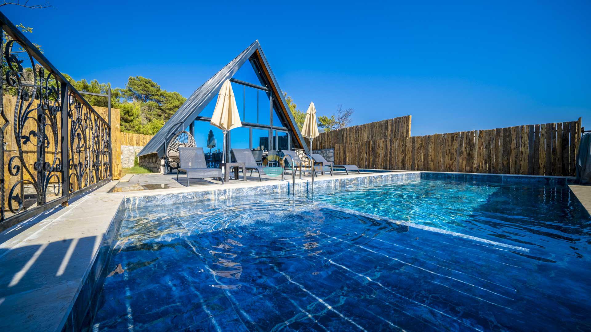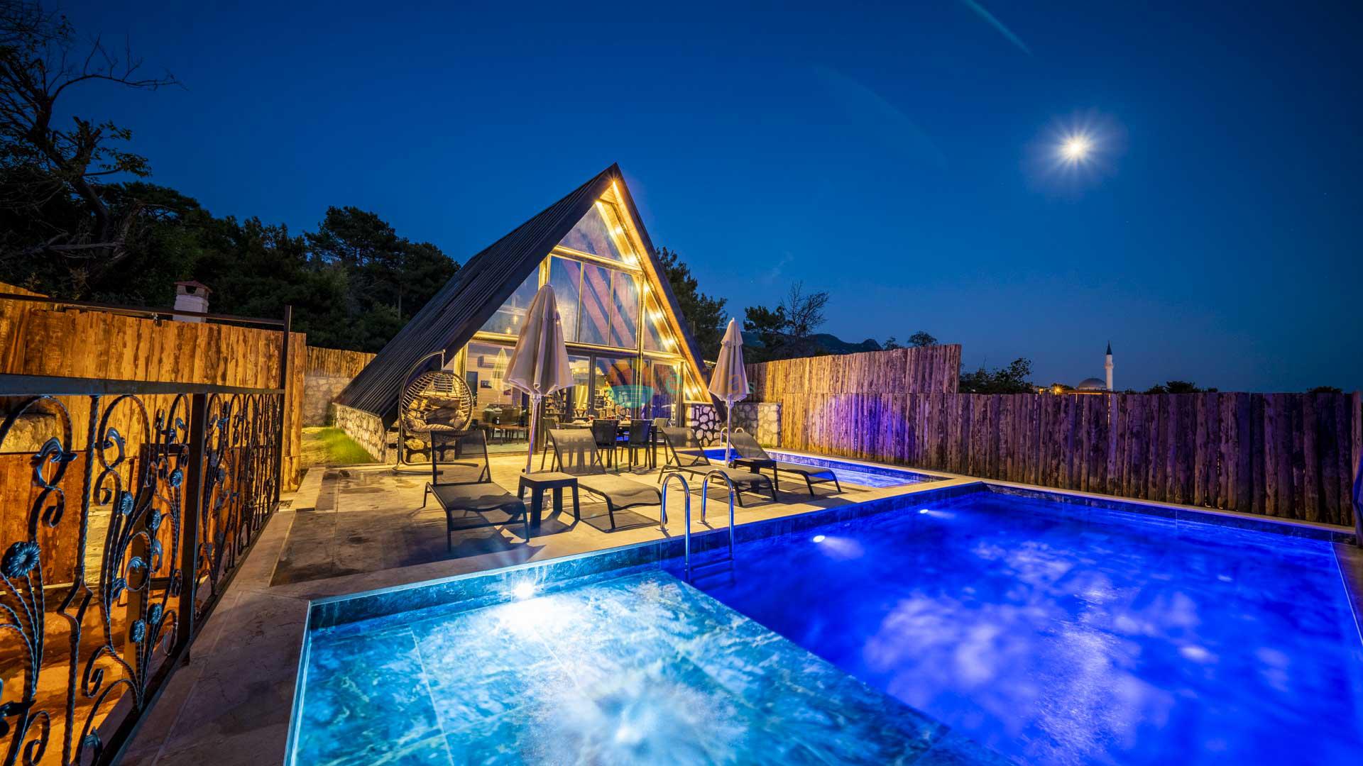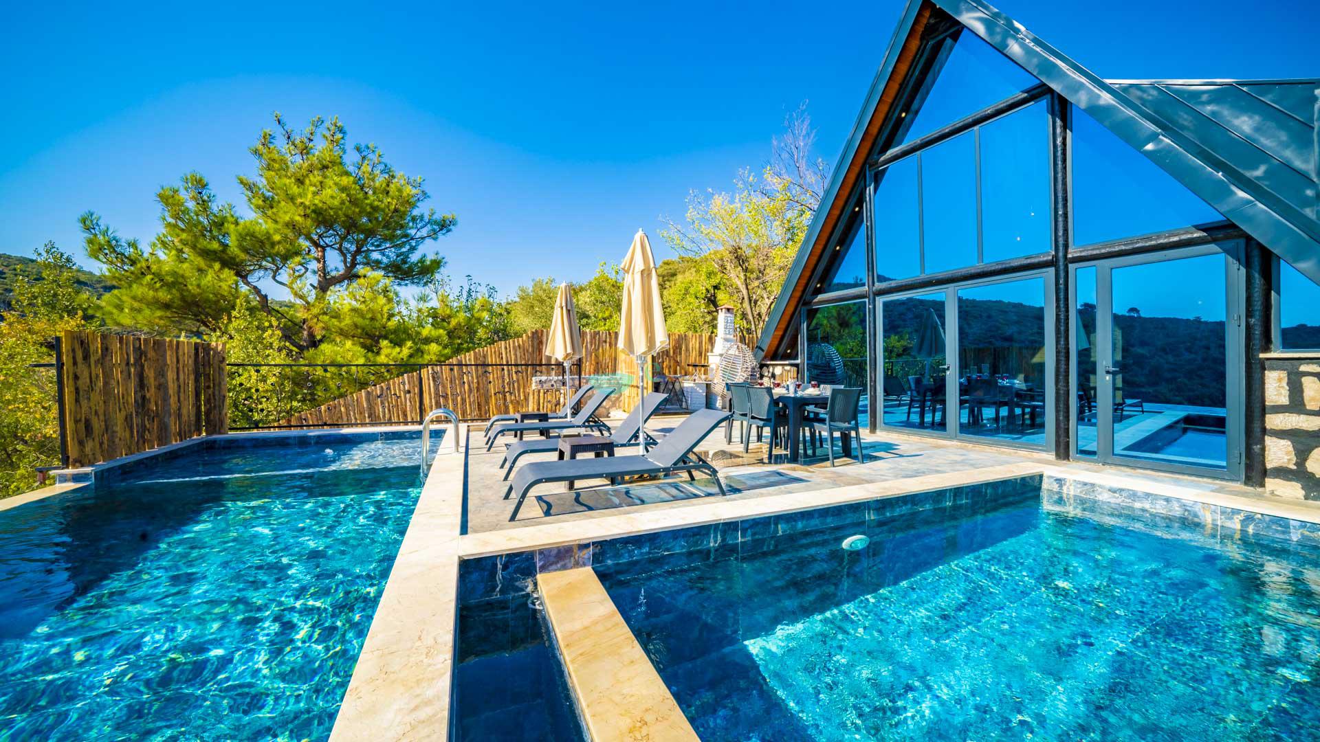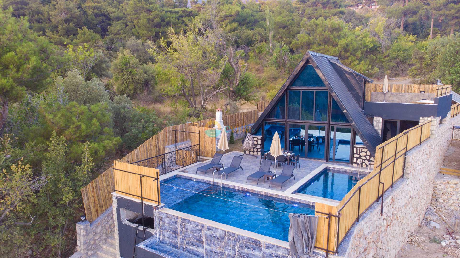 Unsere Villa wurde mit Blick auf jedes Detail für diejenigen entworfen, die einen ruhigen Urlaub in der Natur verbringen möchten. Es liegt in der Region Kalkan Üzümlü. Unsere Villa verfügt über 2 Schlafzimmer und bietet Platz für 4 Personen. Unsere Villa im Bungalowstil, die im Mittelpunkt der Aufmerksamkeit derjenigen steht, die einen Urlaub in einem anderen Stil suchen, steht im Mittelpunkt der Aufmerksamkeit von Naturliebhabern. Unsere Villa, die mit ihrer modernen, komfortablen Einrichtung und dem Whirlpool auf der Terrasse Ihrem Urlaub eine andere Atmosphäre verleiht, öffnet Ihnen dank ihres von außen geschützten Pools die Türen zu einem Urlaub, den Sie allein mit Ihrer Familie und Ihren Lieben verbringen können.