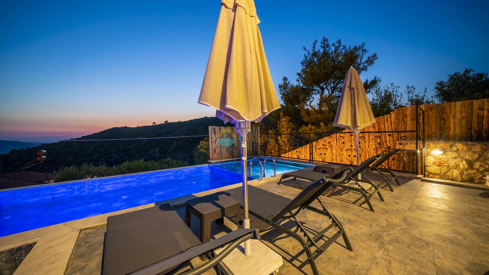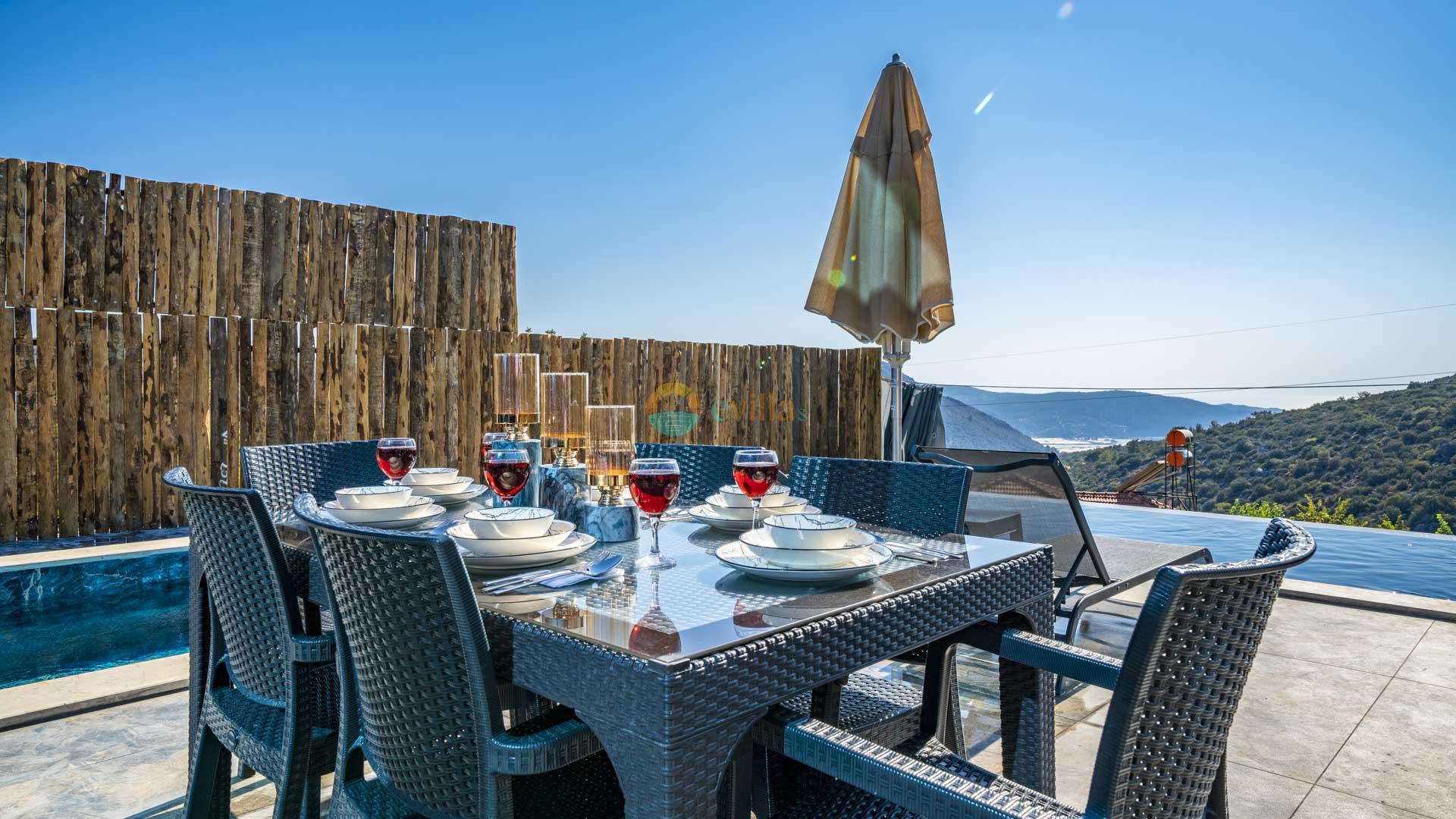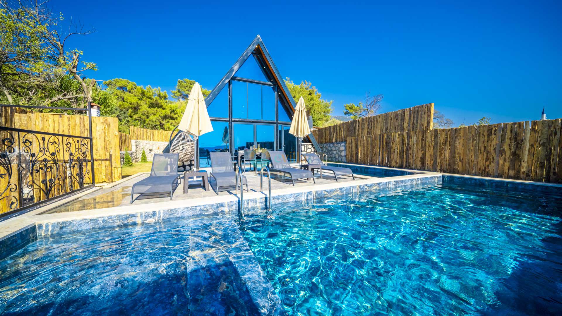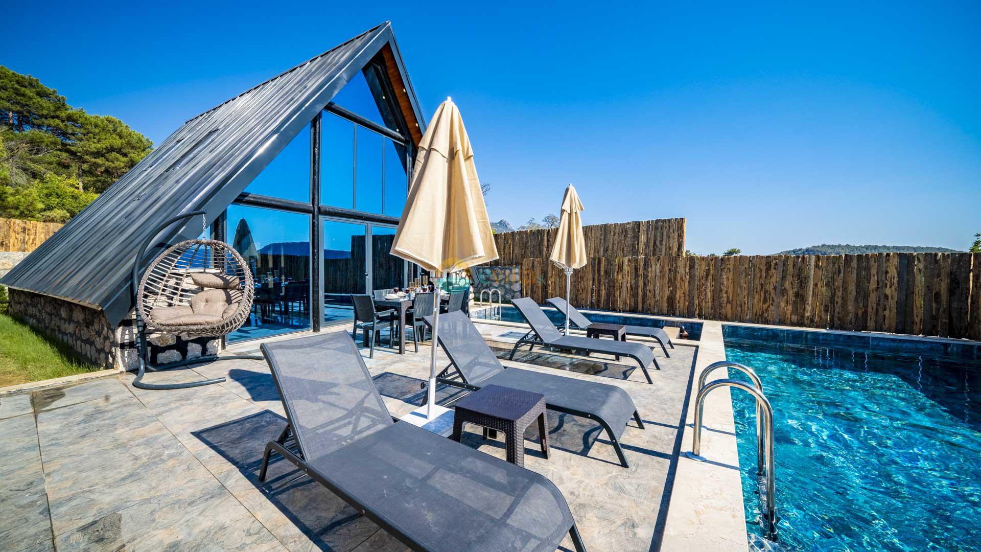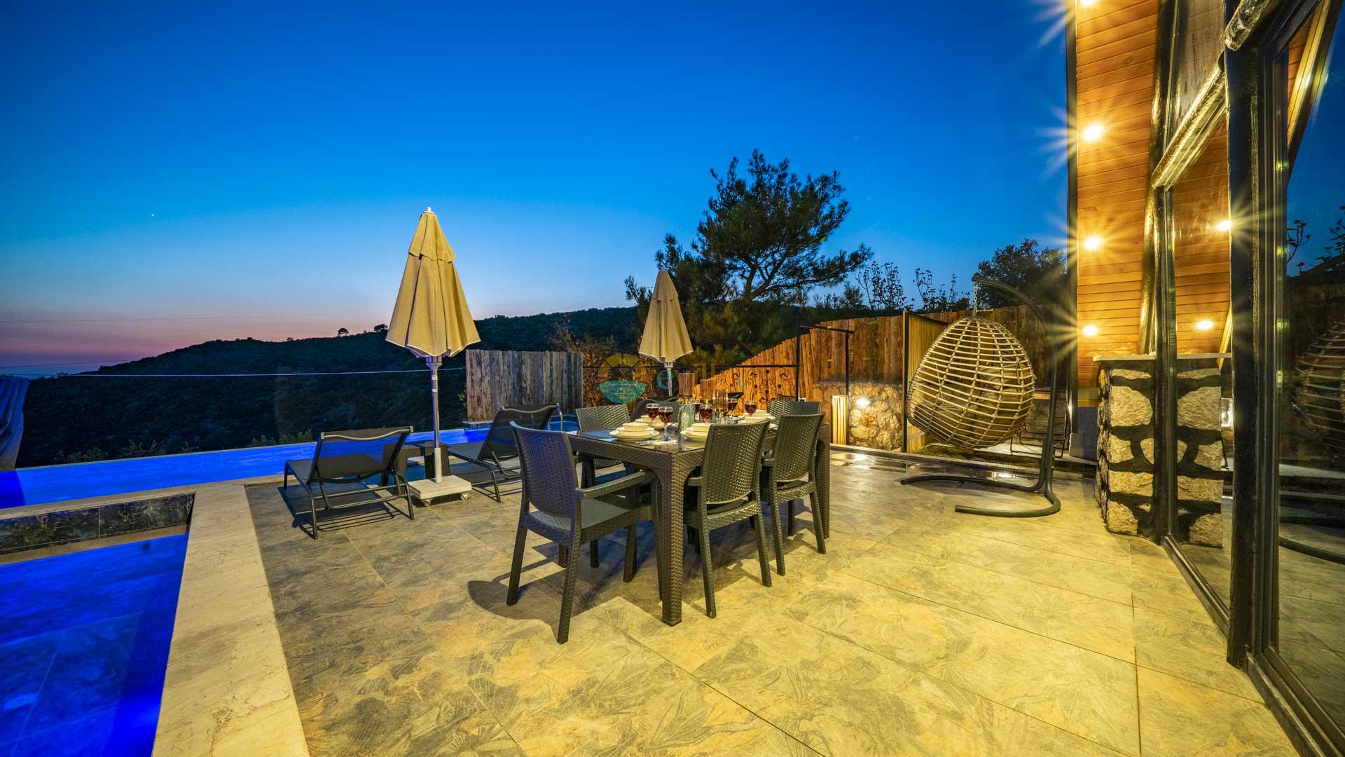 Unsere Villa wurde mit Blick auf jedes Detail für diejenigen entworfen, die einen ruhigen Urlaub in der Natur verbringen möchten. Es liegt in der Region Kalkan Üzümlü. Unsere Villa verfügt über 2 Schlafzimmer und bietet Platz für 4 Personen. Unsere Villa im Bungalowstil, die im Mittelpunkt der Aufmerksamkeit derjenigen steht, die einen Urlaub in einem anderen Stil suchen, steht im Mittelpunkt der Aufmerksamkeit von Naturliebhabern. Unsere Villa, die mit ihrer modernen, komfortablen Einrichtung und dem Whirlpool auf der Terrasse Ihrem Urlaub eine andere Atmosphäre verleiht, öffnet Ihnen dank ihres von außen geschützten Pools die Türen zu einem Urlaub, den Sie allein mit Ihrer Familie und Ihren Lieben verbringen können.