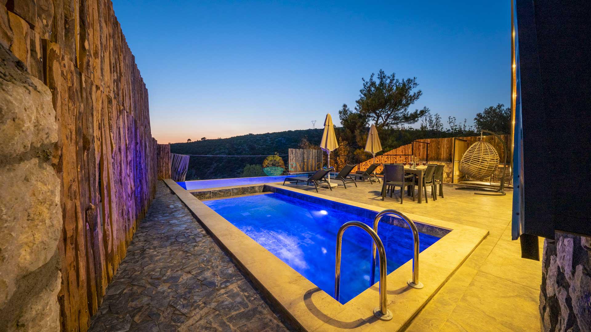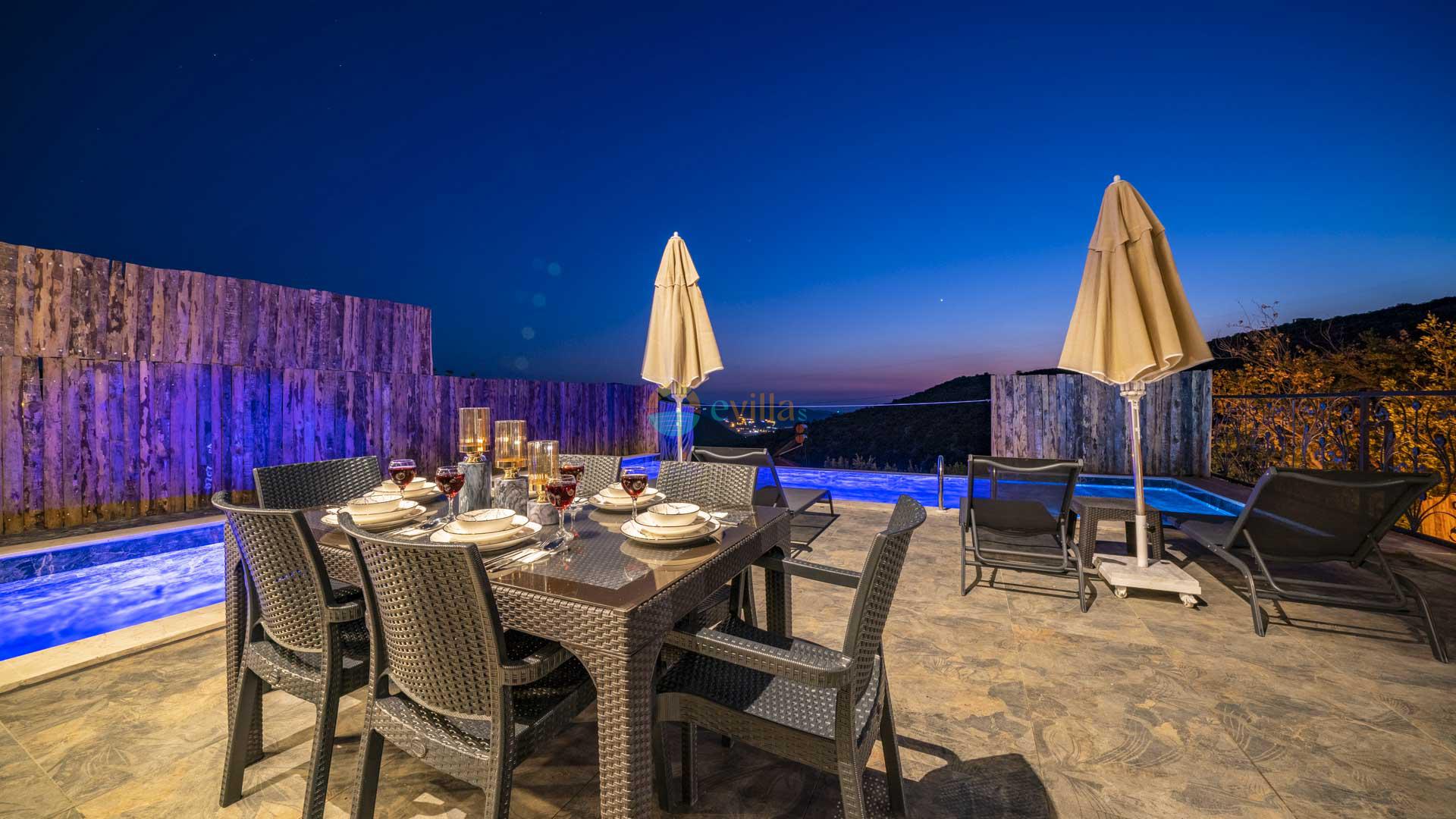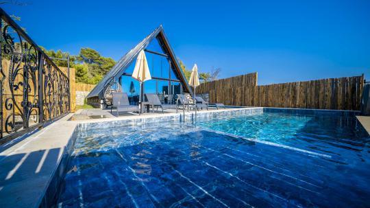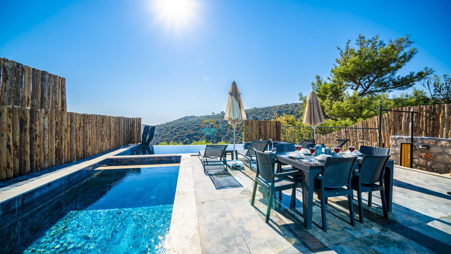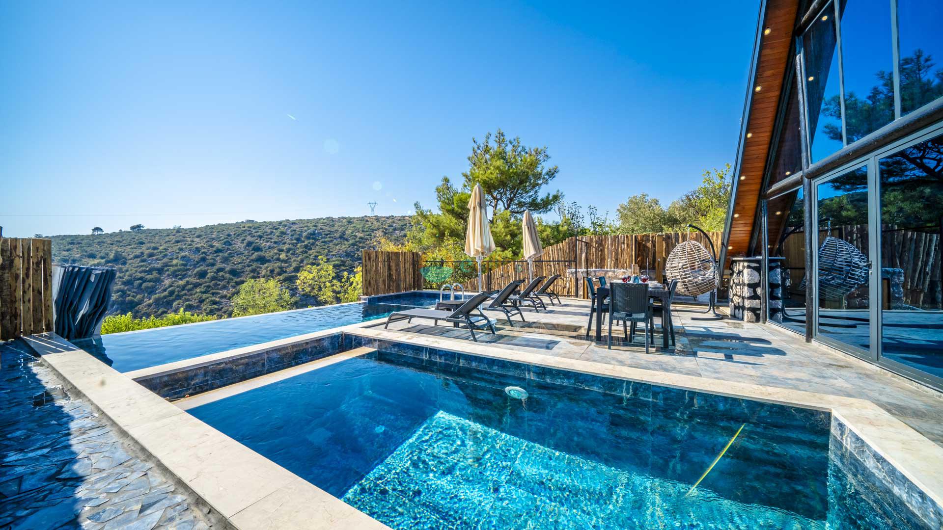 Unsere Villa wurde mit Blick auf jedes Detail für diejenigen entworfen, die einen ruhigen Urlaub in der Natur verbringen möchten. Es liegt in der Region Kalkan Üzümlü. Unsere Villa verfügt über 2 Schlafzimmer und bietet Platz für 4 Personen. Unsere Villa im Bungalowstil, die im Mittelpunkt der Aufmerksamkeit derjenigen steht, die einen Urlaub in einem anderen Stil suchen, steht im Mittelpunkt der Aufmerksamkeit von Naturliebhabern. Unsere Villa, die mit ihrer modernen, komfortablen Einrichtung und dem Whirlpool auf der Terrasse Ihrem Urlaub eine andere Atmosphäre verleiht, öffnet Ihnen dank ihres von außen geschützten Pools die Türen zu einem Urlaub, den Sie allein mit Ihrer Familie und Ihren Lieben verbringen können.