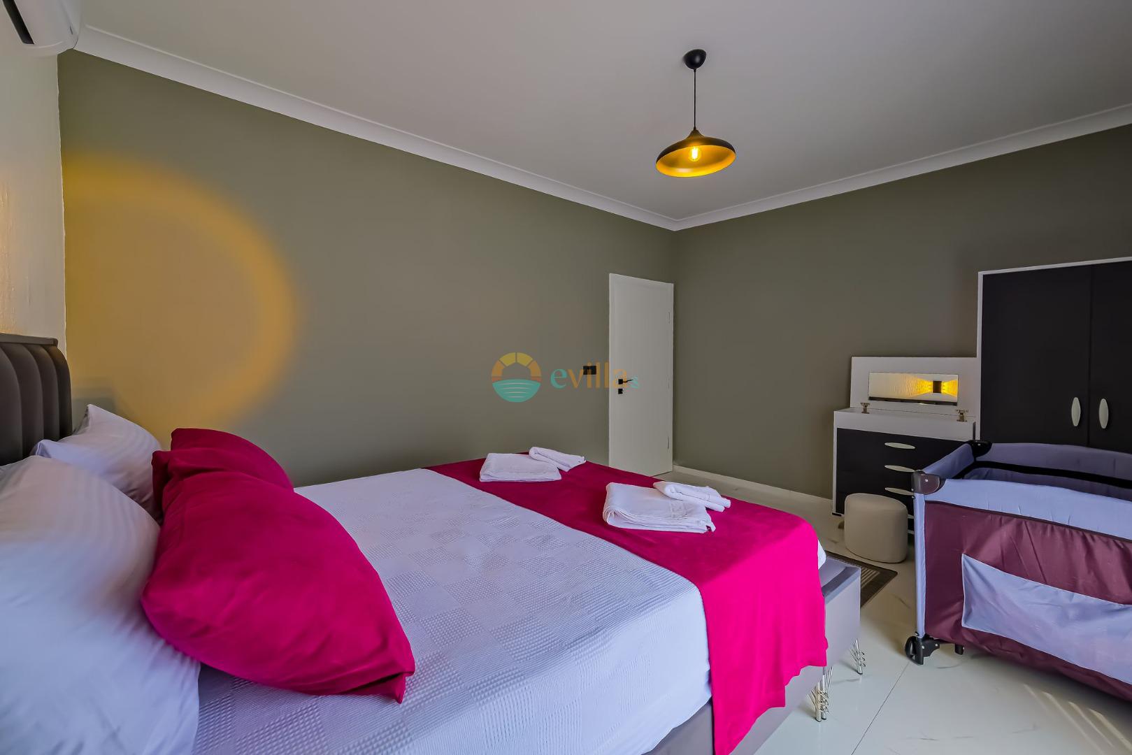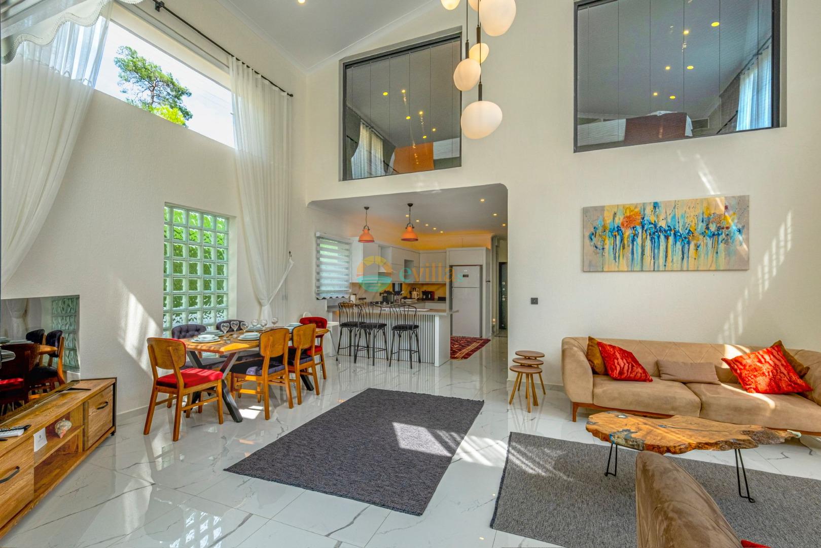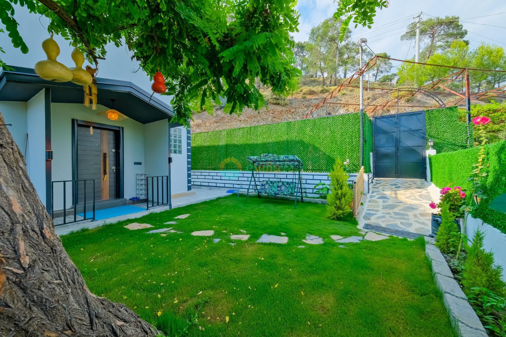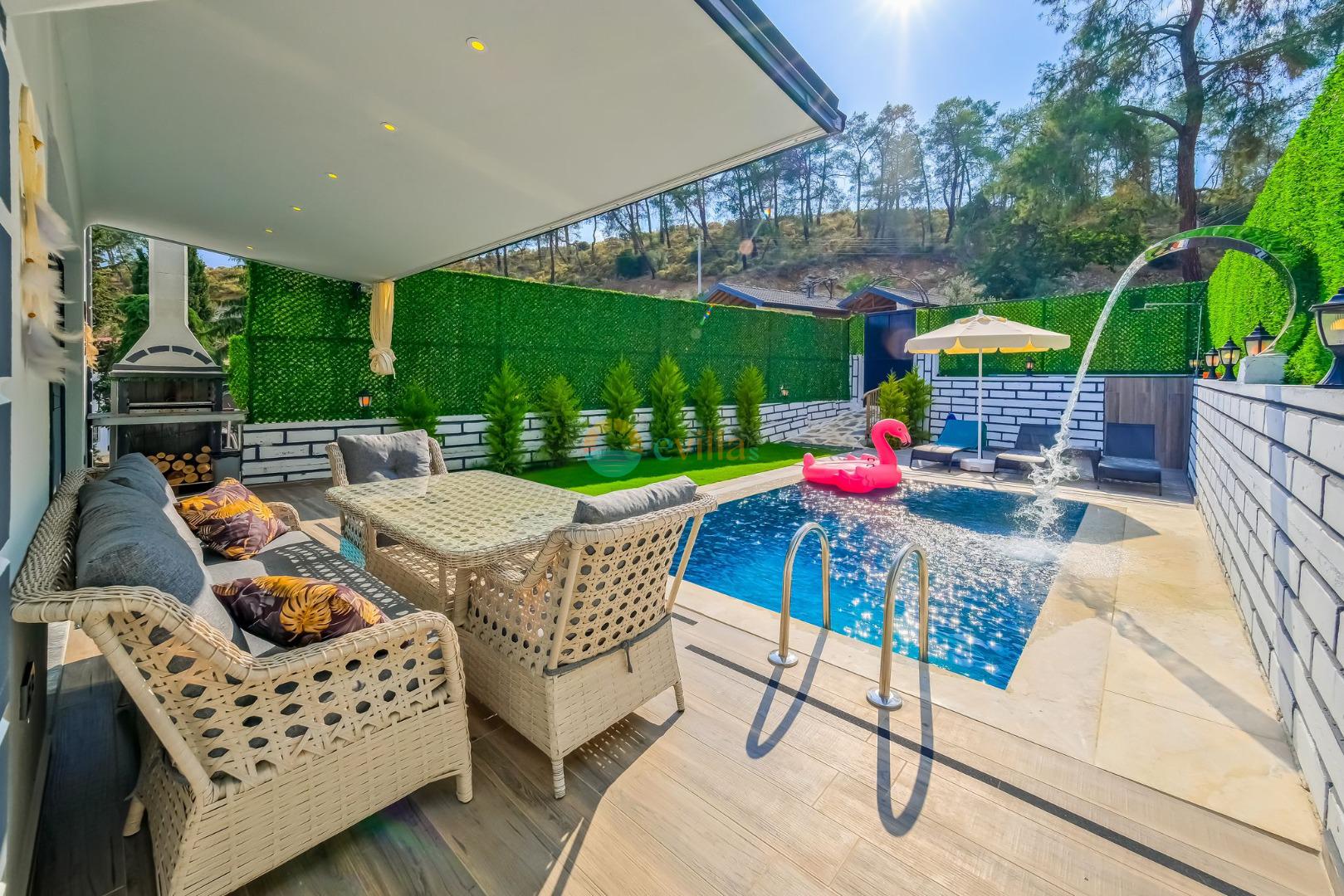 Es erwartet Sie ein besonderes Urlaubserlebnis, das Ruhe und Komfort in der herrlichen Natur von Fethiye vereint. Unsere Villa liegt in einer ruhigen Umgebung umgeben von natürlicher Schönheit und ist mit ihren geräumigen und komfortablen Räumen eine ideale Option für ihre Gäste. Die Villa verfügt über einen Sitzbereich entsprechend der Kapazität, ein Sonnenliegenset, eine Schaukel, einen Grillplatz; Es verfügt über ein gemütliches Wohnzimmer mit Zugang zur Poolterrasse, eine gut ausgestattete Küche, die Ihren Bedürfnissen gerecht wird, und ein Gemeinschaftsbad. Das erste Schlafzimmer hat ein Doppelbett; das zweite Schlafzimmer hat zwei Einzelbetten; Das dritte Schlafzimmer hat ein Doppelbett und ein Badezimmer.