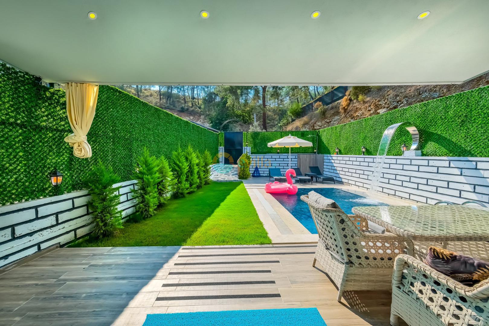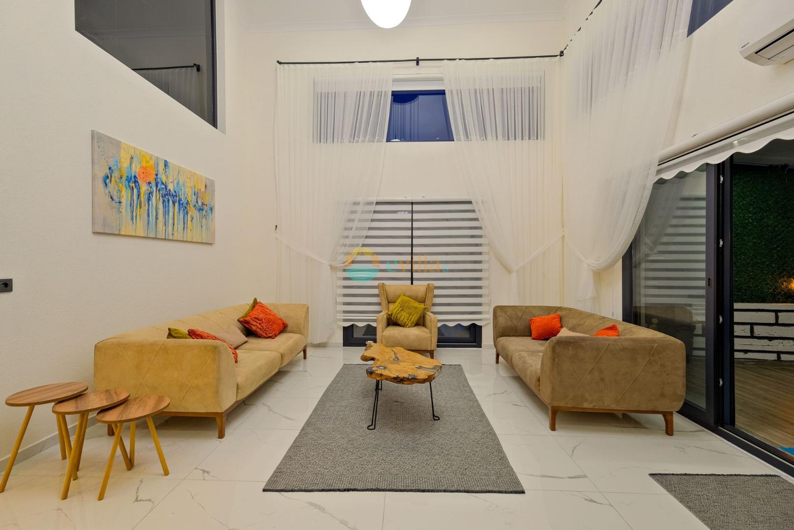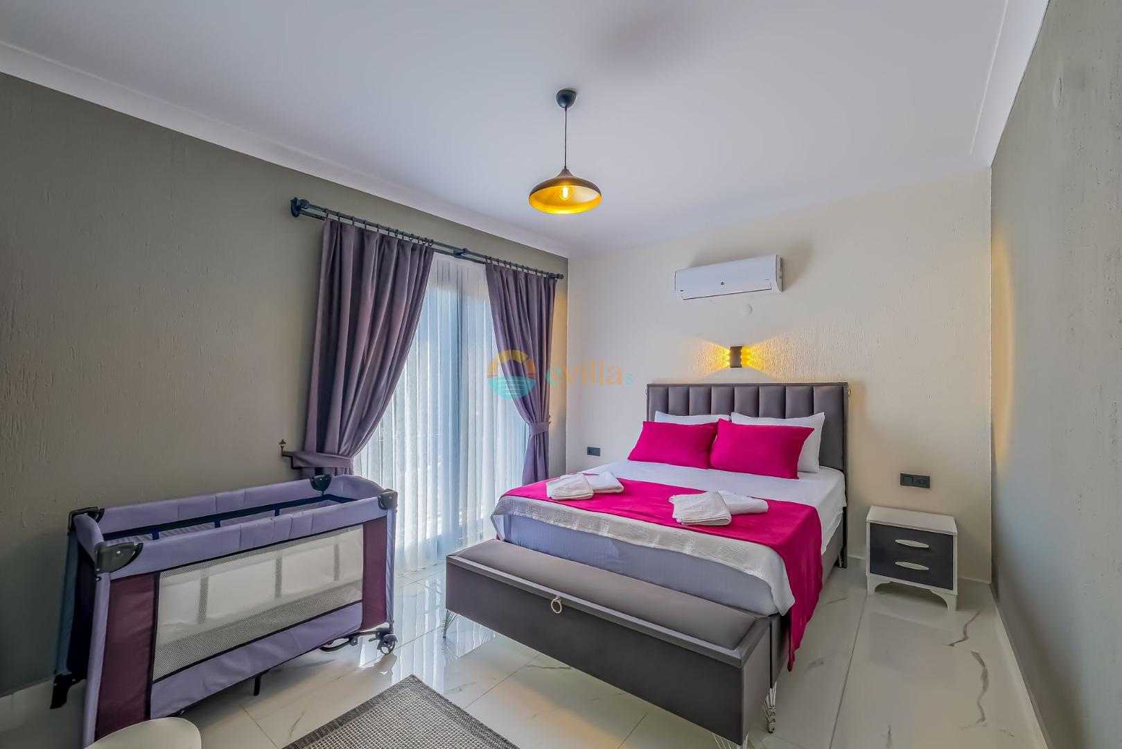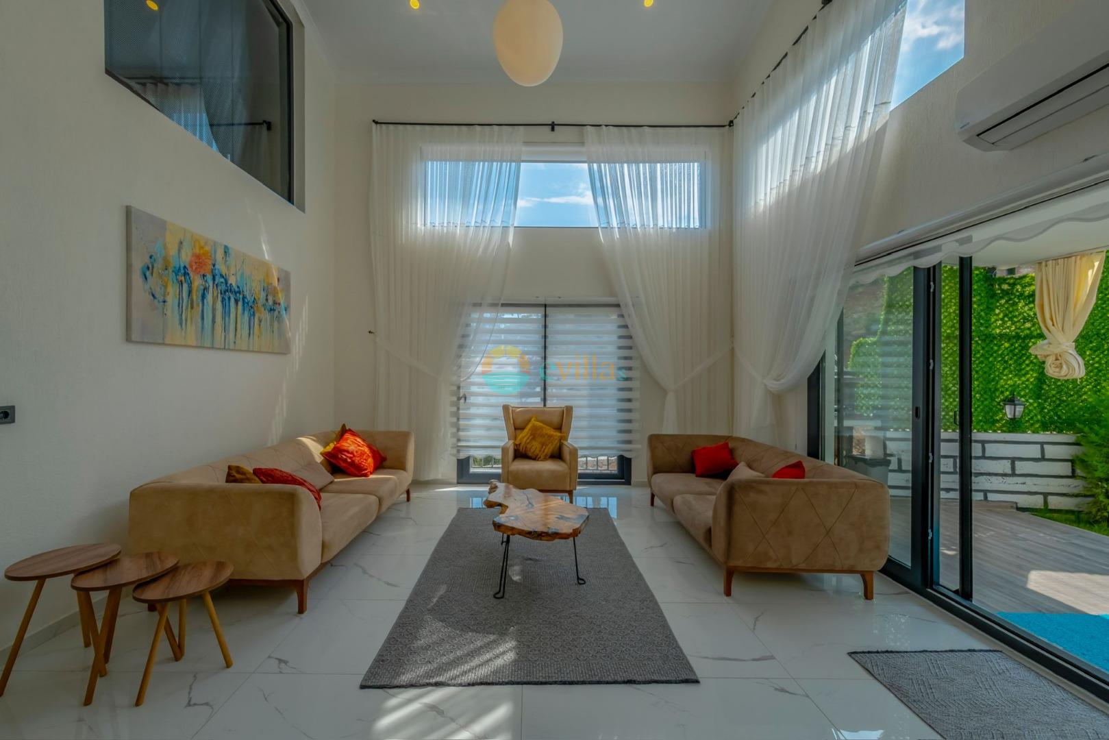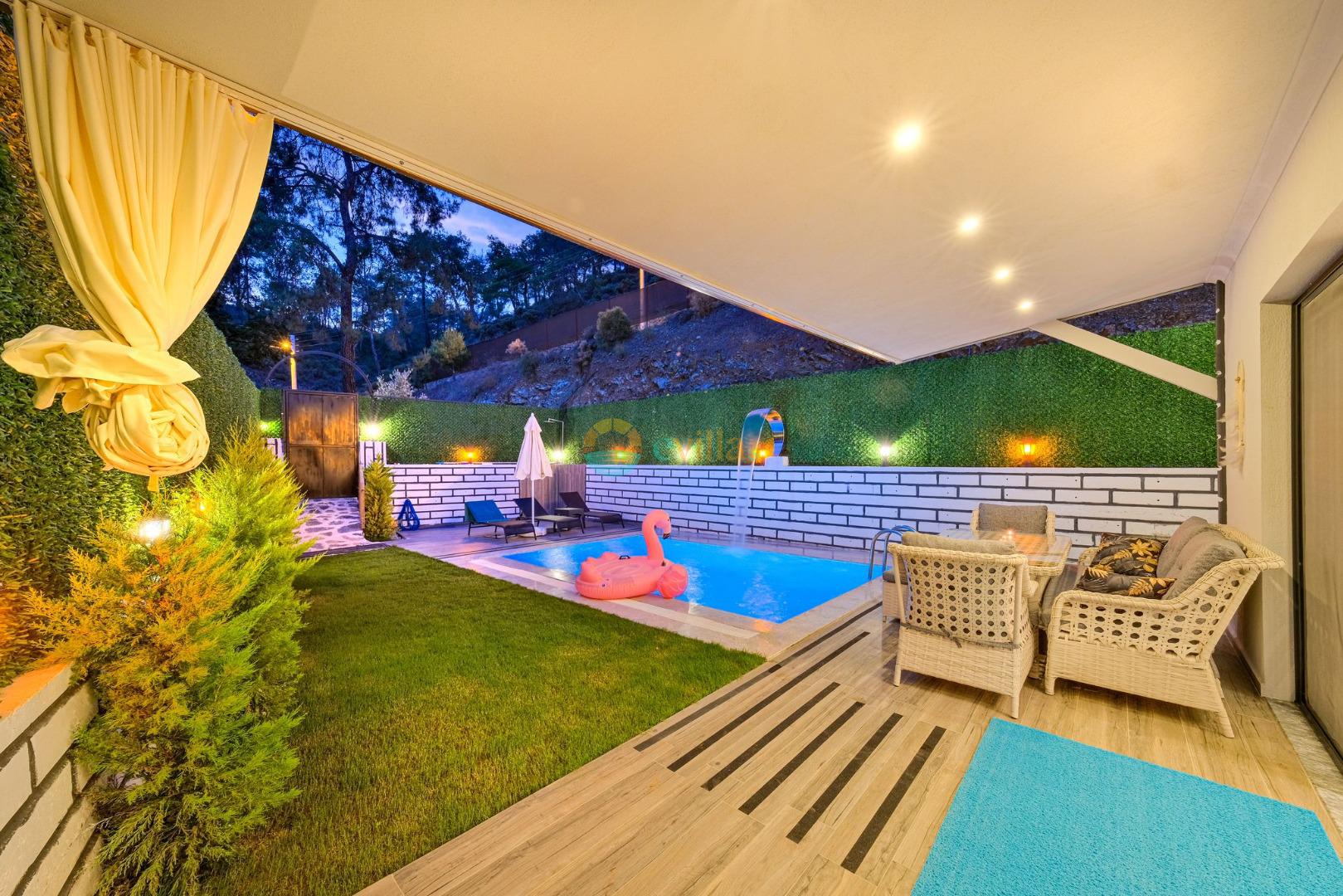 Es erwartet Sie ein besonderes Urlaubserlebnis, das Ruhe und Komfort in der herrlichen Natur von Fethiye vereint. Unsere Villa liegt in einer ruhigen Umgebung umgeben von natürlicher Schönheit und ist mit ihren geräumigen und komfortablen Räumen eine ideale Option für ihre Gäste. Die Villa verfügt über einen Sitzbereich entsprechend der Kapazität, ein Sonnenliegenset, eine Schaukel, einen Grillplatz; Es verfügt über ein gemütliches Wohnzimmer mit Zugang zur Poolterrasse, eine gut ausgestattete Küche, die Ihren Bedürfnissen gerecht wird, und ein Gemeinschaftsbad. Das erste Schlafzimmer hat ein Doppelbett; das zweite Schlafzimmer hat zwei Einzelbetten; Das dritte Schlafzimmer hat ein Doppelbett und ein Badezimmer.