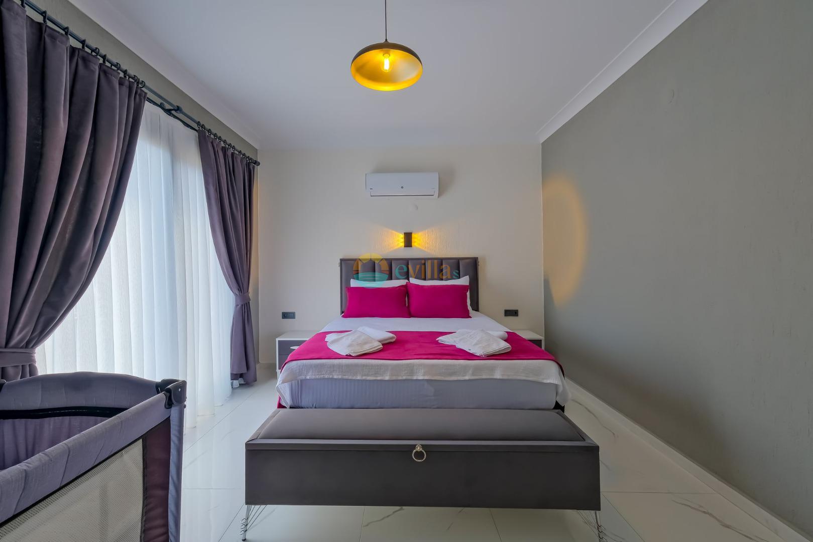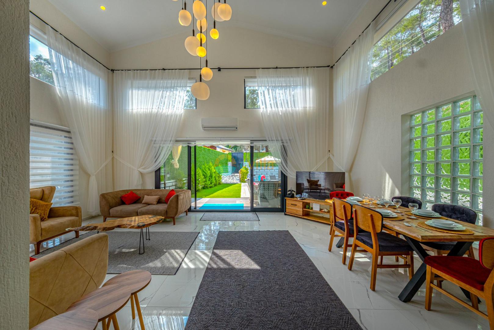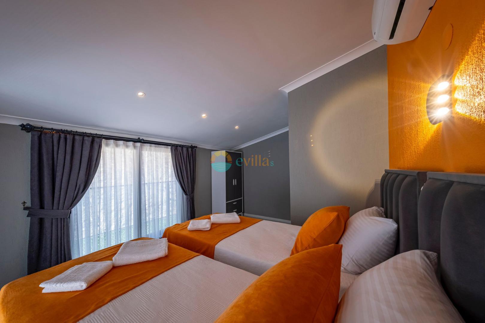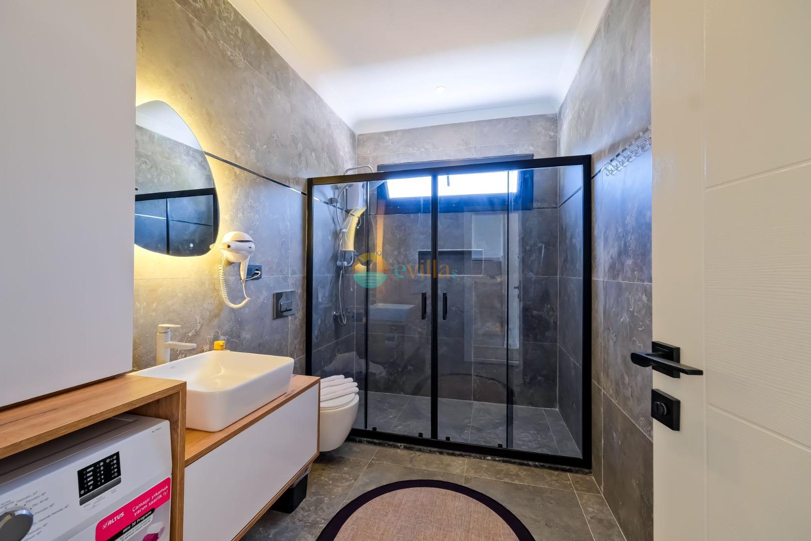 Es erwartet Sie ein besonderes Urlaubserlebnis, das Ruhe und Komfort in der herrlichen Natur von Fethiye vereint. Unsere Villa liegt in einer ruhigen Umgebung umgeben von natürlicher Schönheit und ist mit ihren geräumigen und komfortablen Räumen eine ideale Option für ihre Gäste. Die Villa verfügt über einen Sitzbereich entsprechend der Kapazität, ein Sonnenliegenset, eine Schaukel, einen Grillplatz; Es verfügt über ein gemütliches Wohnzimmer mit Zugang zur Poolterrasse, eine gut ausgestattete Küche, die Ihren Bedürfnissen gerecht wird, und ein Gemeinschaftsbad. Das erste Schlafzimmer hat ein Doppelbett; das zweite Schlafzimmer hat zwei Einzelbetten; Das dritte Schlafzimmer hat ein Doppelbett und ein Badezimmer.