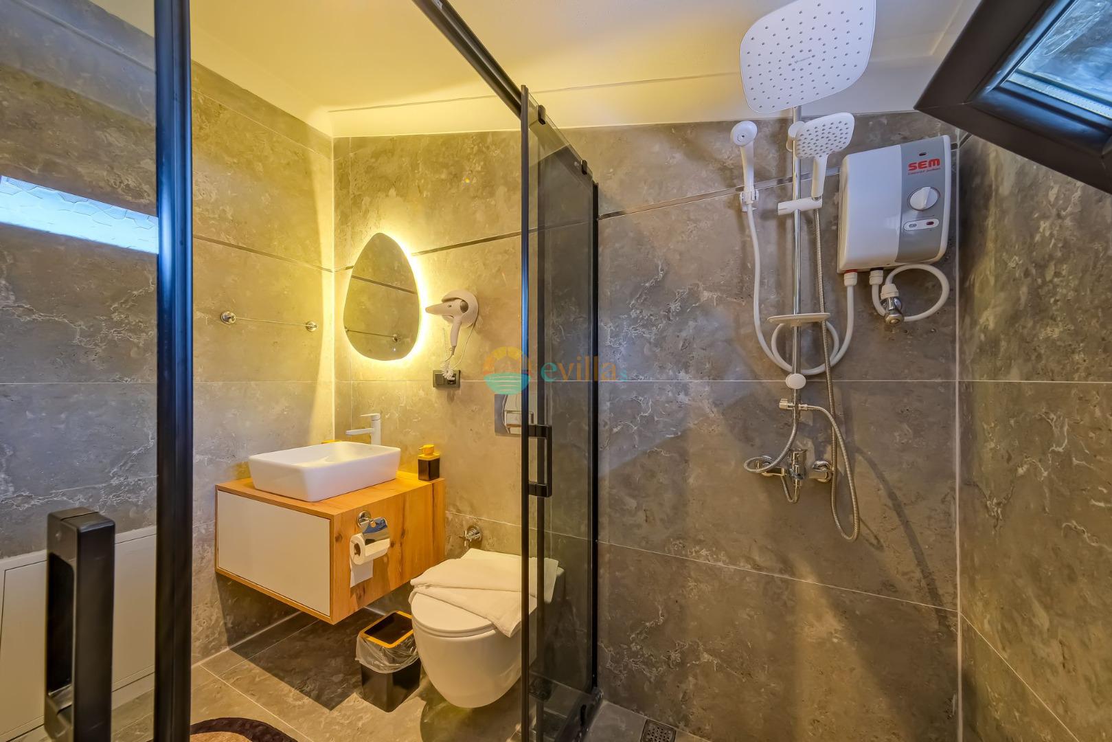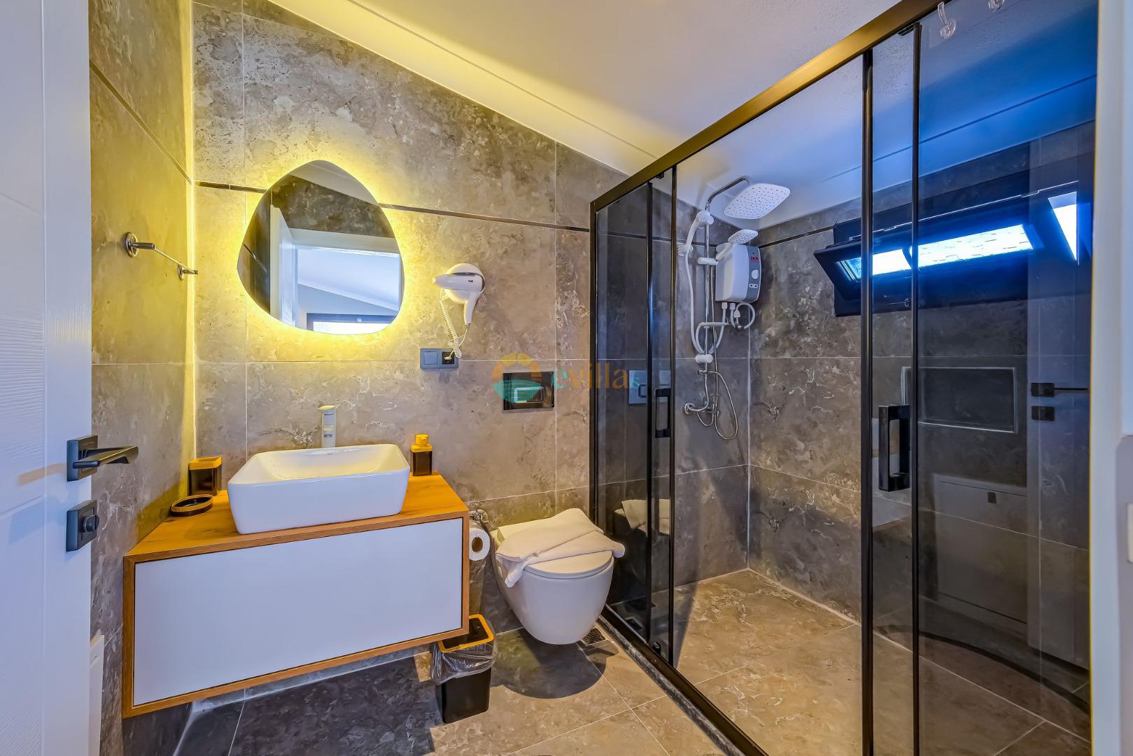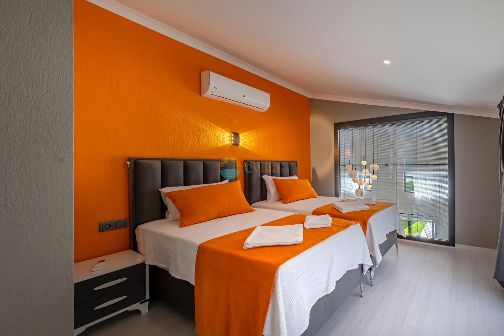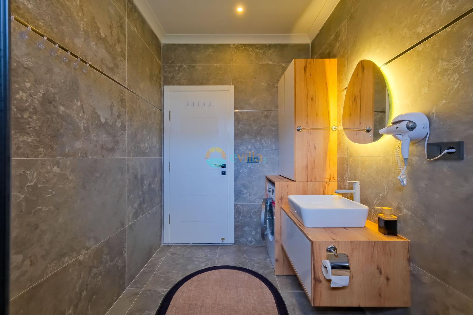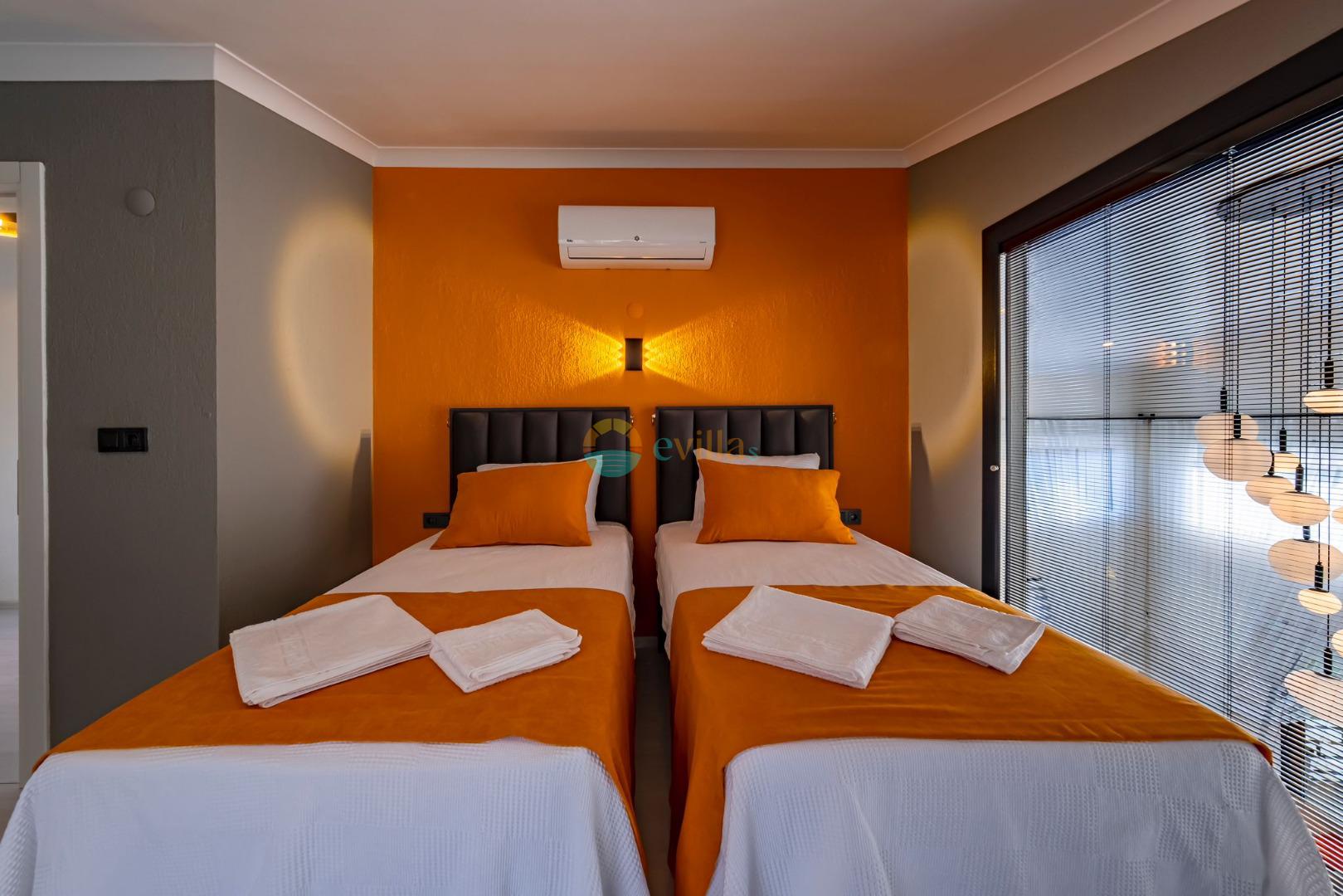 Es erwartet Sie ein besonderes Urlaubserlebnis, das Ruhe und Komfort in der herrlichen Natur von Fethiye vereint. Unsere Villa liegt in einer ruhigen Umgebung umgeben von natürlicher Schönheit und ist mit ihren geräumigen und komfortablen Räumen eine ideale Option für ihre Gäste. Die Villa verfügt über einen Sitzbereich entsprechend der Kapazität, ein Sonnenliegenset, eine Schaukel, einen Grillplatz; Es verfügt über ein gemütliches Wohnzimmer mit Zugang zur Poolterrasse, eine gut ausgestattete Küche, die Ihren Bedürfnissen gerecht wird, und ein Gemeinschaftsbad. Das erste Schlafzimmer hat ein Doppelbett; das zweite Schlafzimmer hat zwei Einzelbetten; Das dritte Schlafzimmer hat ein Doppelbett und ein Badezimmer.