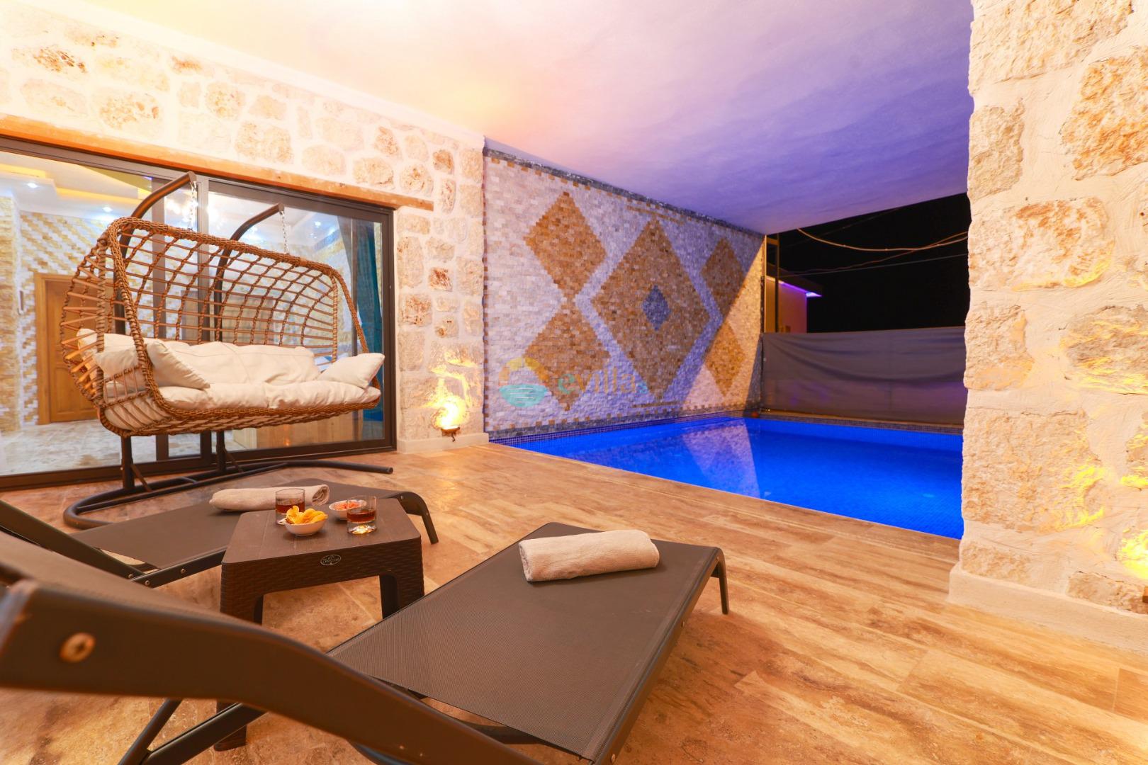 Unsere Flitterwochen-Villa zur Miete in Kalkan Akbel ist eine sehr geeignete Option für Paare, die einen Urlaub in einer Villa mit Meerblick, Stille und Frieden verbringen möchten. Unsere Villa, die zur Kategorie der konservativen Villen gehört, bietet Platz für 2 Personen mit 1 Schlafzimmer. Unsere Villa, deren Pool geschützt liegt und deren Garten von außen nicht einsehbar ist, bietet eine ruhige Urlaubsmöglichkeit für Paare und Familien, die Wert auf Privatsphäre legen.