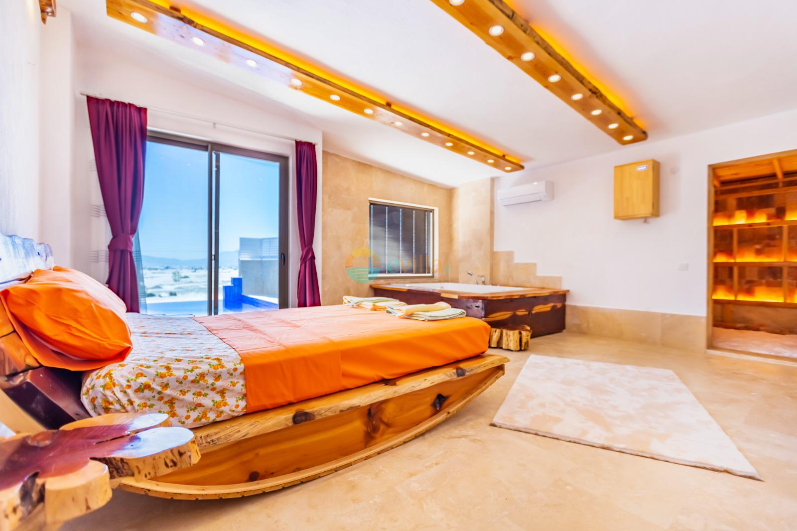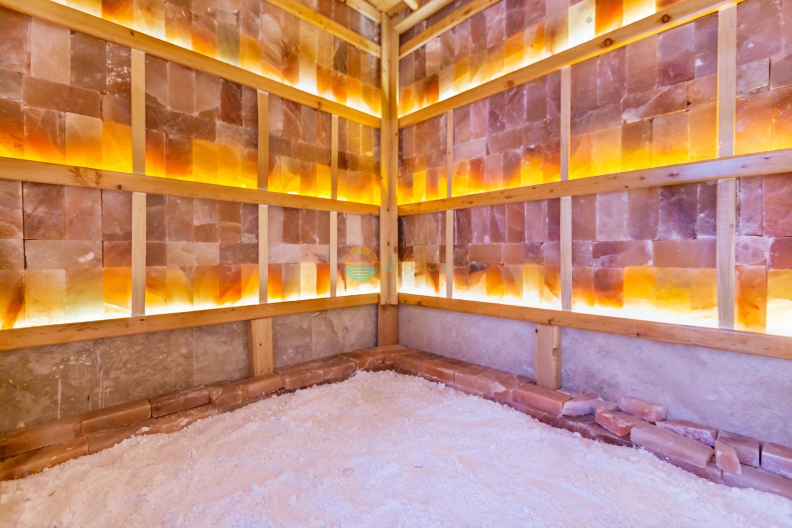 SALZTHERAPIERAUM; In unserer Villa in der Region steht eine Therapieraumanwendung zur Verfügung. Die Wände und der Boden sind mit organischem Steinsalz bedeckt, das aus den pakistanischen Himalaya-Bergen gewonnen wird, und der Salztherapieraum mit der im Raum installierten Salzhalogeneratormaschine wird zu Ihrem Urlaub beitragen besser. Der Salztherapieraum ist vom Schlafzimmer aus zugänglich.