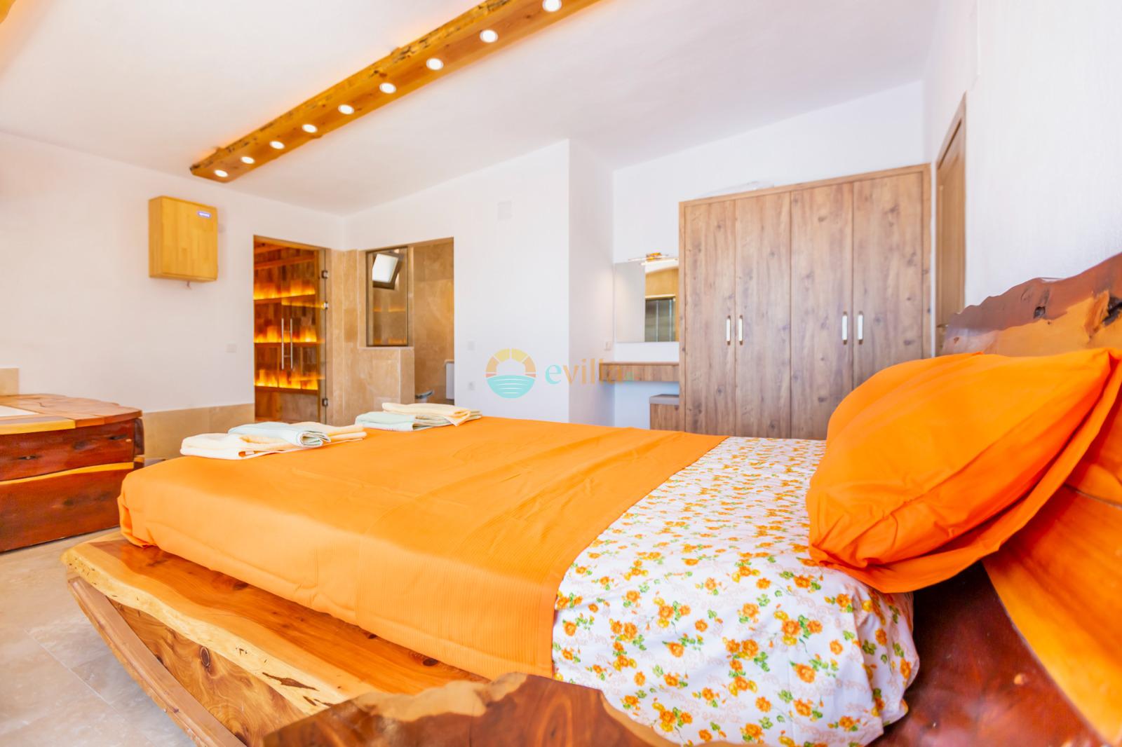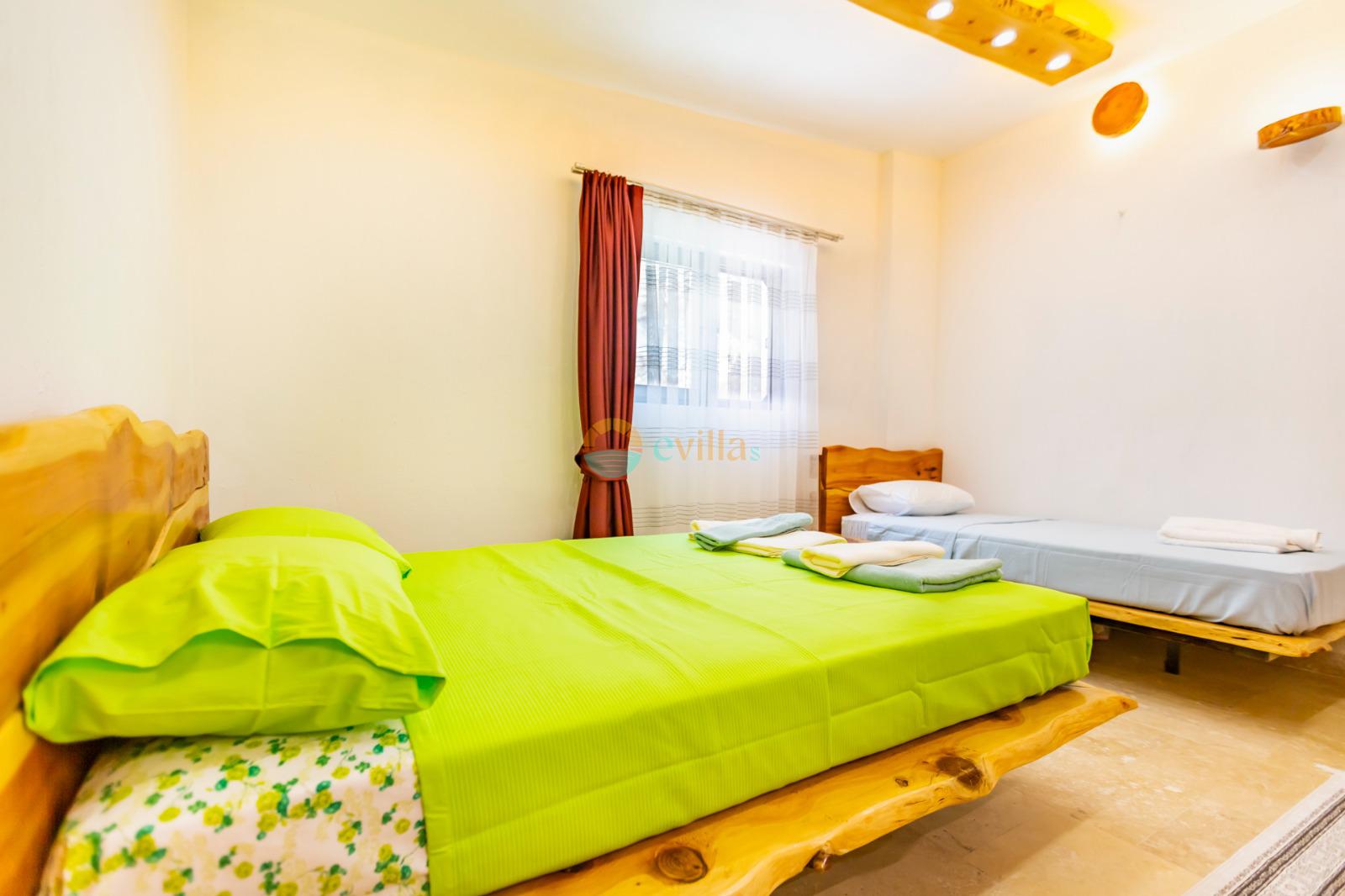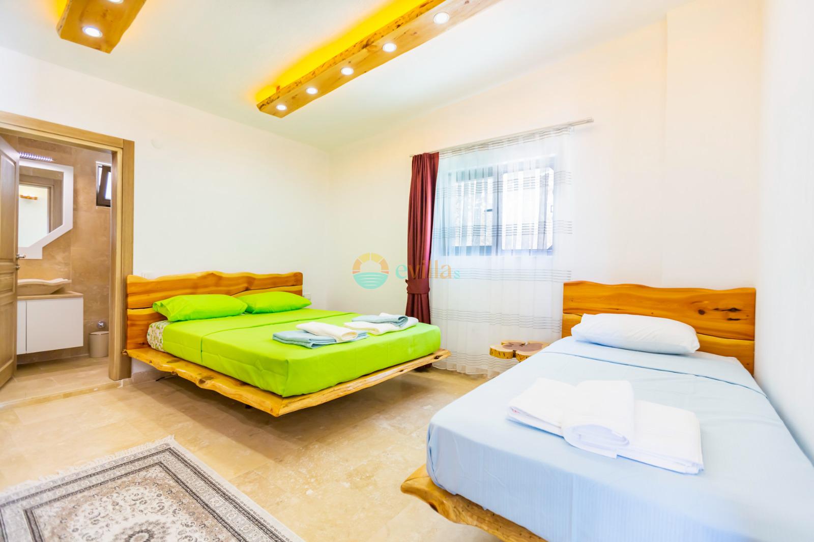 Im anderen Schlafzimmer; Es gibt 2 Doppel- und Einzelbetten, die speziell aus Wacholderholz gefertigt wurden, einen Kleiderschrank und eine Klimaanlage.