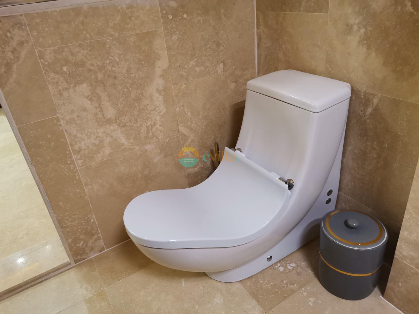 Das erste Schlafzimmer befindet sich gegenüber dem Swimmingpool und verfügt über ein speziell angefertigtes Bootsbett, ein Babybett, ein Regal, eine Klimaanlage, ein maßgeschneidertes Whirlpoolsystem mit Wacholderholzverkleidung und ein Badezimmer mit einer Toilette, die gewonnen hat der weltweit erste Designpreis. Auch im Schlafzimmer; Es gibt eine Personenwaage, ein Bügeleisen und -brett, einen Haartrockner und Haarglättungsgeräte.