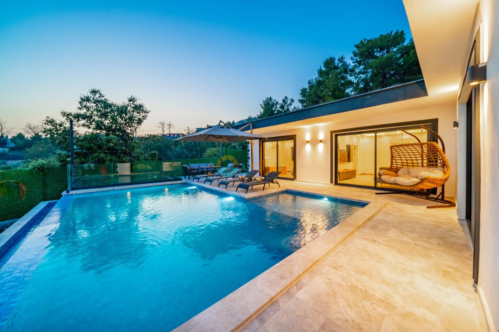 Unsere Villa liegt in der Region Kalkan İslamlar und verfügt über 2 Schlafzimmer mit einer Kapazität von 4 Personen. Unsere luxuriös gestaltete Villa, die speziell für konservative Familien und Flitterwochenpaare konzipiert wurde, verfügt über einen geschützten Swimmingpool, Tischtennis, einen Gartensitzbereich und einen Whirlpool im Schlafzimmer. In unserer Villa, in der Sie mit Ihren Lieben die Müdigkeit des Jahres ausklingen lassen können, können Sie unvergessliche Urlaubserinnerungen sammeln und einen schönen Urlaub mit Ihrer Familie verbringen.