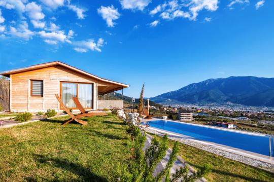 Aufgrund ihrer Lage bietet Ihnen unsere Villa mit ihrem einzigartigen Blick auf die Stadt, die Natur, das Meer und Fethiye eine wunderschöne Urlaubsmöglichkeit. Unsere Villa, die Ihnen nachts mit ihrem Farbenrausch ein visuelles Fest bietet, verfügt über einen völlig klaren Blick auf den Golf von Fethiye, die Inseln und das Grün. Es bietet eine perfekte Aussicht vom Wohnzimmer, den Schlafzimmern, der Küche, dem Balkon, der Veranda, dem Garten und dem Pool. Unsere Villa mit 2 Schlafzimmern ist sowohl für Kleinfamilien als auch für Paare auf Hochzeitsreise geeignet.