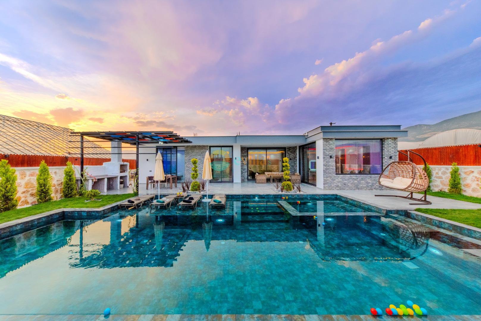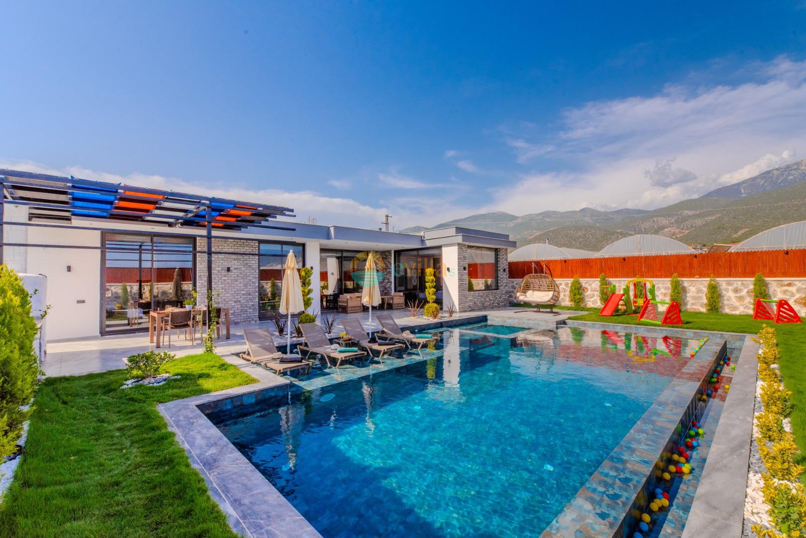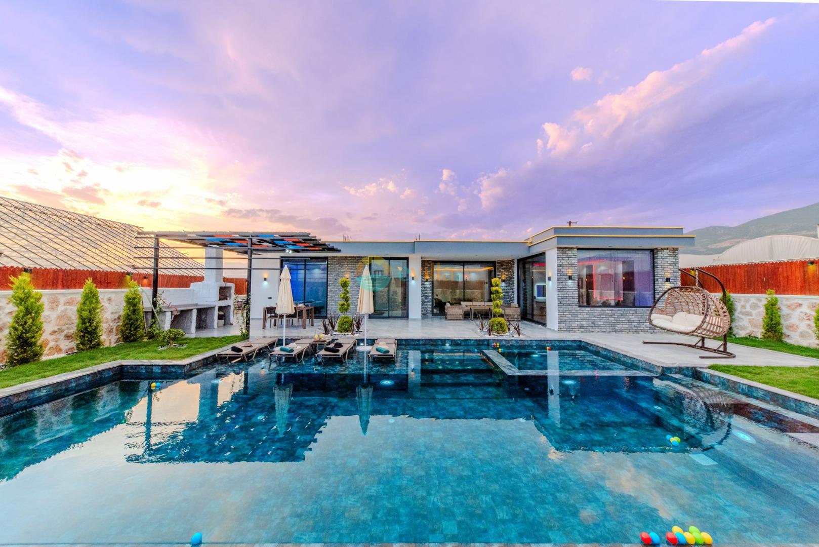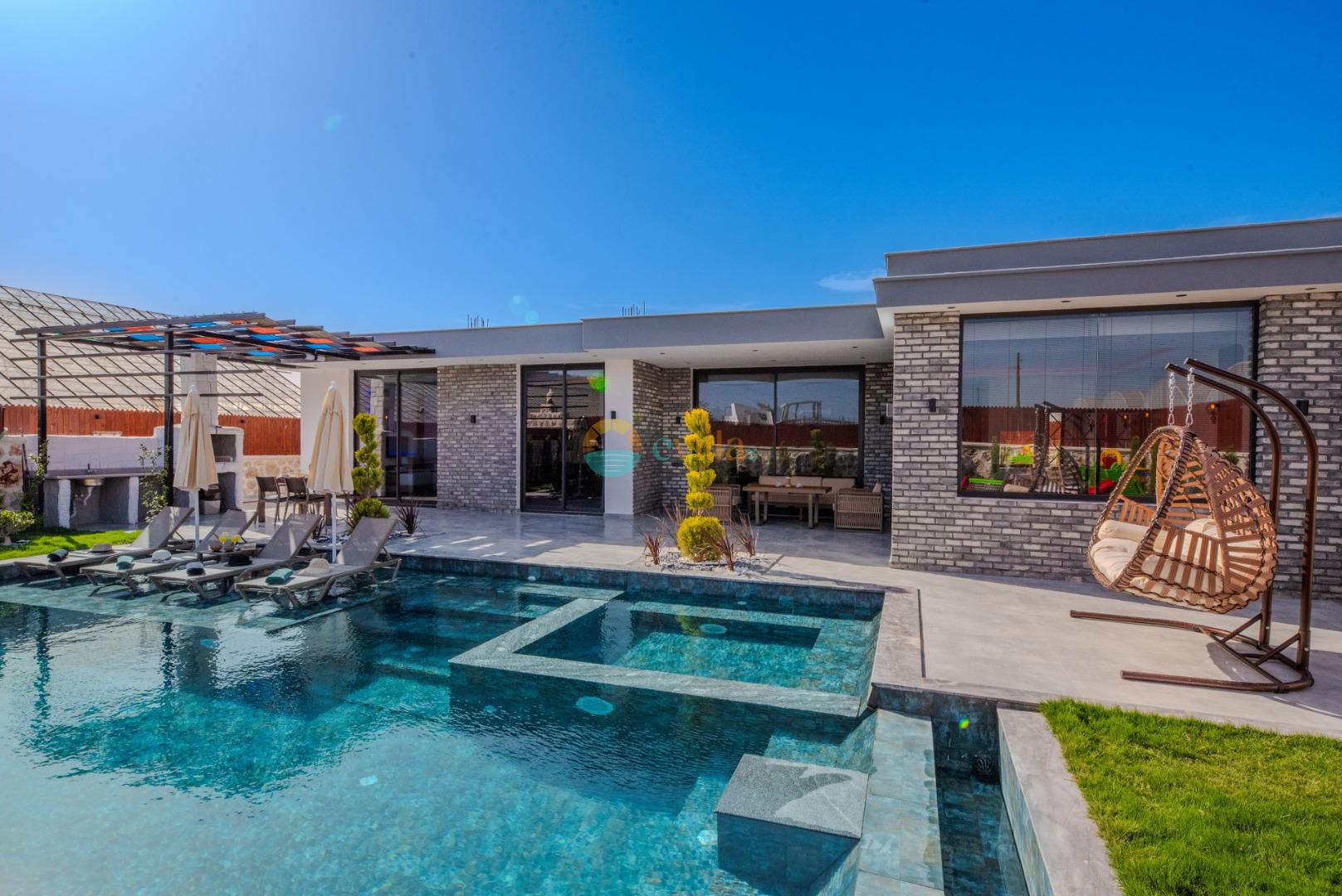 Unsere Villa ist eine konservative Ferienvilla mit 2 Schlafzimmern, einer Kapazität von 4 Personen und einem Whirlpool in der Region Kalkan Çavdır. Unsere im Jahr 2024 fertiggestellte Villa bietet mit ihrem modernen und komfortablen Design alles, was Sie brauchen. Mit unserer Villa, die sich in ruhiger Lage in der Natur befindet, können Sie die Müdigkeit des ganzen Jahres lindern und im üppigen Gartenbereich und auf der Poolterrasse einen ruhigen Urlaub verbringen. Es ist eine ideale Option für konservative Familien, Flitterwochenpaare und Familien mit Kindern.