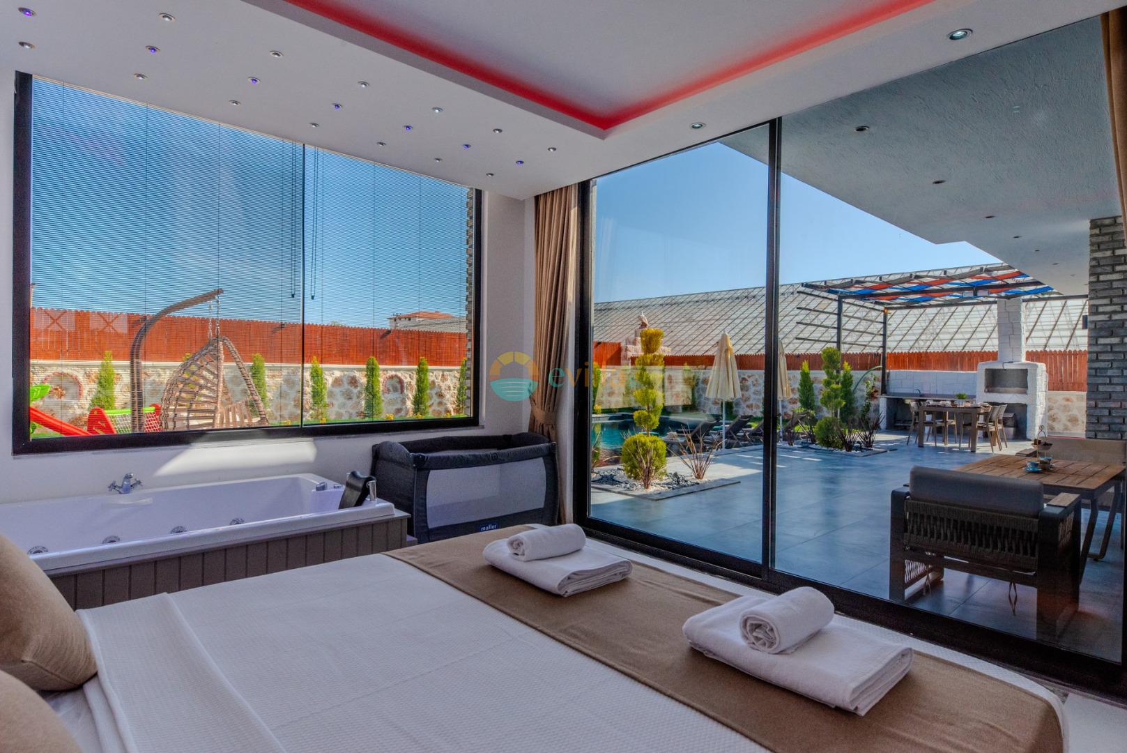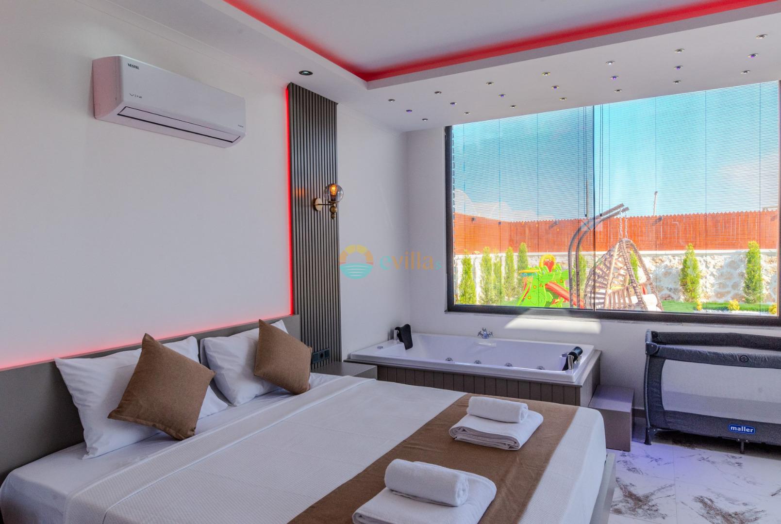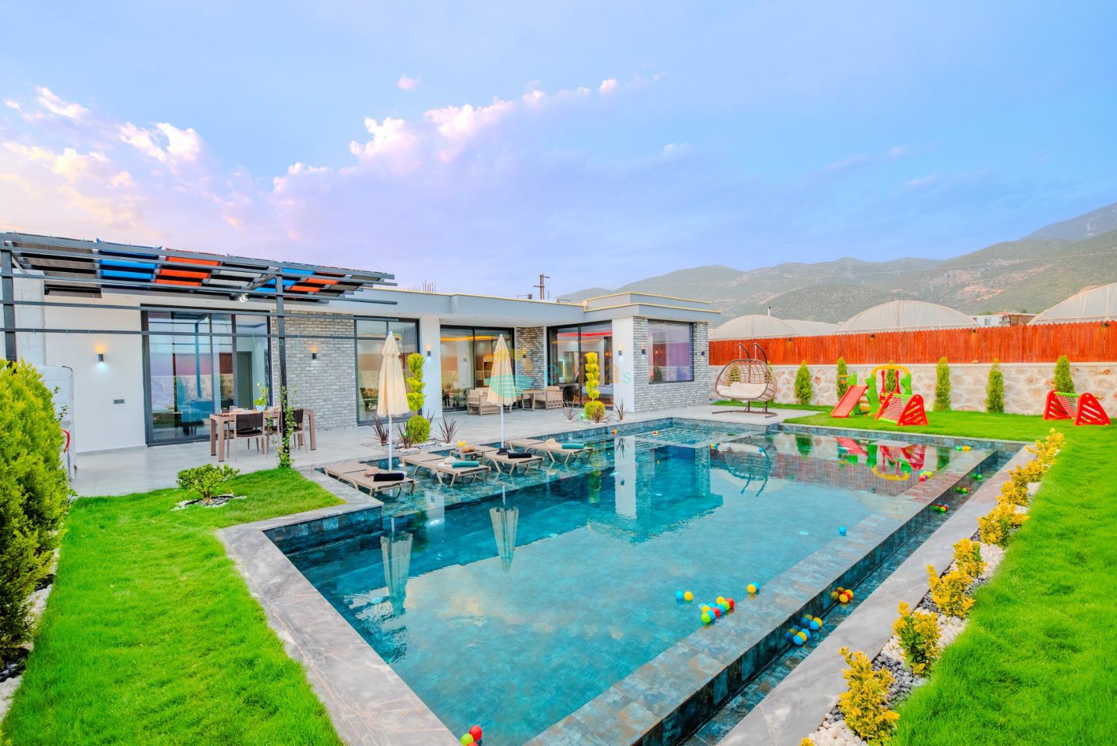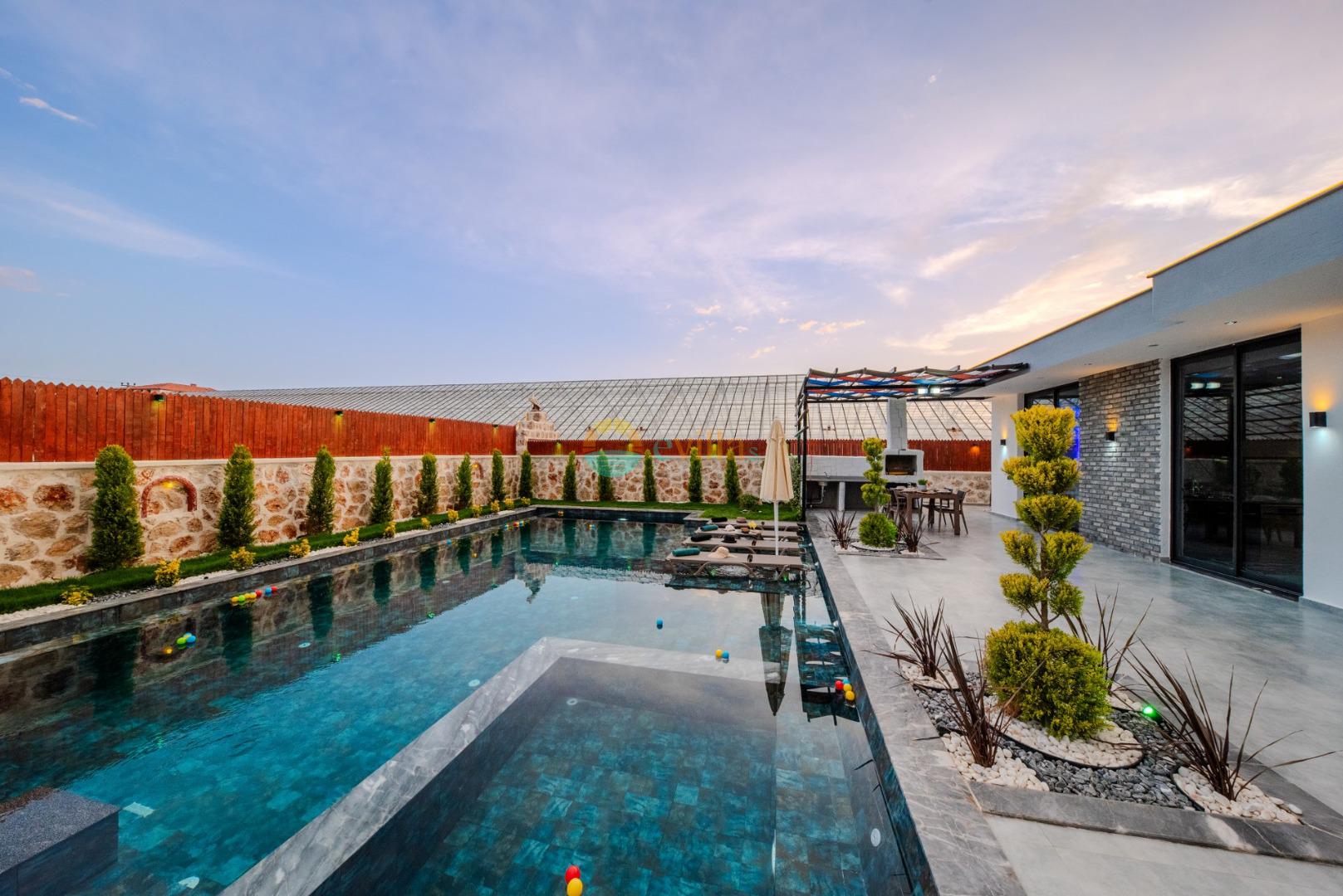 Unsere Villa ist eine konservative Ferienvilla mit 2 Schlafzimmern, einer Kapazität von 4 Personen und einem Whirlpool in der Region Kalkan Çavdır. Unsere im Jahr 2024 fertiggestellte Villa bietet mit ihrem modernen und komfortablen Design alles, was Sie brauchen. Mit unserer Villa, die sich in ruhiger Lage in der Natur befindet, können Sie die Müdigkeit des ganzen Jahres lindern und im üppigen Gartenbereich und auf der Poolterrasse einen ruhigen Urlaub verbringen. Es ist eine ideale Option für konservative Familien, Flitterwochenpaare und Familien mit Kindern.