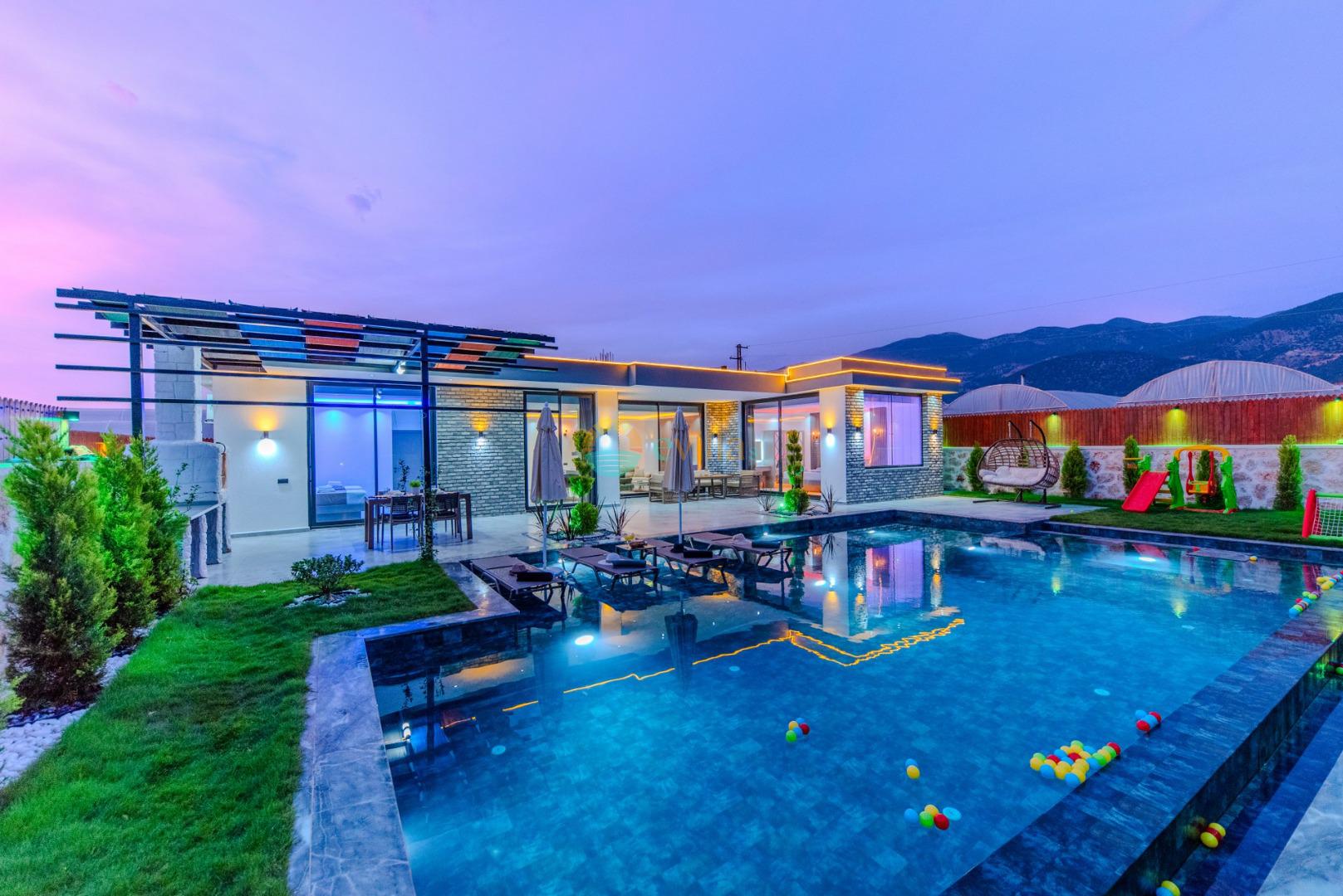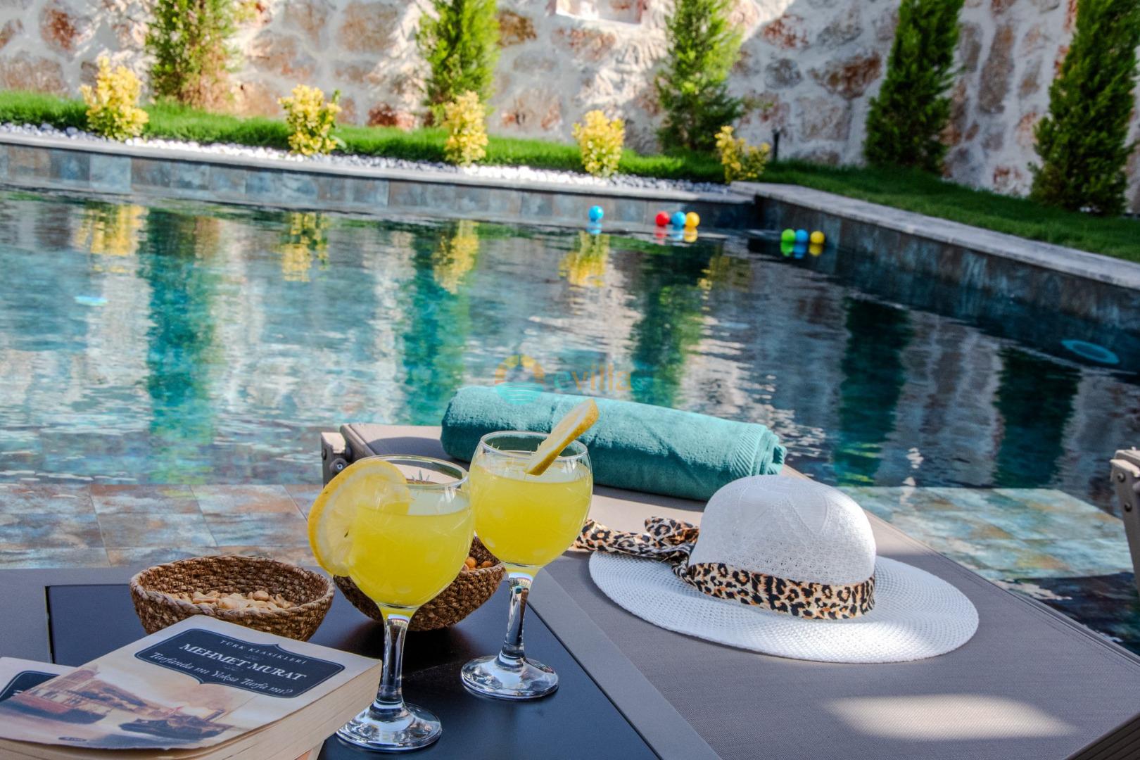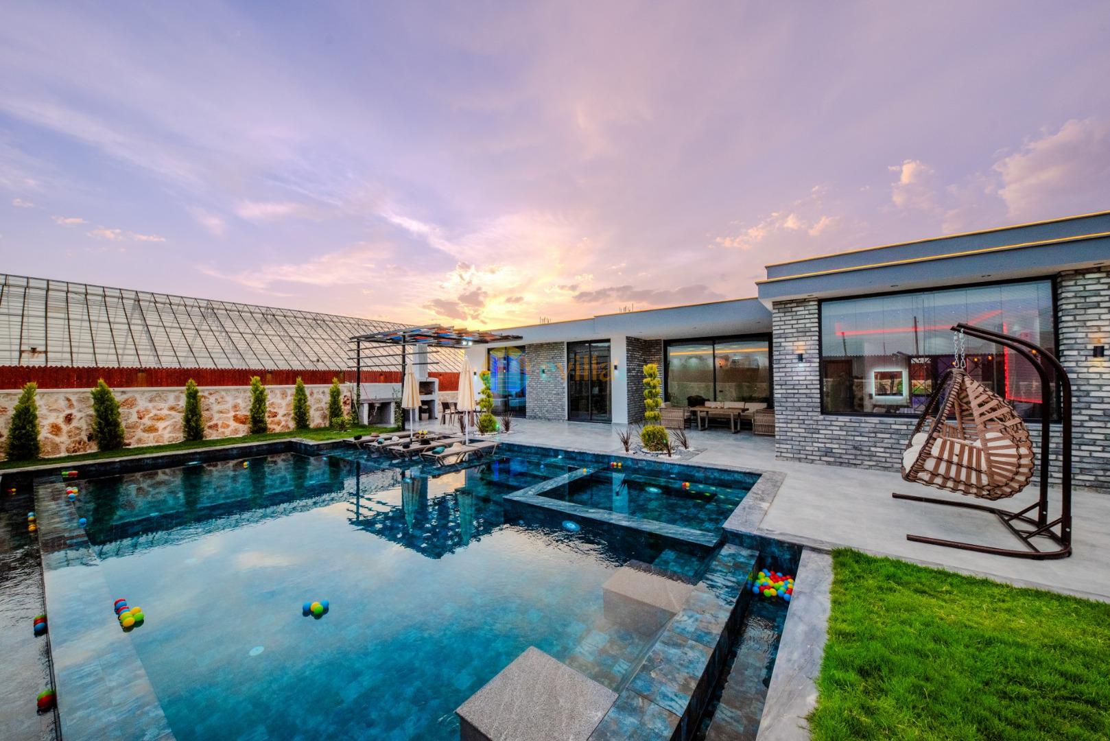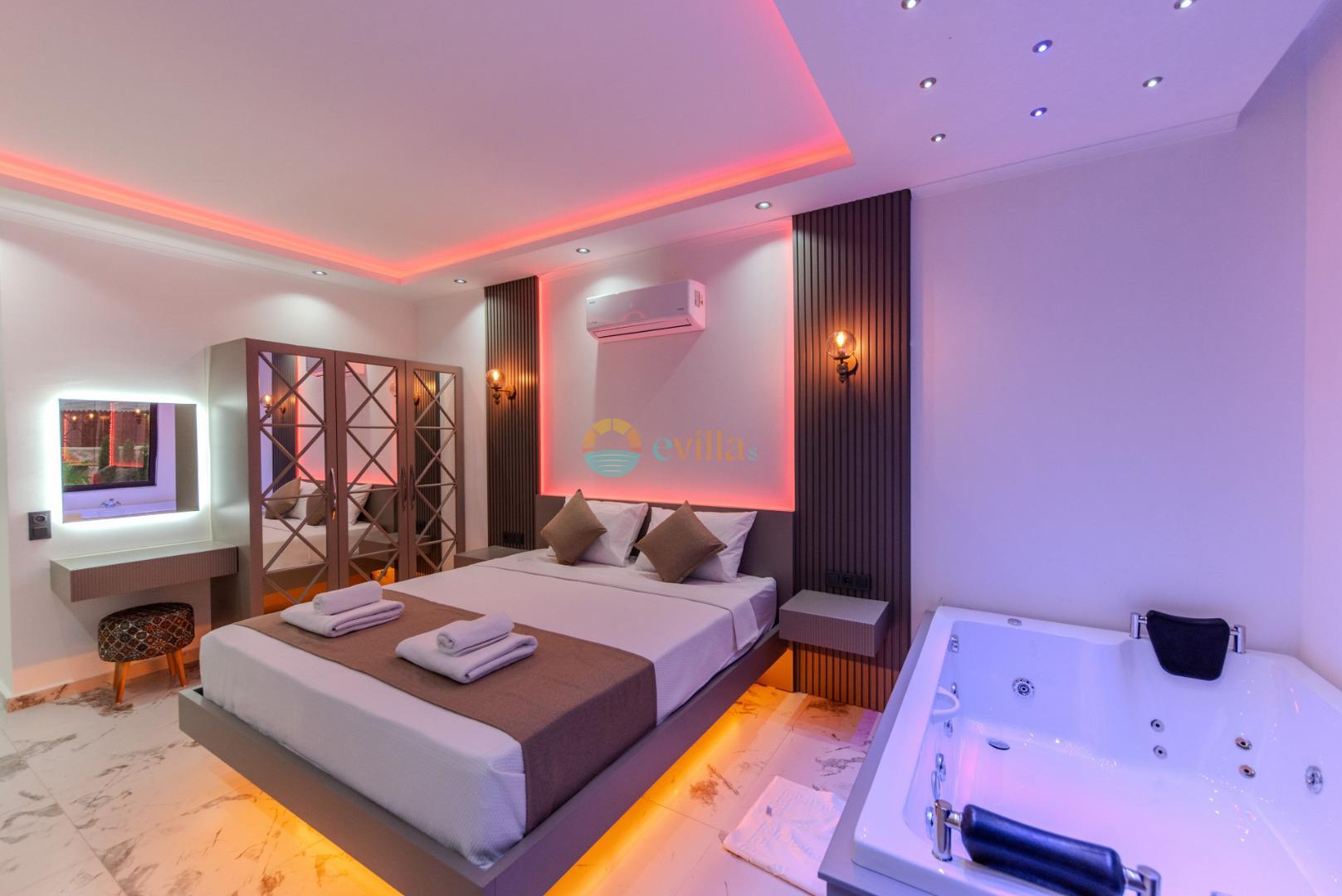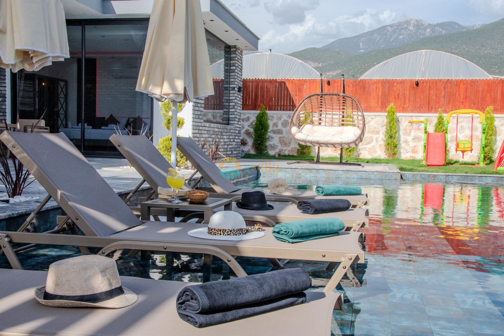 Unsere Villa ist eine konservative Ferienvilla mit 2 Schlafzimmern, einer Kapazität von 4 Personen und einem Whirlpool in der Region Kalkan Çavdır. Unsere im Jahr 2024 fertiggestellte Villa bietet mit ihrem modernen und komfortablen Design alles, was Sie brauchen. Mit unserer Villa, die sich in ruhiger Lage in der Natur befindet, können Sie die Müdigkeit des ganzen Jahres lindern und im üppigen Gartenbereich und auf der Poolterrasse einen ruhigen Urlaub verbringen. Es ist eine ideale Option für konservative Familien, Flitterwochenpaare und Familien mit Kindern.