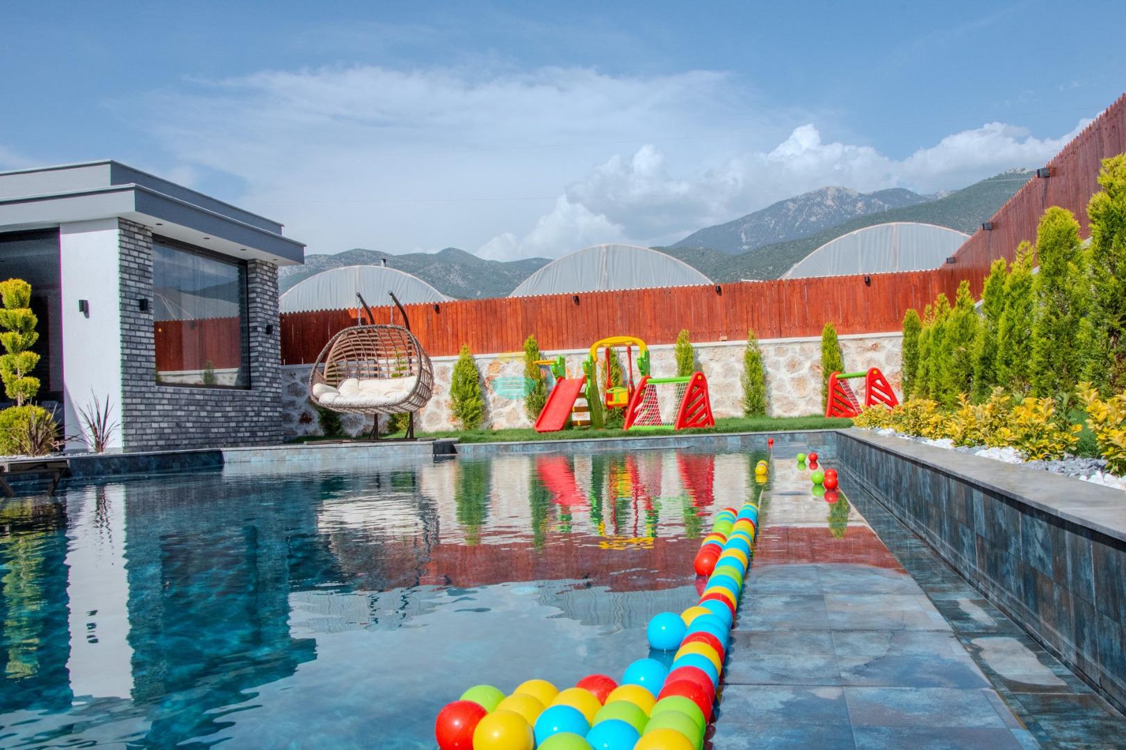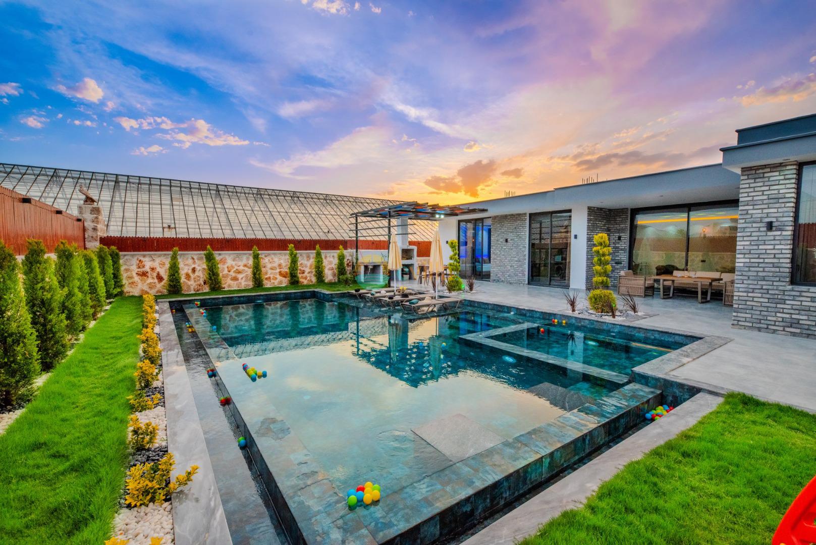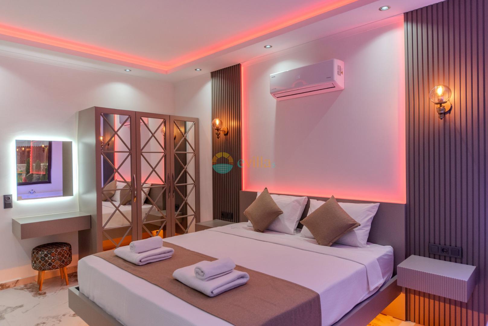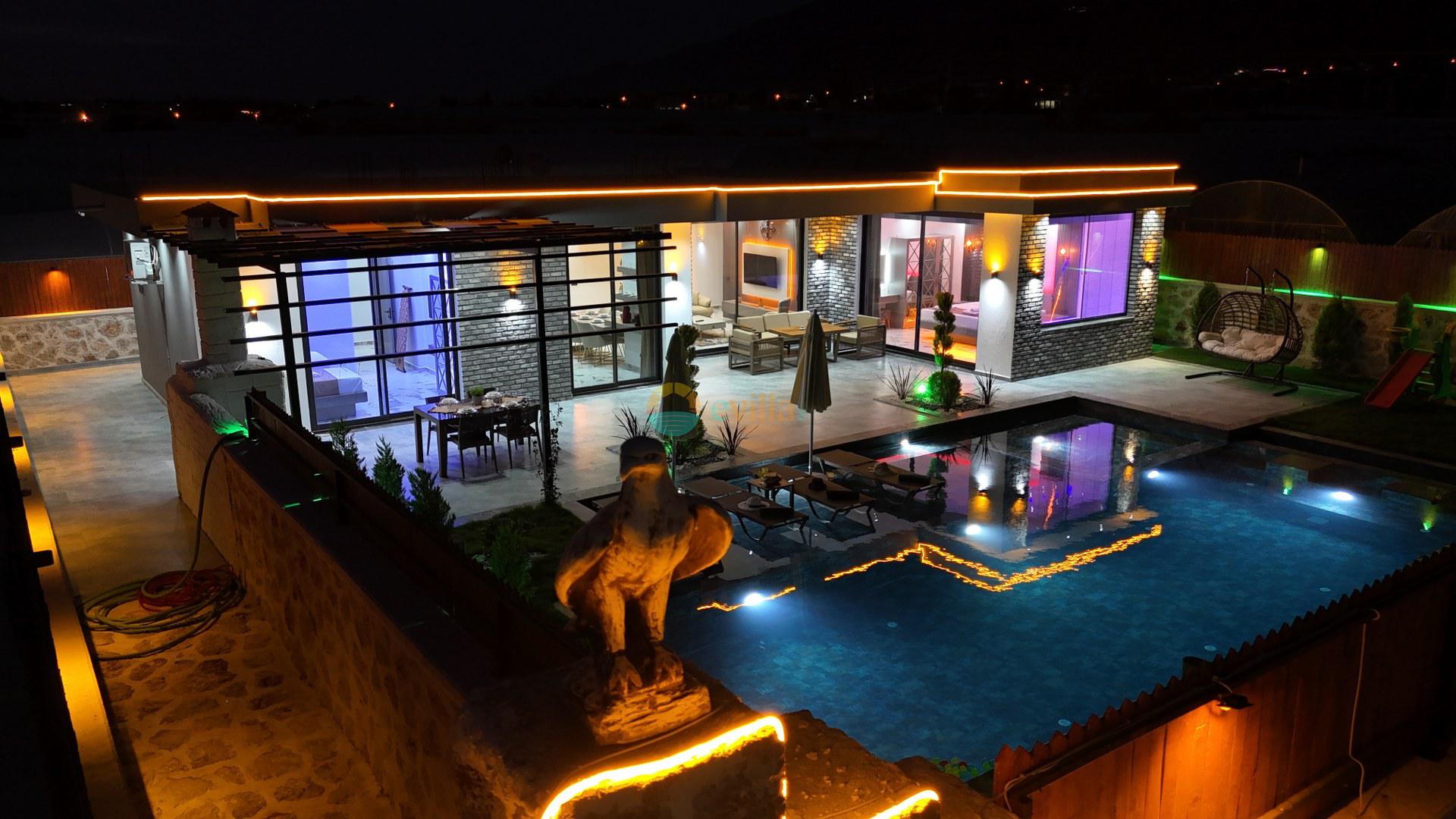 Unsere Villa ist eine konservative Ferienvilla mit 2 Schlafzimmern, einer Kapazität von 4 Personen und einem Whirlpool in der Region Kalkan Çavdır. Unsere im Jahr 2024 fertiggestellte Villa bietet mit ihrem modernen und komfortablen Design alles, was Sie brauchen. Mit unserer Villa, die sich in ruhiger Lage in der Natur befindet, können Sie die Müdigkeit des ganzen Jahres lindern und im üppigen Gartenbereich und auf der Poolterrasse einen ruhigen Urlaub verbringen. Es ist eine ideale Option für konservative Familien, Flitterwochenpaare und Familien mit Kindern.