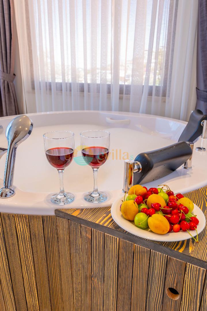 1. Schlafzimmer: Es verfügt über ein Doppelbett, Klimaanlage, Jacuzzi, Nachttisch, Kleiderschrank, Waschtisch, Bad und WC.