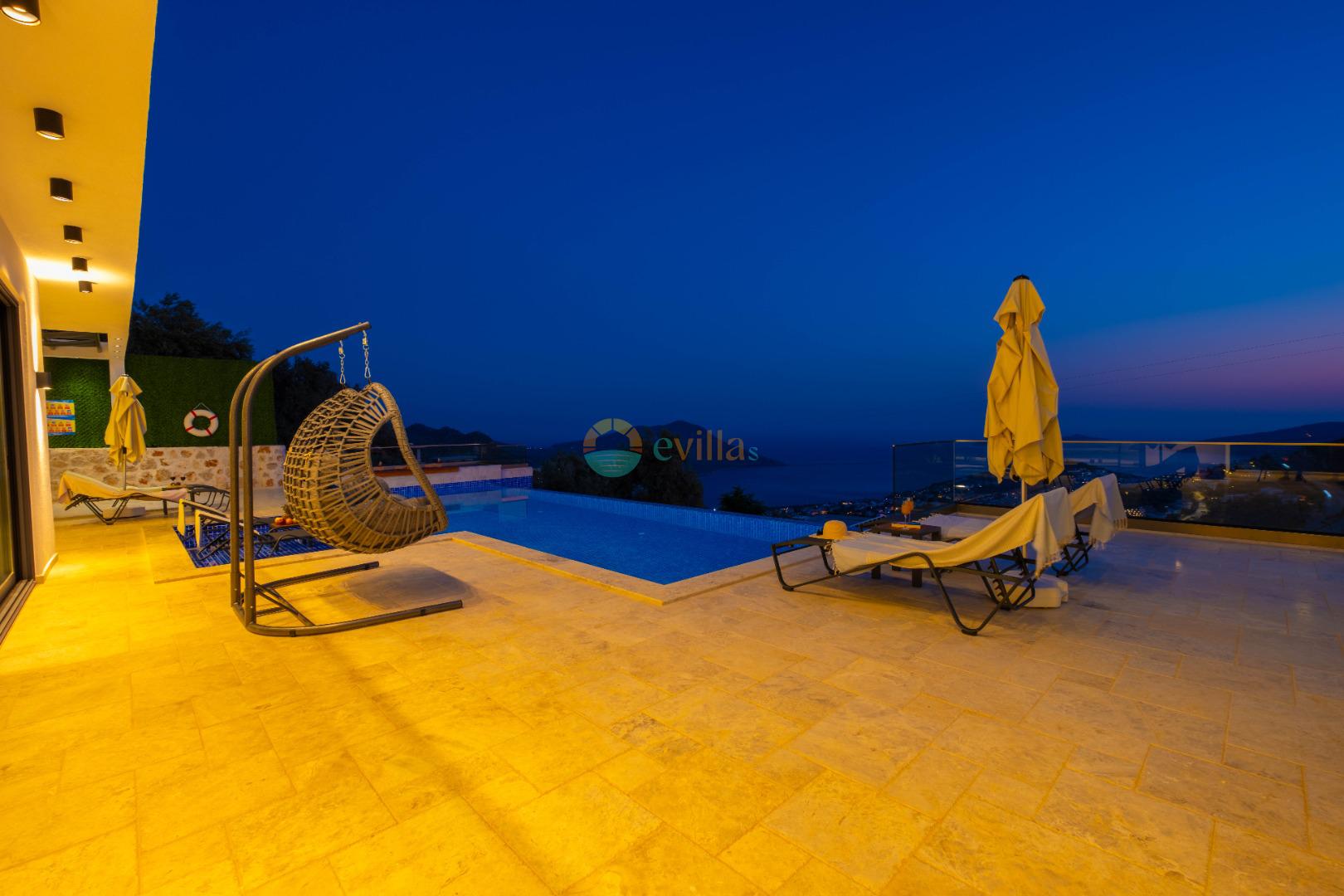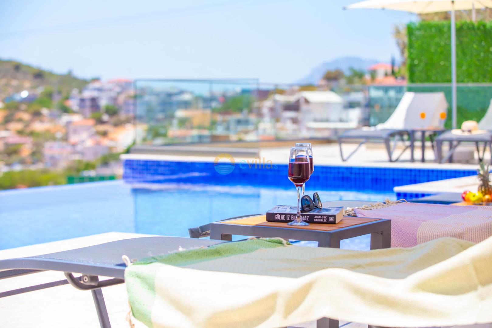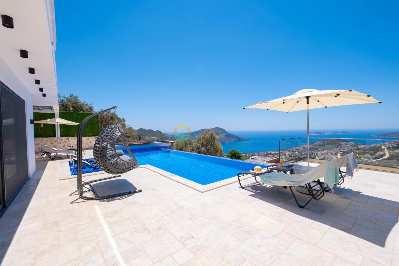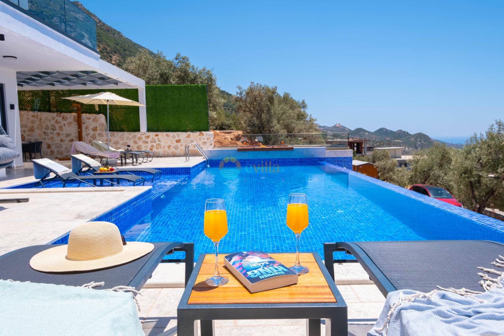 Unsere Villa ist eine Ferienvilla mit 3 Schlafzimmern und einer Kapazität von 6 Personen, gelegen in Kalkan Akbel Region, in der Natur mit einem perfekten Meerblick. Unsere Villa wurde in einer modernen und komfortablen Art und Weise entworfen und wurde für unsere Gäste bereit gemacht. Die Poolterrasse unserer Villa hat Meerblick und die Schlafzimmer verfügen über einen doppelten Jacuzzi, 2 Doppelbetten und 2 Einzelbetten. Mit ihrem privaten Swimmingpool und der Nähe zum Zentrum von Kalkan bietet Ihnen diese Villa eine ideale Urlaubsmöglichkeit.