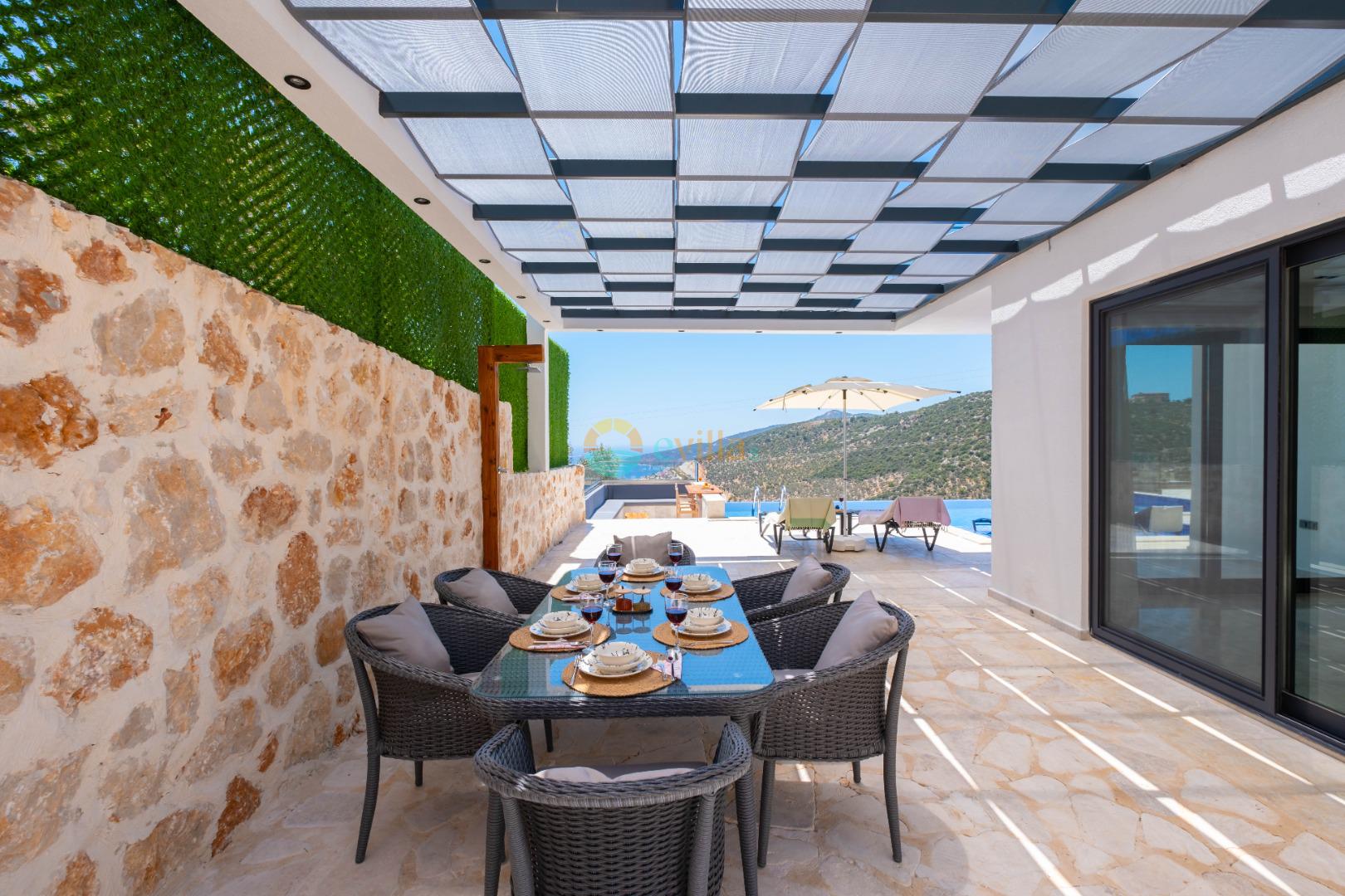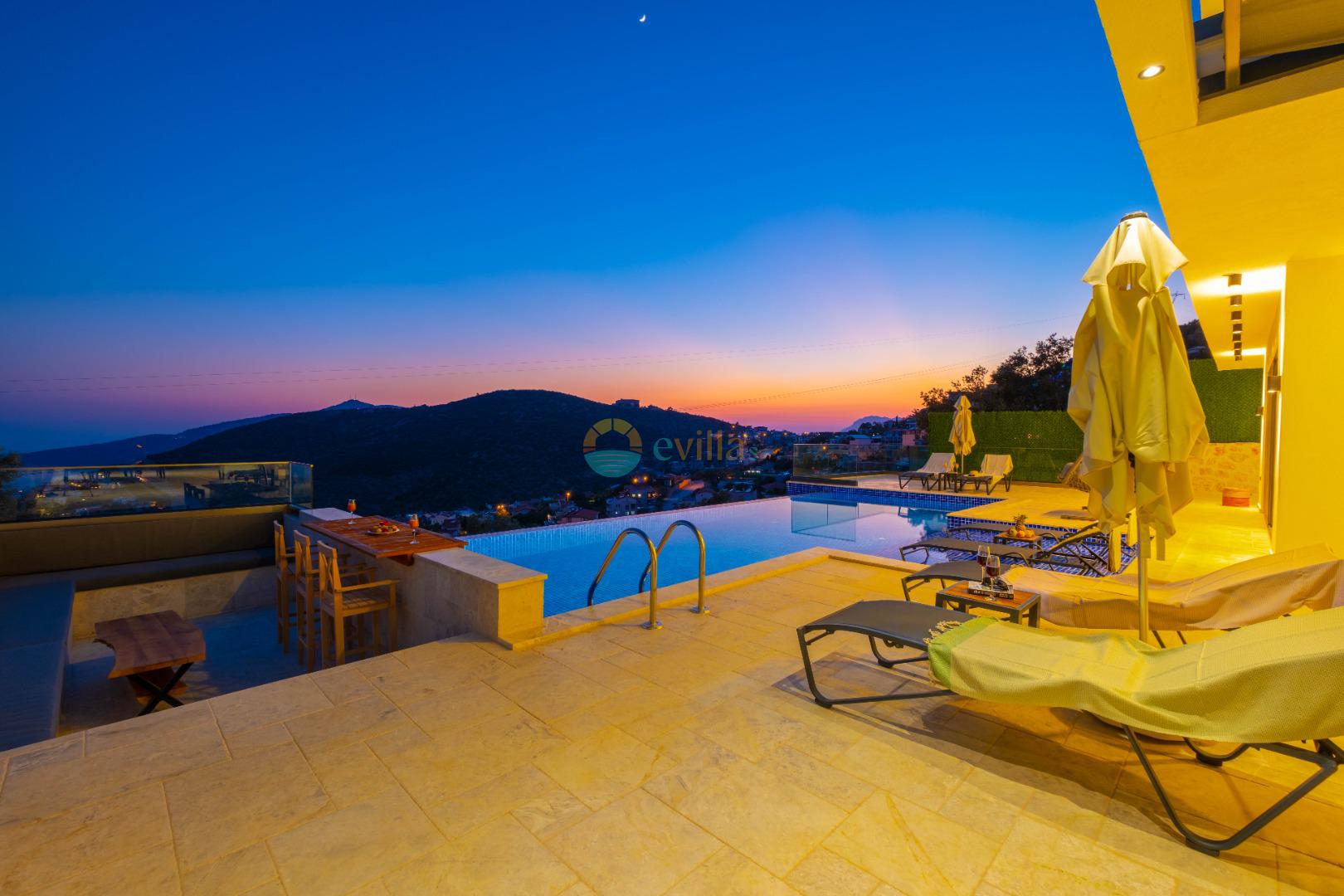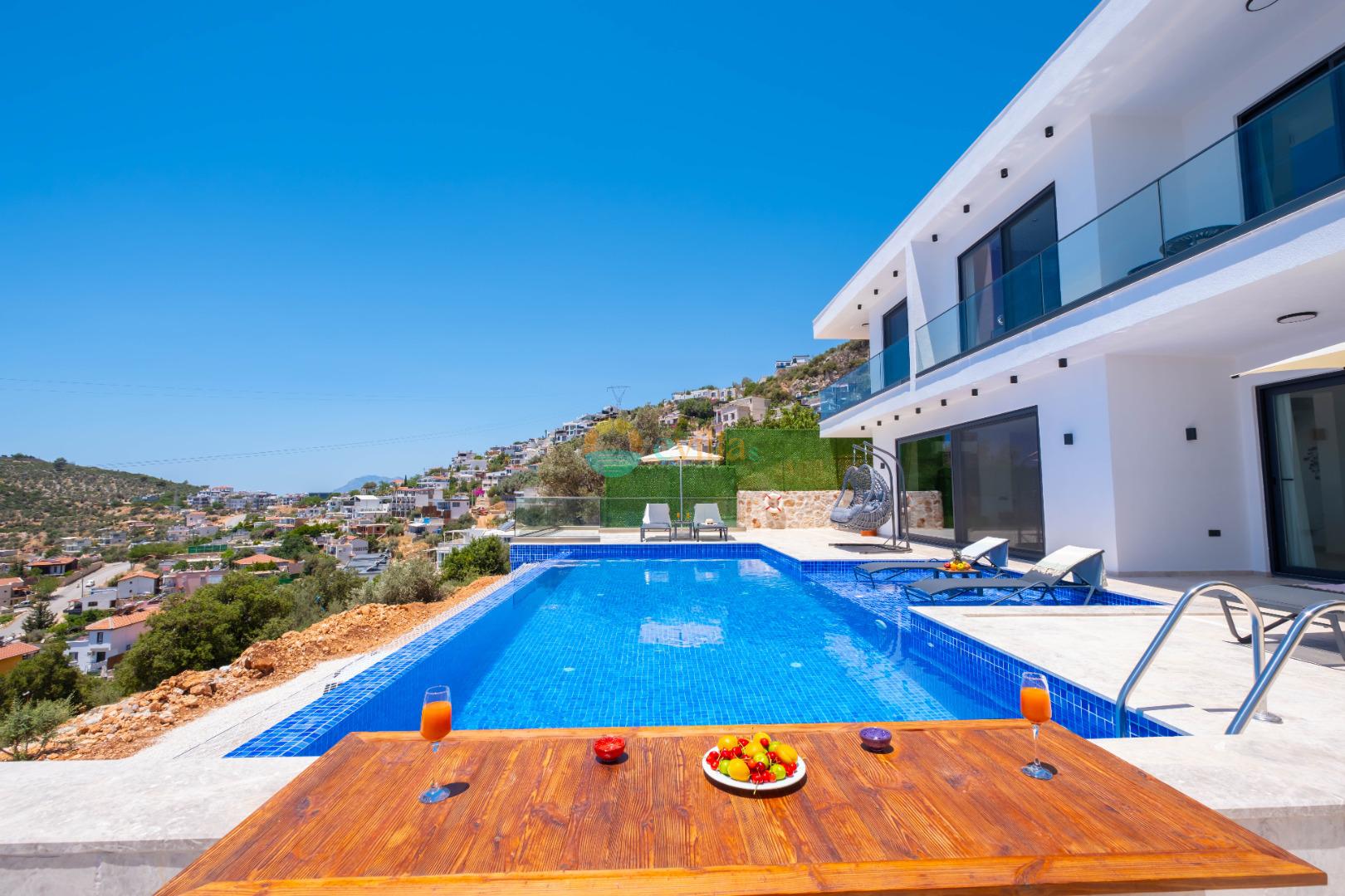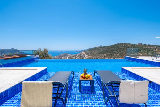 Unsere Villa ist eine Ferienvilla mit 3 Schlafzimmern und einer Kapazität von 6 Personen, gelegen in Kalkan Akbel Region, in der Natur mit einem perfekten Meerblick. Unsere Villa wurde in einer modernen und komfortablen Art und Weise entworfen und wurde für unsere Gäste bereit gemacht. Die Poolterrasse unserer Villa hat Meerblick und die Schlafzimmer verfügen über einen doppelten Jacuzzi, 2 Doppelbetten und 2 Einzelbetten. Mit ihrem privaten Swimmingpool und der Nähe zum Zentrum von Kalkan bietet Ihnen diese Villa eine ideale Urlaubsmöglichkeit.