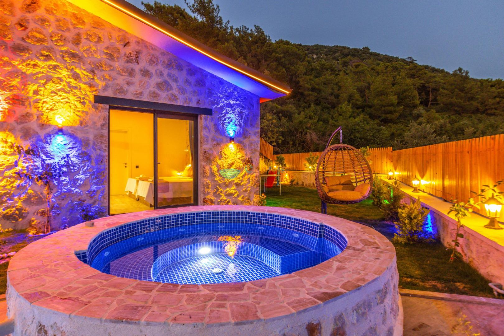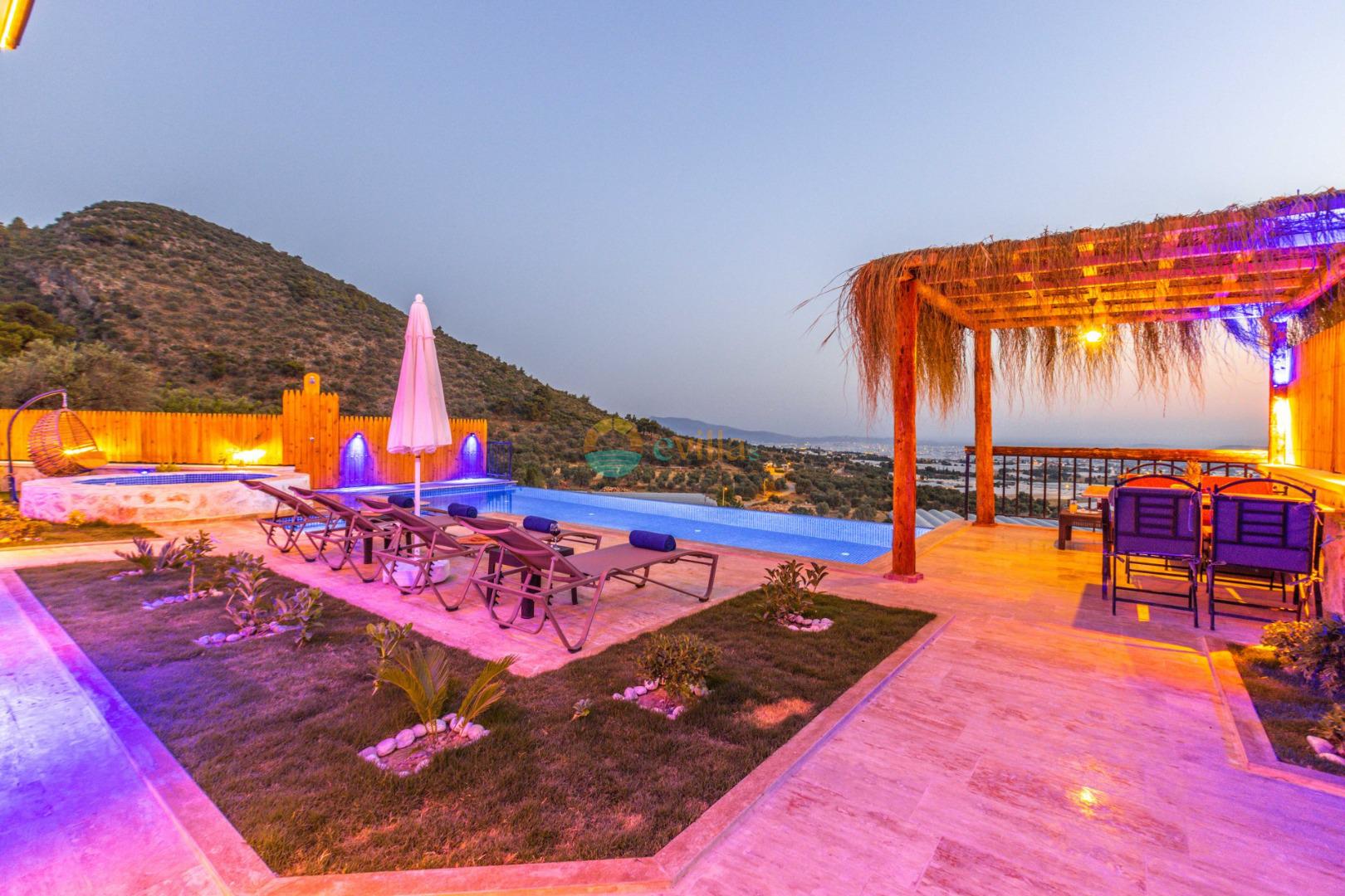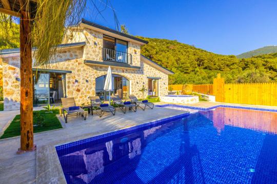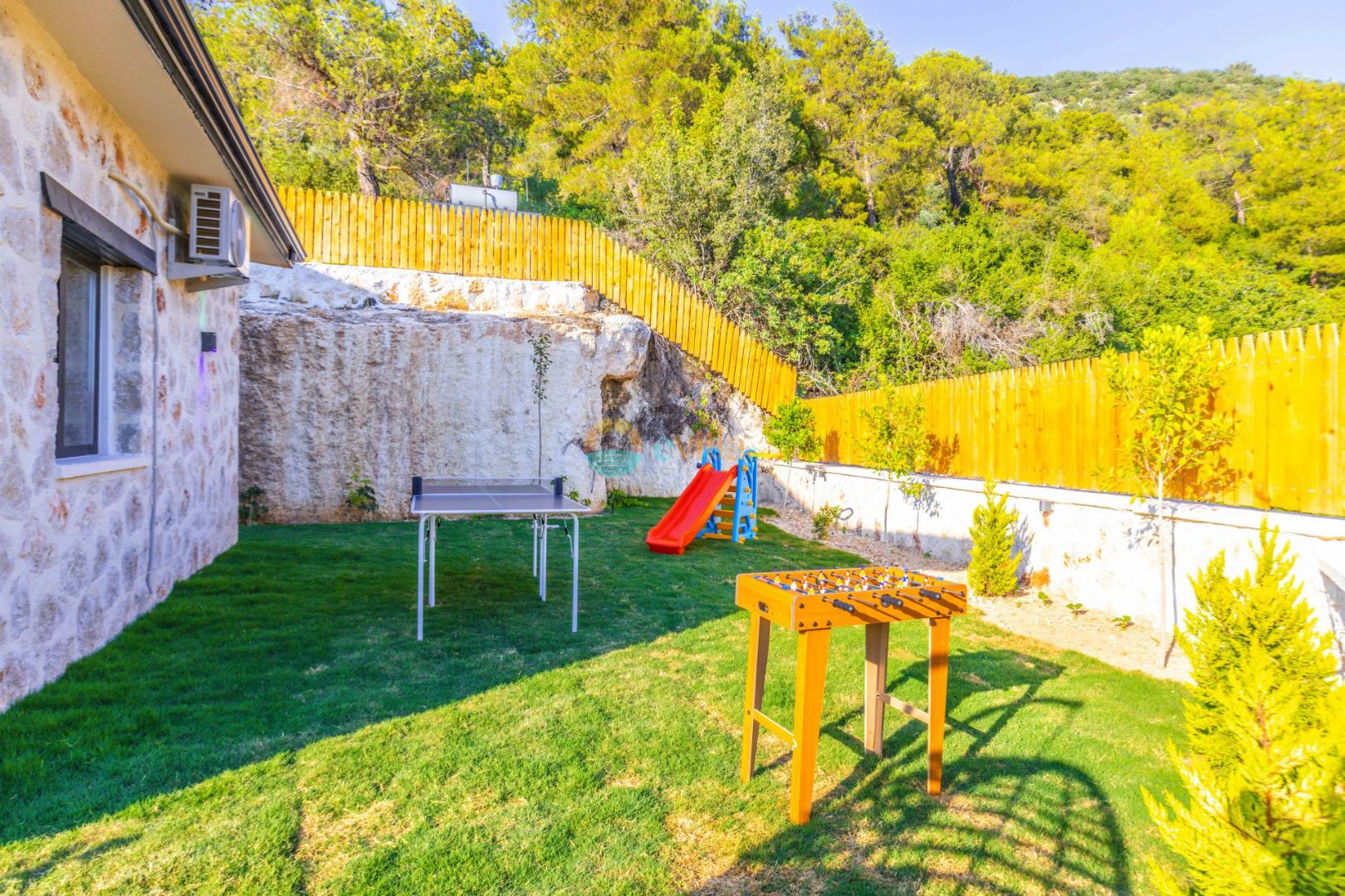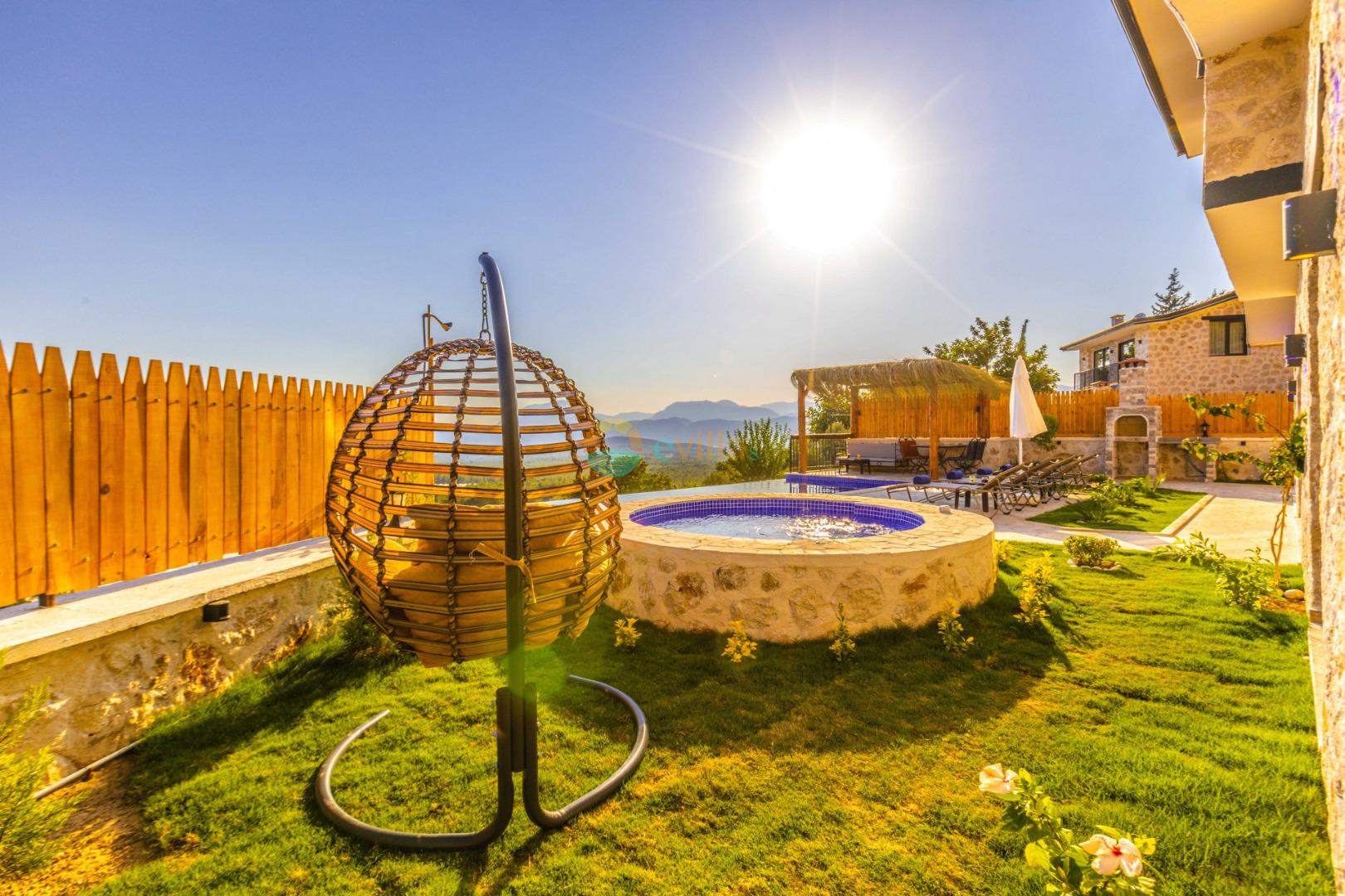 Unsere Mietvilla in der Natur im Çavdır-Gebiet von Kalkan bietet Ihnen einen ruhigen Urlaub, begleitet von Kalkans üppiger Natur und Vogelgezwitscher. Unsere preiswerte Mietvilla mit 2 Schlafzimmern bietet Platz für 4 Personen. Unsere Mietvilla mit geschütztem Pool eignet sich für konservative Familien und Flitterwochenpaare. Unsere Mietvilla mit Whirlpool bietet Ihnen einen abgeschiedenen, ruhigen und friedlichen Urlaub und ist äußerst modern und stilvoll gestaltet. Damit Familien mit Babys eine schöne Zeit haben, gibt es in unserer Villa für unsere kleinen Gäste einen Kinderspielplatz. Im Garten unserer im Sommer vermieteten Flitterwochenvilla, die etwa 15 km vom Zentrum von Kalkan und dem Meer entfernt ist, gibt es Tischtennis und Tischfußball.