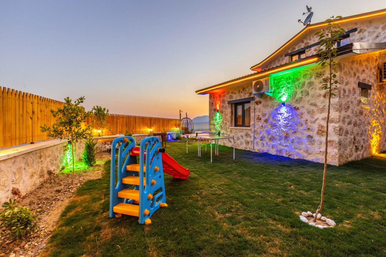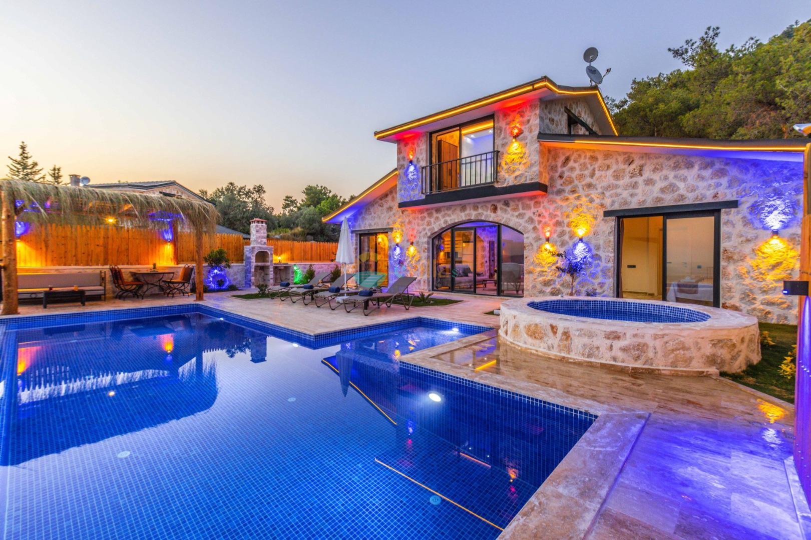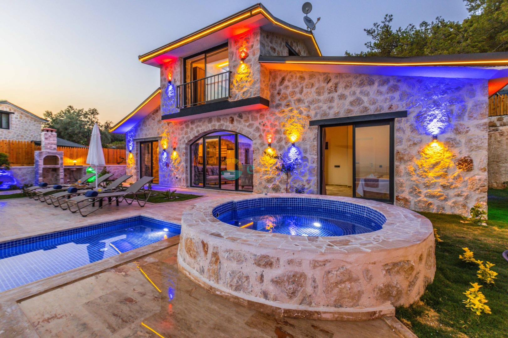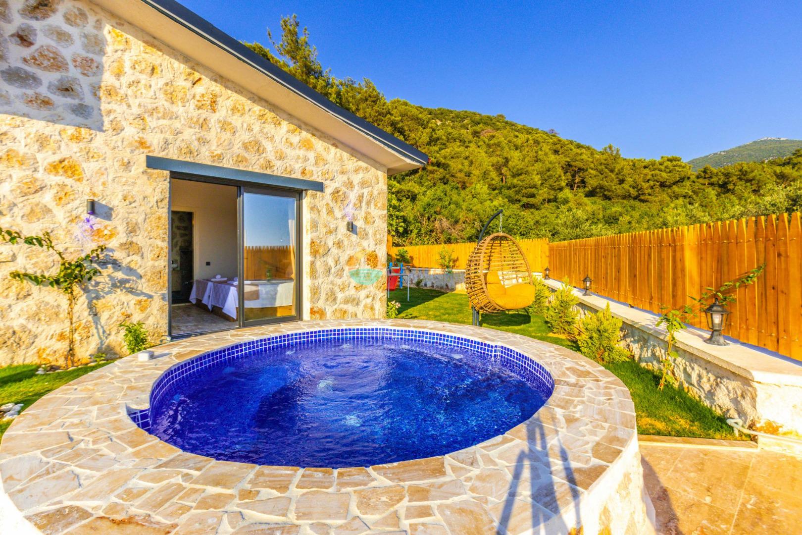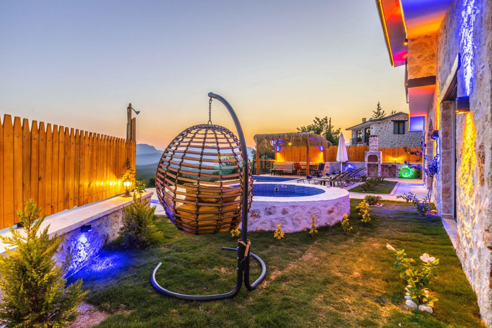 Unsere Mietvilla in der Natur im Çavdır-Gebiet von Kalkan bietet Ihnen einen ruhigen Urlaub, begleitet von Kalkans üppiger Natur und Vogelgezwitscher. Unsere preiswerte Mietvilla mit 2 Schlafzimmern bietet Platz für 4 Personen. Unsere Mietvilla mit geschütztem Pool eignet sich für konservative Familien und Flitterwochenpaare. Unsere Mietvilla mit Whirlpool bietet Ihnen einen abgeschiedenen, ruhigen und friedlichen Urlaub und ist äußerst modern und stilvoll gestaltet. Damit Familien mit Babys eine schöne Zeit haben, gibt es in unserer Villa für unsere kleinen Gäste einen Kinderspielplatz. Im Garten unserer im Sommer vermieteten Flitterwochenvilla, die etwa 15 km vom Zentrum von Kalkan und dem Meer entfernt ist, gibt es Tischtennis und Tischfußball.