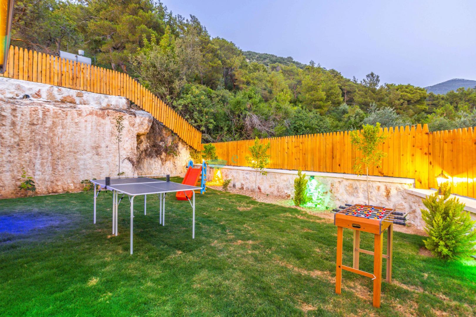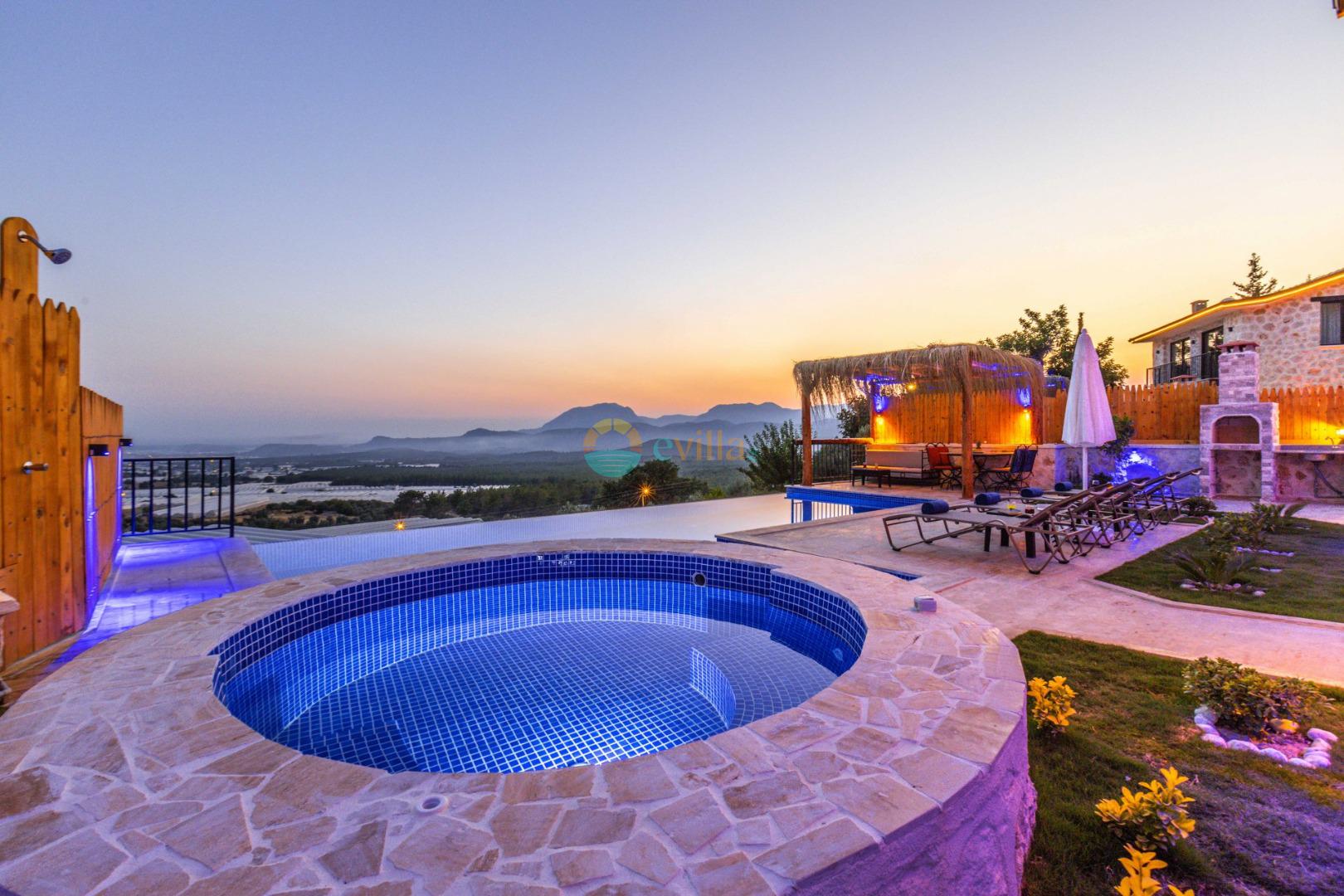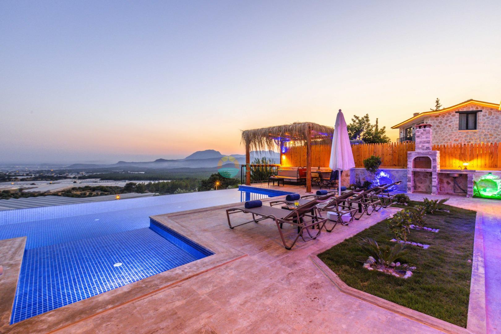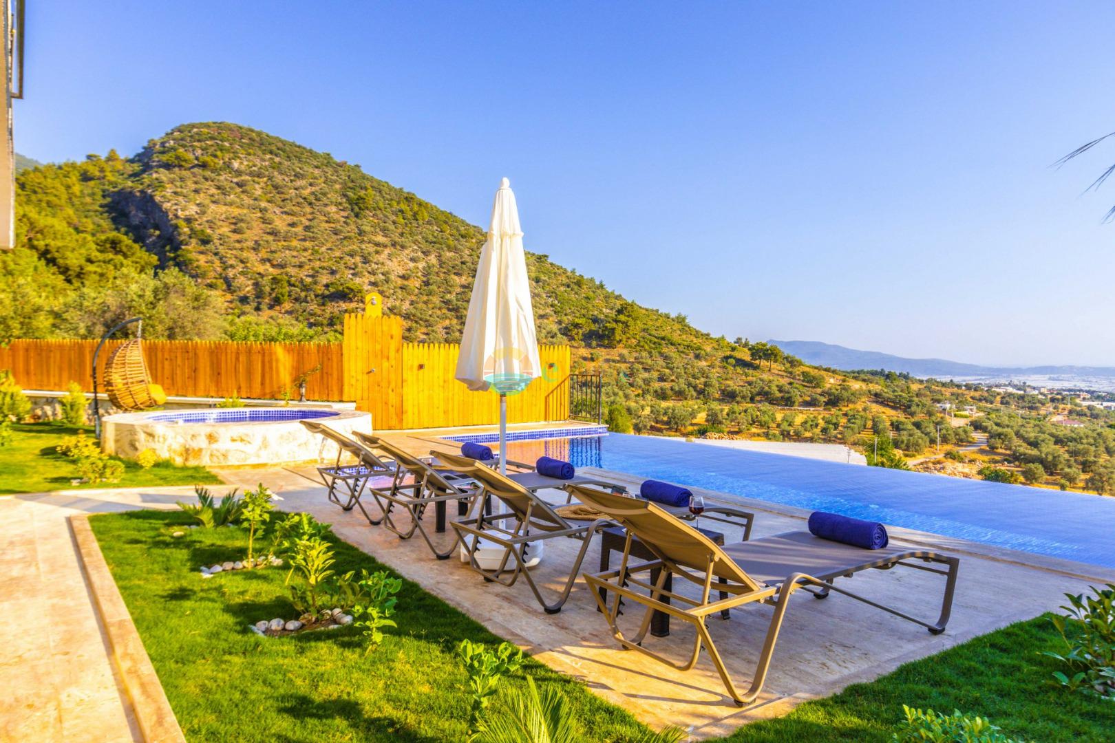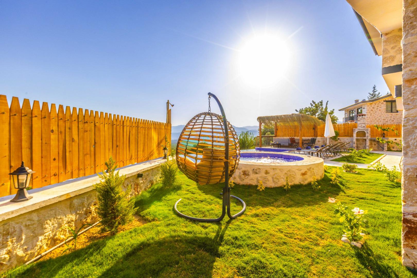 Unsere Mietvilla in der Natur im Çavdır-Gebiet von Kalkan bietet Ihnen einen ruhigen Urlaub, begleitet von Kalkans üppiger Natur und Vogelgezwitscher. Unsere preiswerte Mietvilla mit 2 Schlafzimmern bietet Platz für 4 Personen. Unsere Mietvilla mit geschütztem Pool eignet sich für konservative Familien und Flitterwochenpaare. Unsere Mietvilla mit Whirlpool bietet Ihnen einen abgeschiedenen, ruhigen und friedlichen Urlaub und ist äußerst modern und stilvoll gestaltet. Damit Familien mit Babys eine schöne Zeit haben, gibt es in unserer Villa für unsere kleinen Gäste einen Kinderspielplatz. Im Garten unserer im Sommer vermieteten Flitterwochenvilla, die etwa 15 km vom Zentrum von Kalkan und dem Meer entfernt ist, gibt es Tischtennis und Tischfußball.