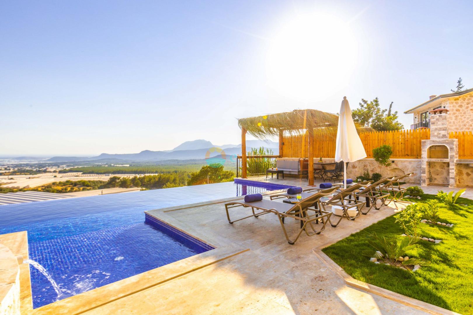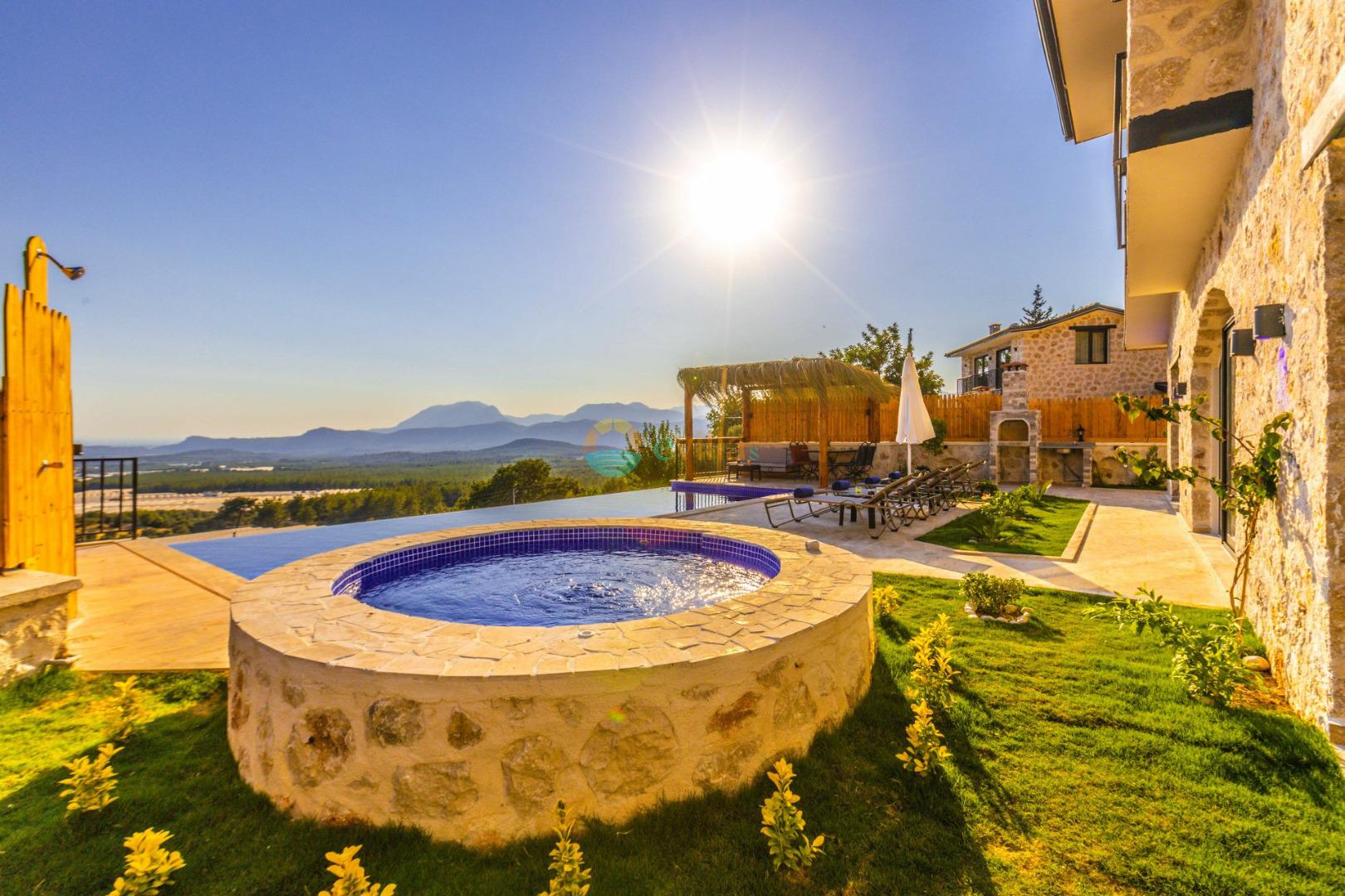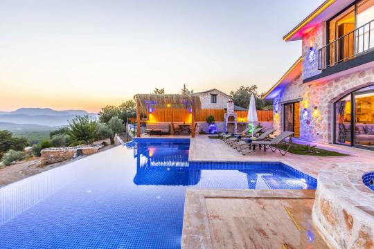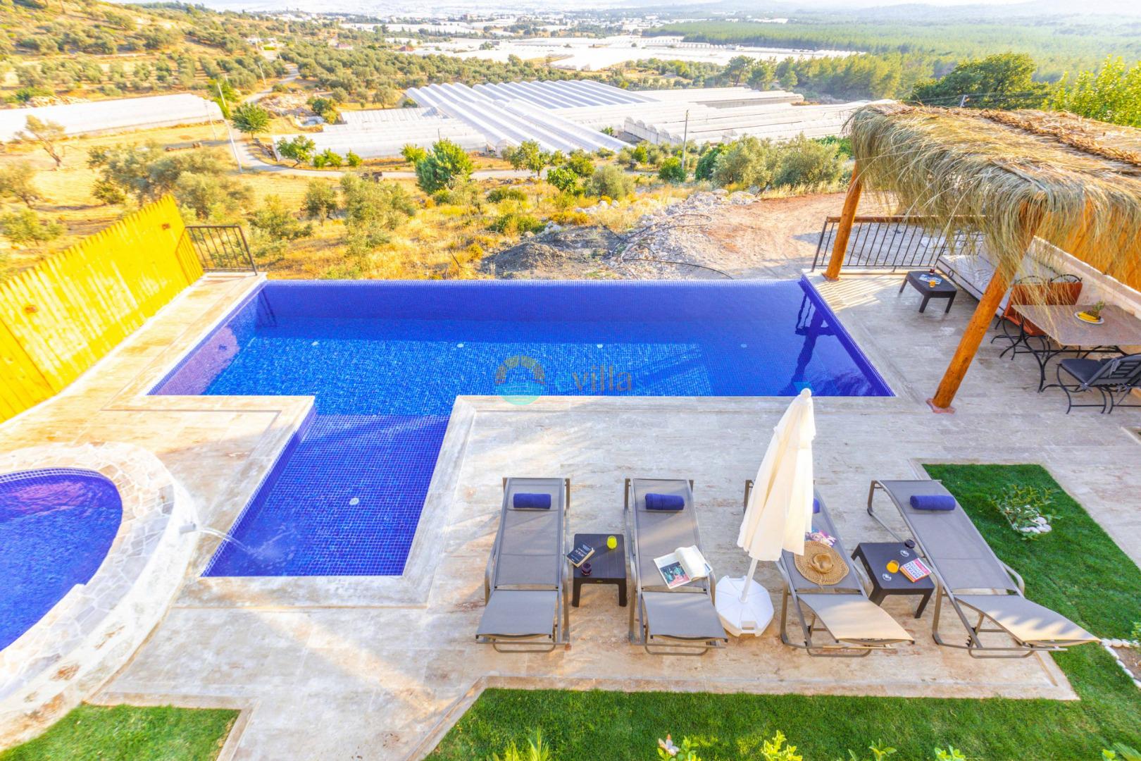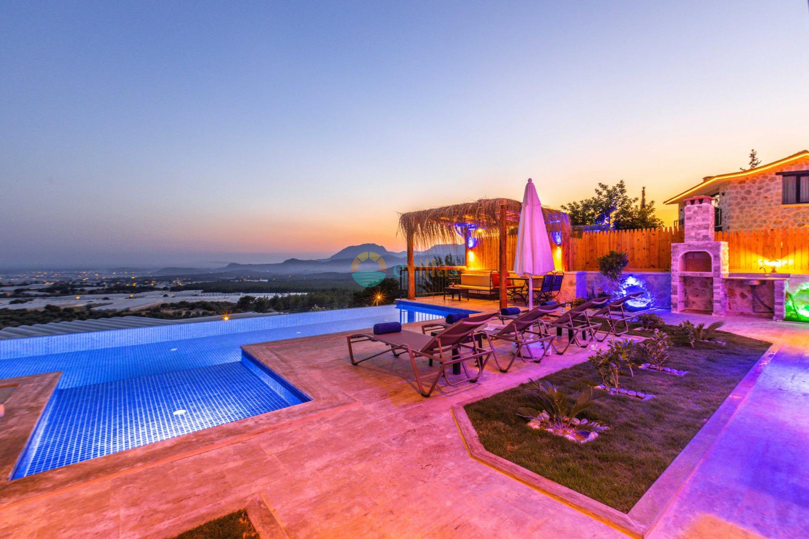 Unsere Mietvilla in der Natur im Çavdır-Gebiet von Kalkan bietet Ihnen einen ruhigen Urlaub, begleitet von Kalkans üppiger Natur und Vogelgezwitscher. Unsere preiswerte Mietvilla mit 2 Schlafzimmern bietet Platz für 4 Personen. Unsere Mietvilla mit geschütztem Pool eignet sich für konservative Familien und Flitterwochenpaare. Unsere Mietvilla mit Whirlpool bietet Ihnen einen abgeschiedenen, ruhigen und friedlichen Urlaub und ist äußerst modern und stilvoll gestaltet. Damit Familien mit Babys eine schöne Zeit haben, gibt es in unserer Villa für unsere kleinen Gäste einen Kinderspielplatz. Im Garten unserer im Sommer vermieteten Flitterwochenvilla, die etwa 15 km vom Zentrum von Kalkan und dem Meer entfernt ist, gibt es Tischtennis und Tischfußball.