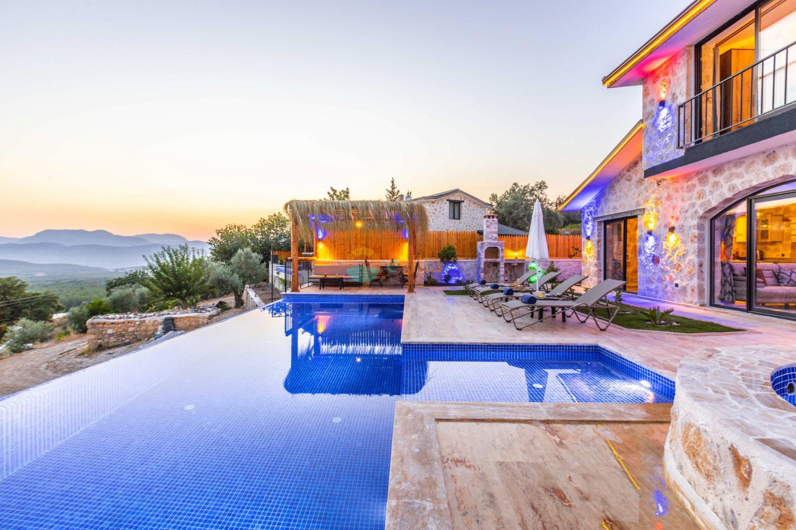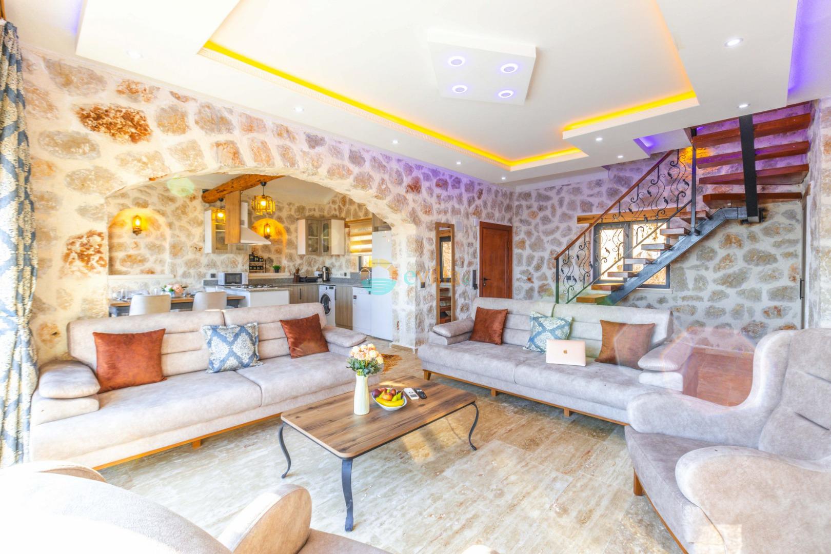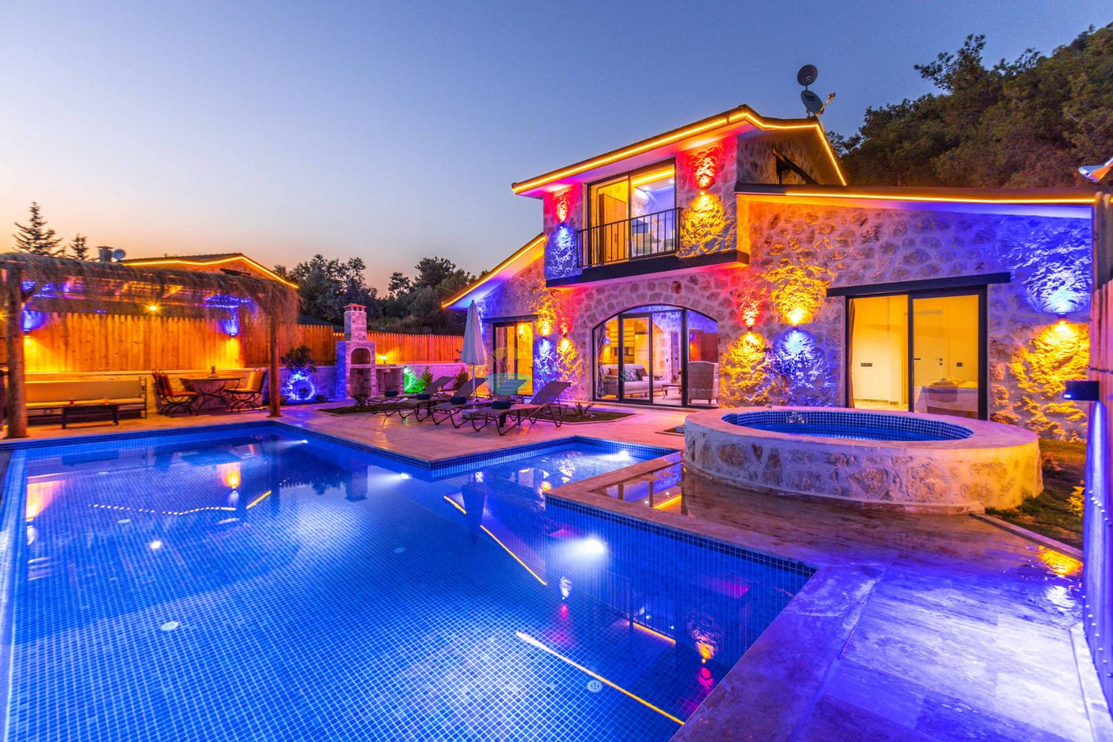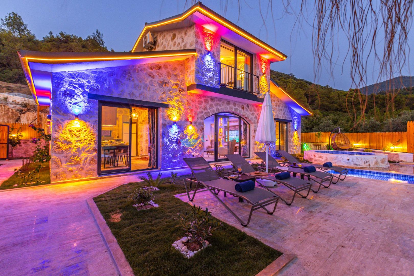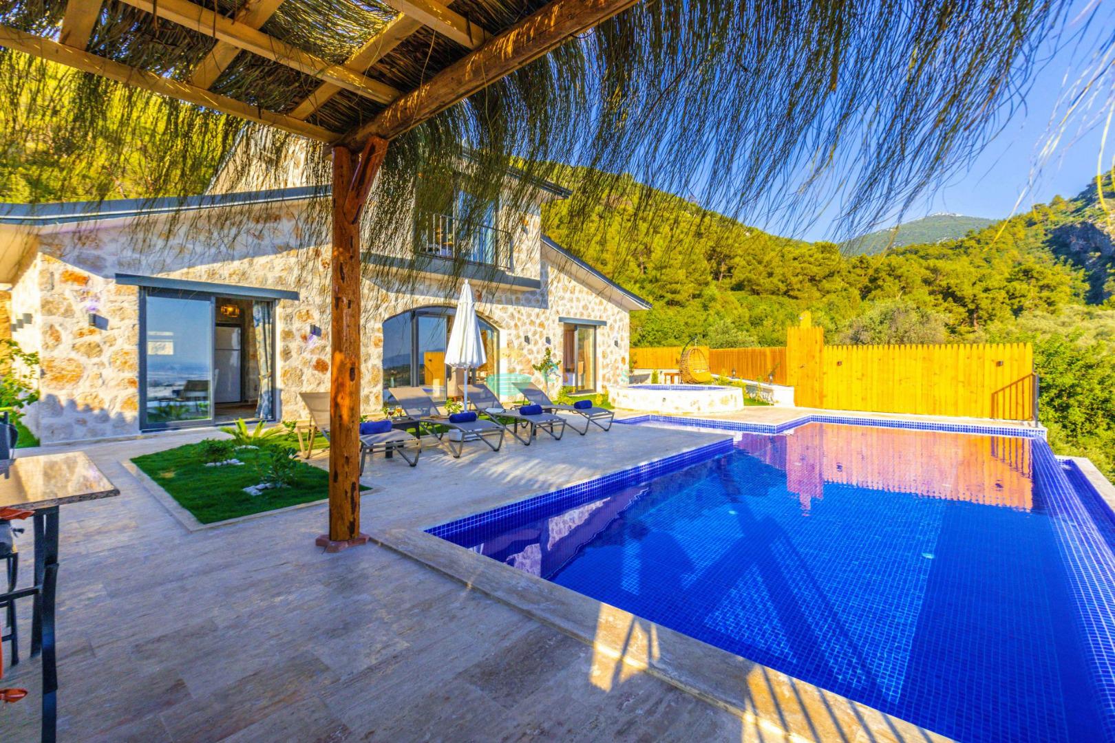 Unsere Mietvilla in der Natur im Çavdır-Gebiet von Kalkan bietet Ihnen einen ruhigen Urlaub, begleitet von Kalkans üppiger Natur und Vogelgezwitscher. Unsere preiswerte Mietvilla mit 2 Schlafzimmern bietet Platz für 4 Personen. Unsere Mietvilla mit geschütztem Pool eignet sich für konservative Familien und Flitterwochenpaare. Unsere Mietvilla mit Whirlpool bietet Ihnen einen abgeschiedenen, ruhigen und friedlichen Urlaub und ist äußerst modern und stilvoll gestaltet. Damit Familien mit Babys eine schöne Zeit haben, gibt es in unserer Villa für unsere kleinen Gäste einen Kinderspielplatz. Im Garten unserer im Sommer vermieteten Flitterwochenvilla, die etwa 15 km vom Zentrum von Kalkan und dem Meer entfernt ist, gibt es Tischtennis und Tischfußball.