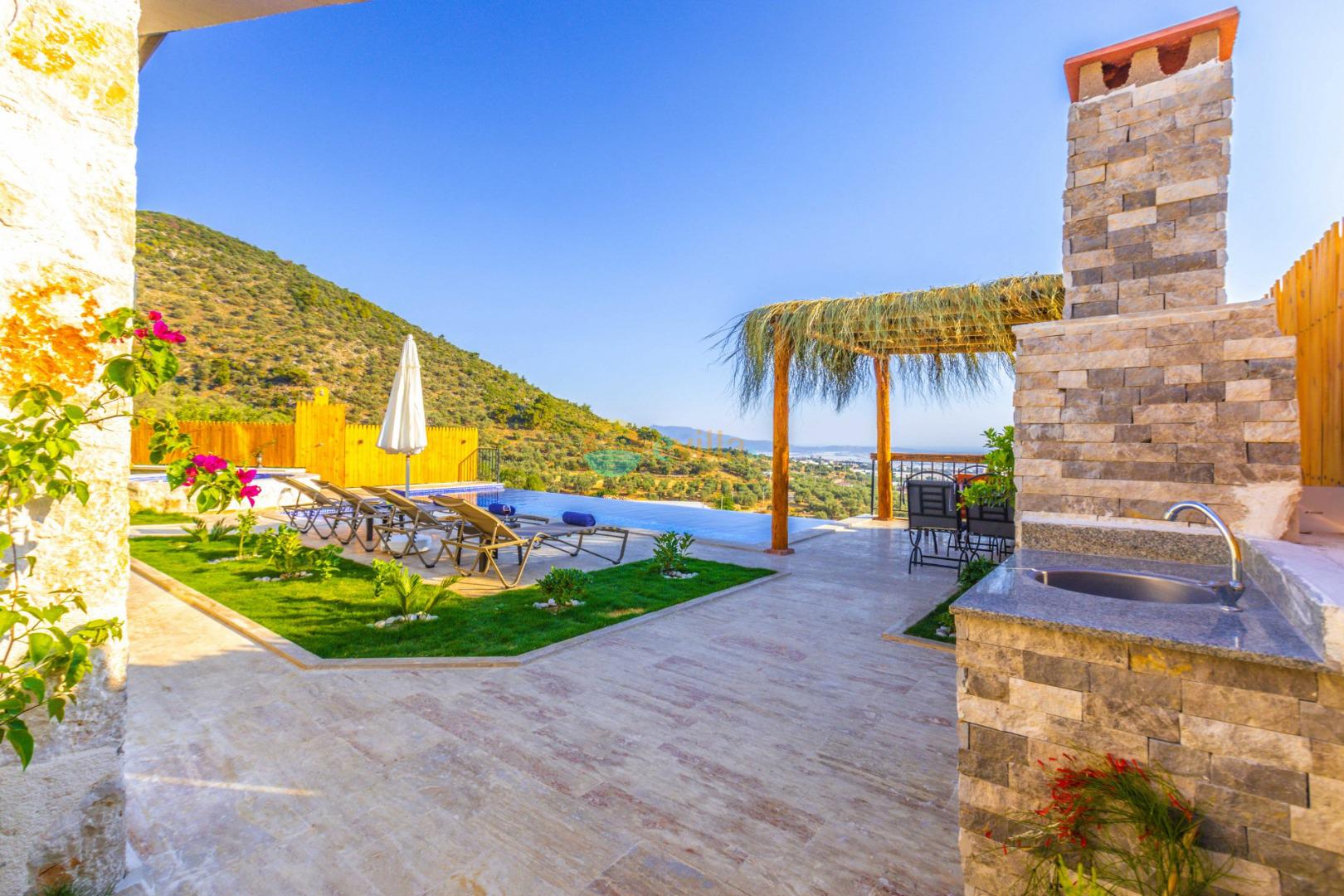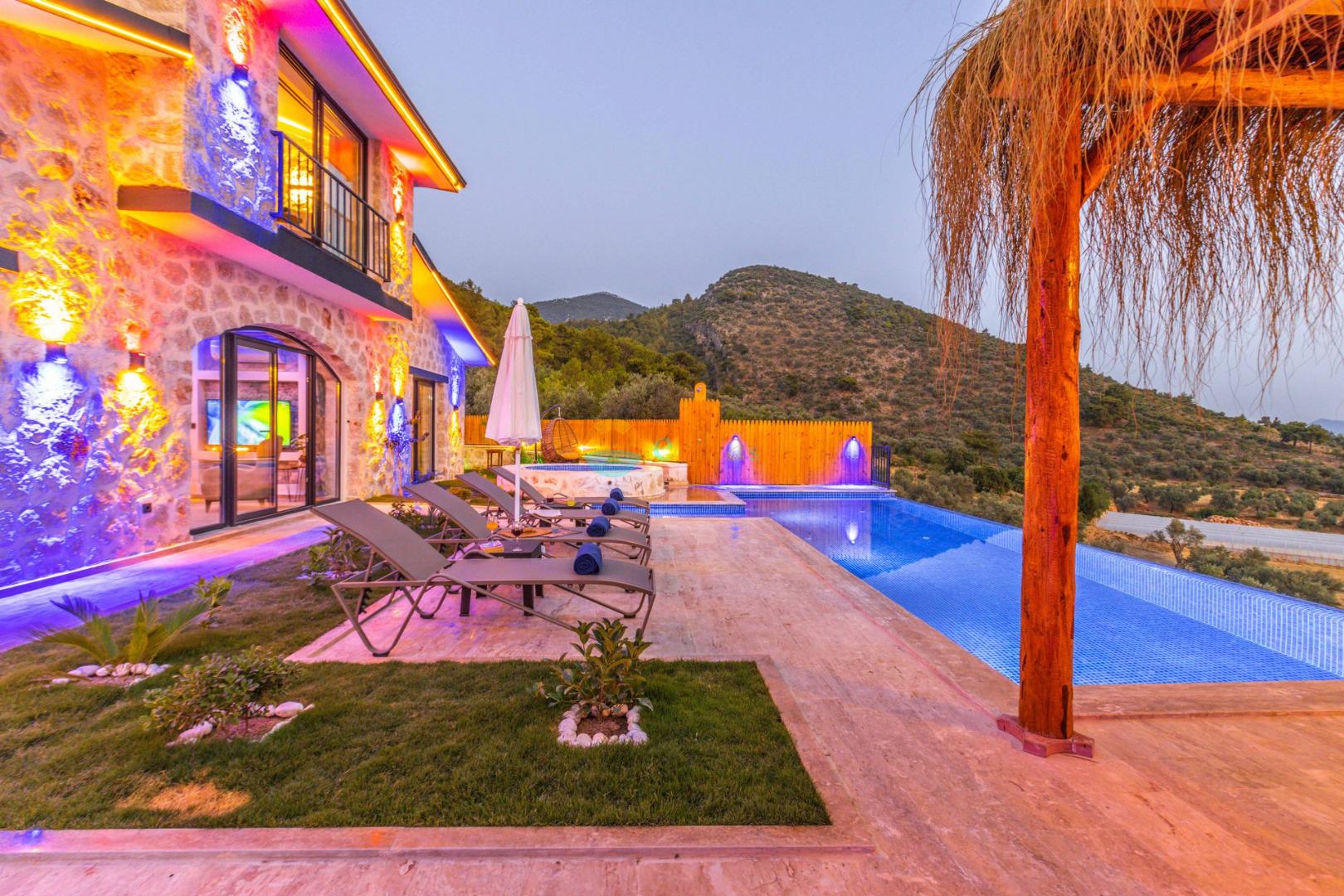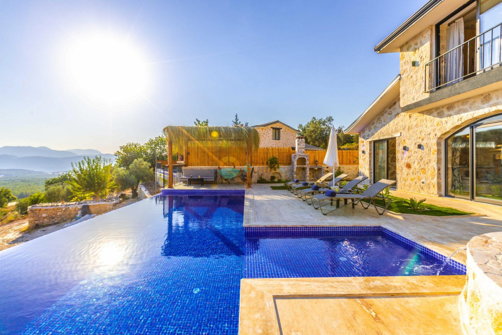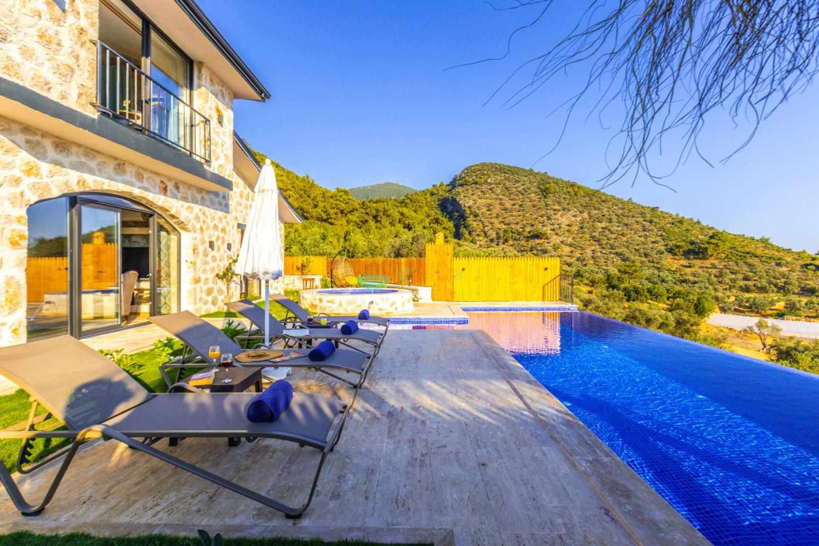 Unsere Mietvilla in der Natur im Çavdır-Gebiet von Kalkan bietet Ihnen einen ruhigen Urlaub, begleitet von Kalkans üppiger Natur und Vogelgezwitscher. Unsere preiswerte Mietvilla mit 2 Schlafzimmern bietet Platz für 4 Personen. Unsere Mietvilla mit geschütztem Pool eignet sich für konservative Familien und Flitterwochenpaare. Unsere Mietvilla mit Whirlpool bietet Ihnen einen abgeschiedenen, ruhigen und friedlichen Urlaub und ist äußerst modern und stilvoll gestaltet. Damit Familien mit Babys eine schöne Zeit haben, gibt es in unserer Villa für unsere kleinen Gäste einen Kinderspielplatz. Im Garten unserer im Sommer vermieteten Flitterwochenvilla, die etwa 15 km vom Zentrum von Kalkan und dem Meer entfernt ist, gibt es Tischtennis und Tischfußball.