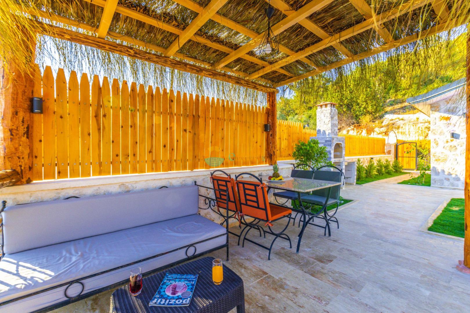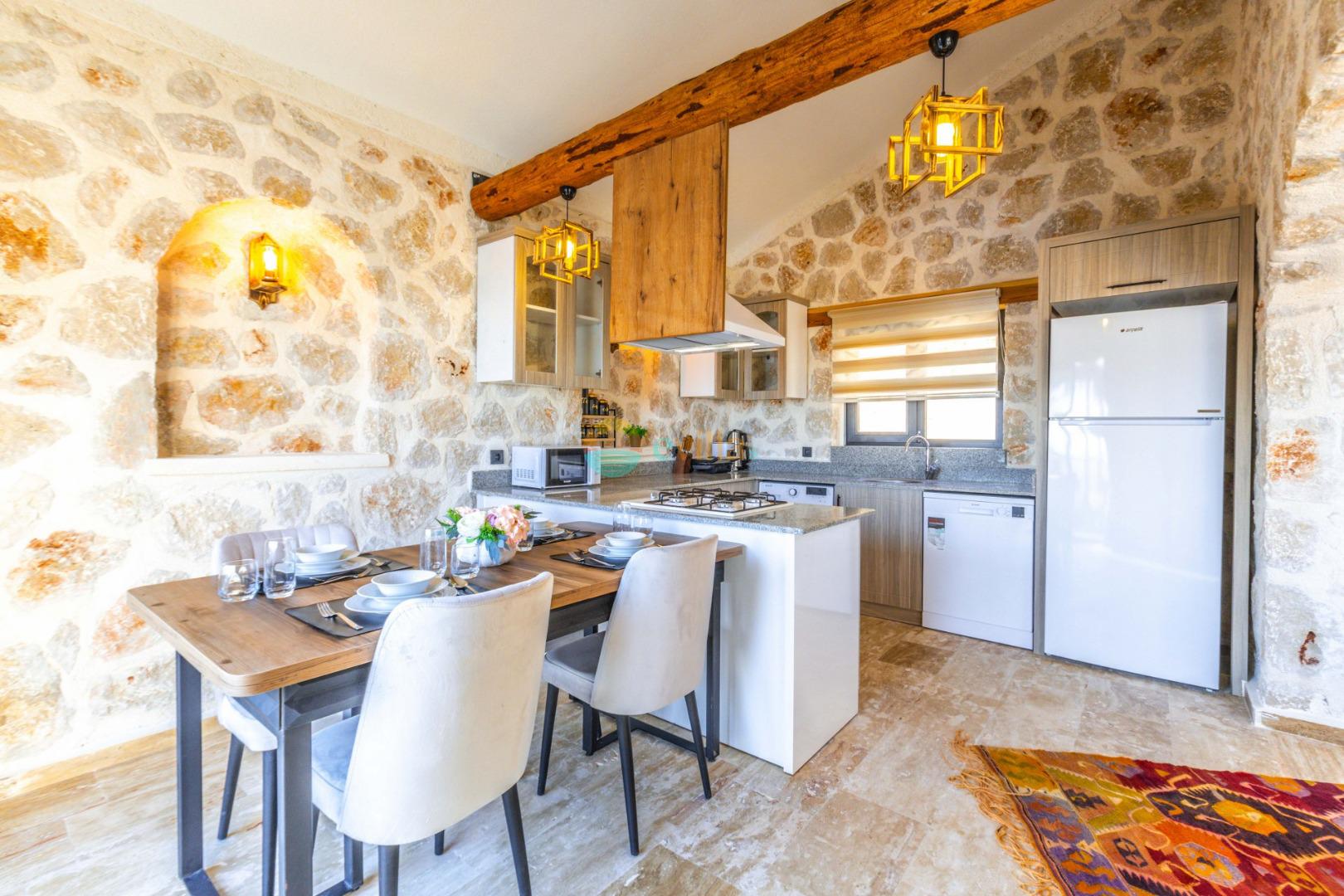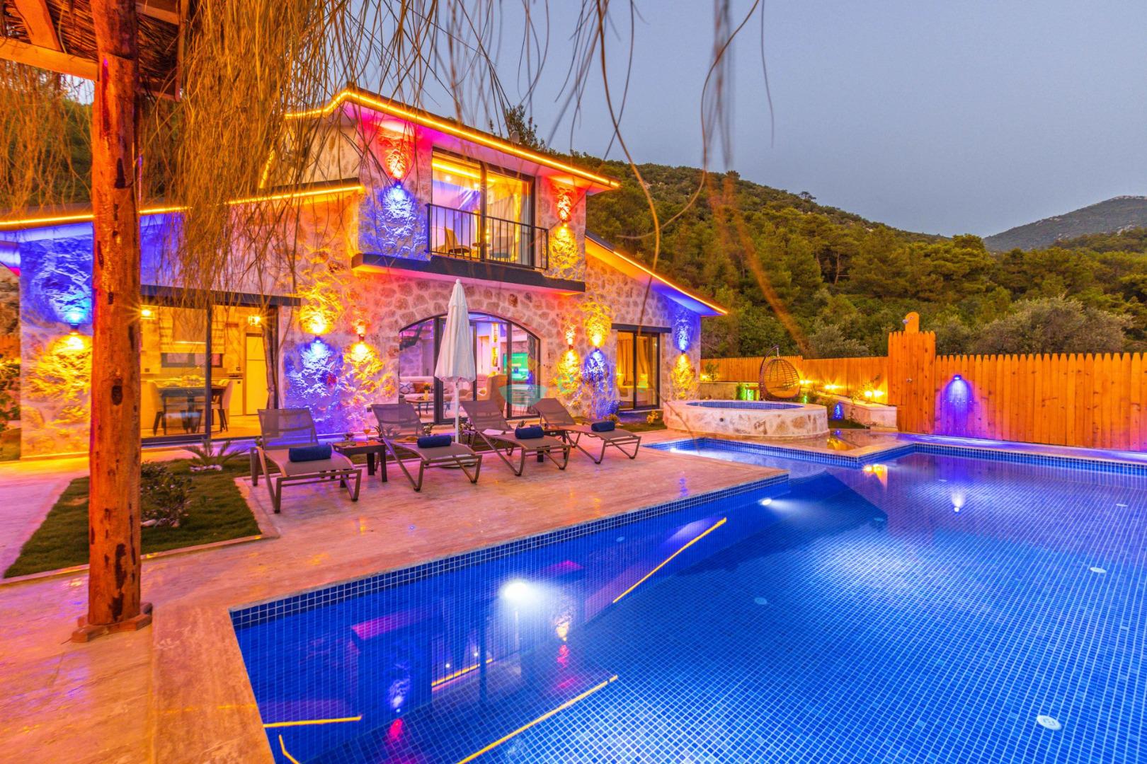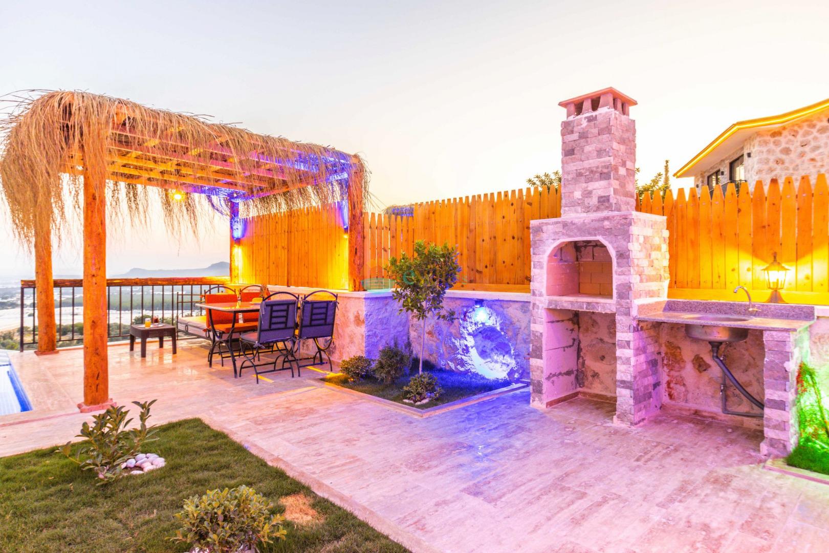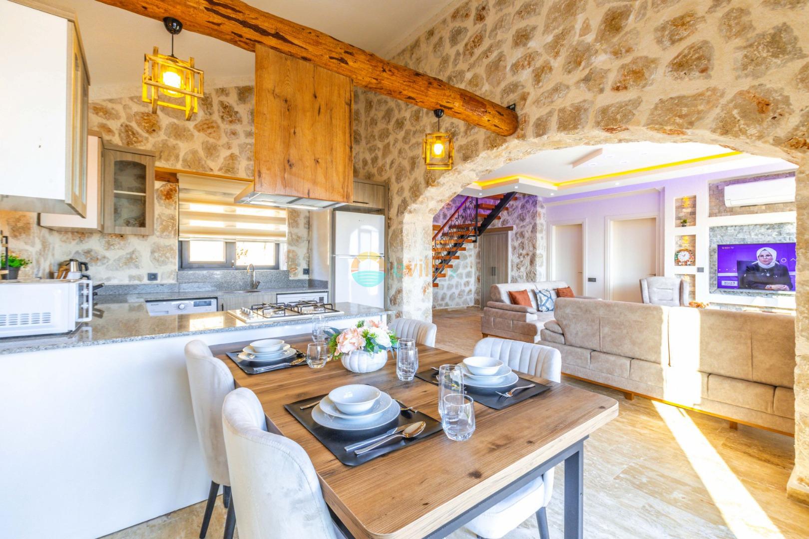 Unsere Mietvilla in der Natur im Çavdır-Gebiet von Kalkan bietet Ihnen einen ruhigen Urlaub, begleitet von Kalkans üppiger Natur und Vogelgezwitscher. Unsere preiswerte Mietvilla mit 2 Schlafzimmern bietet Platz für 4 Personen. Unsere Mietvilla mit geschütztem Pool eignet sich für konservative Familien und Flitterwochenpaare. Unsere Mietvilla mit Whirlpool bietet Ihnen einen abgeschiedenen, ruhigen und friedlichen Urlaub und ist äußerst modern und stilvoll gestaltet. Damit Familien mit Babys eine schöne Zeit haben, gibt es in unserer Villa für unsere kleinen Gäste einen Kinderspielplatz. Im Garten unserer im Sommer vermieteten Flitterwochenvilla, die etwa 15 km vom Zentrum von Kalkan und dem Meer entfernt ist, gibt es Tischtennis und Tischfußball.
