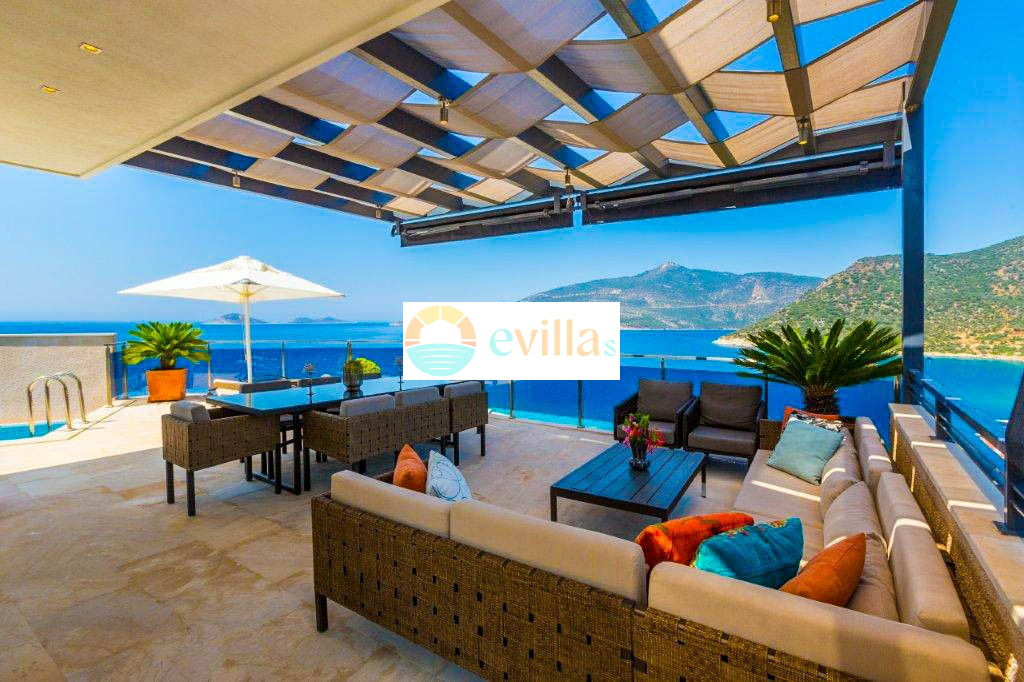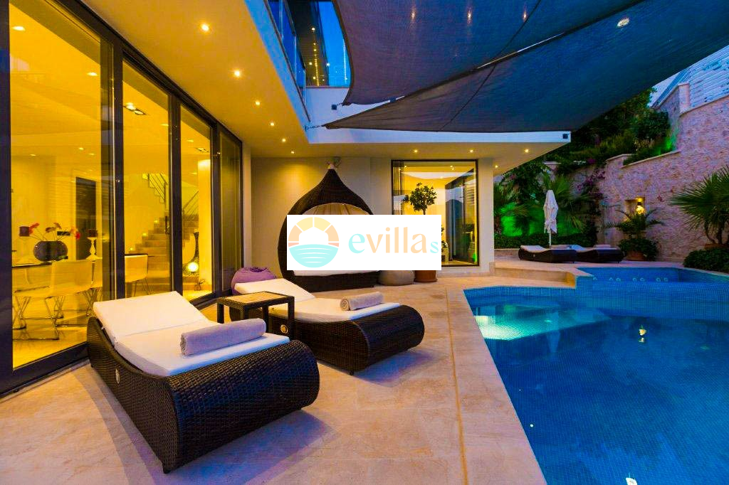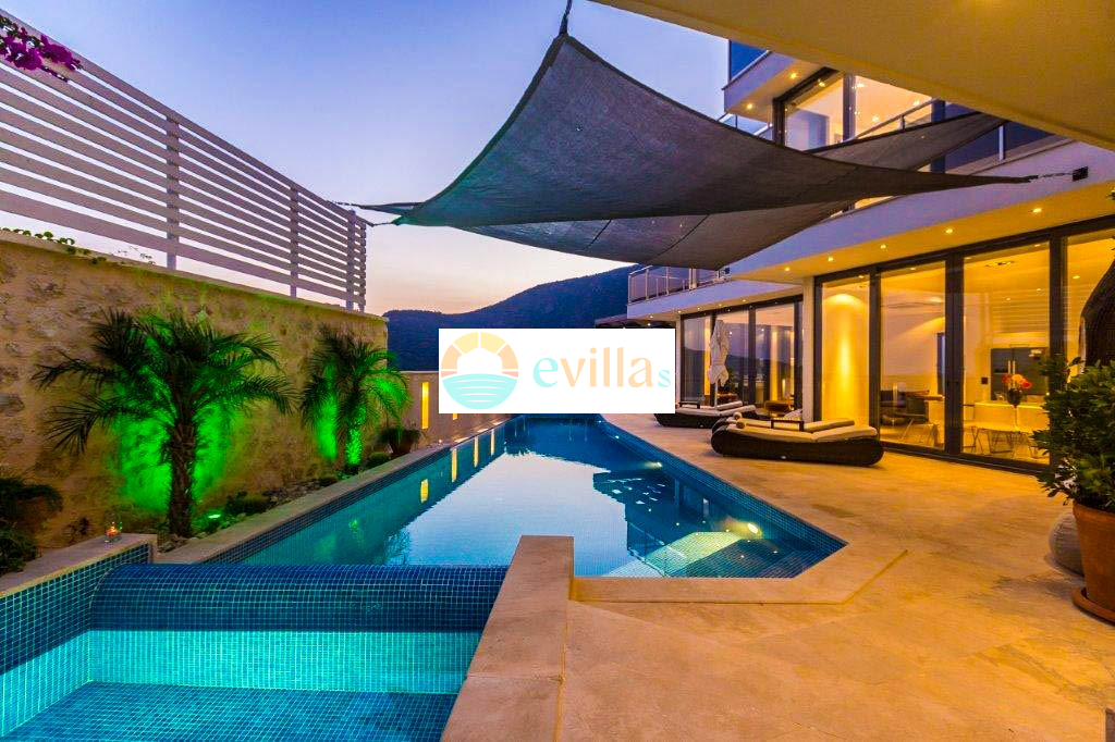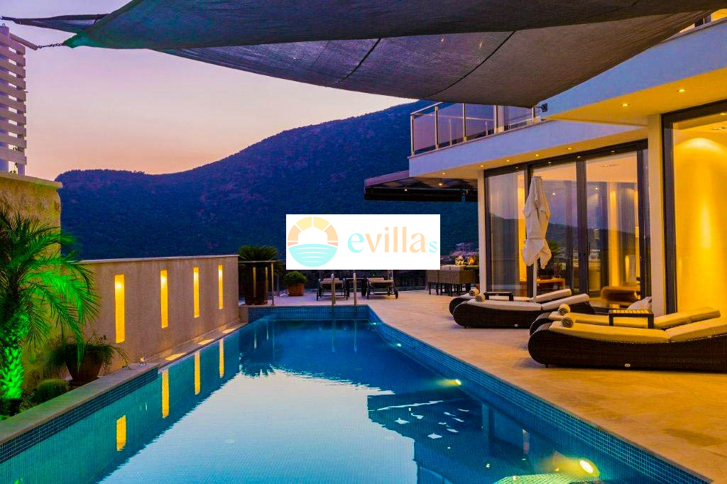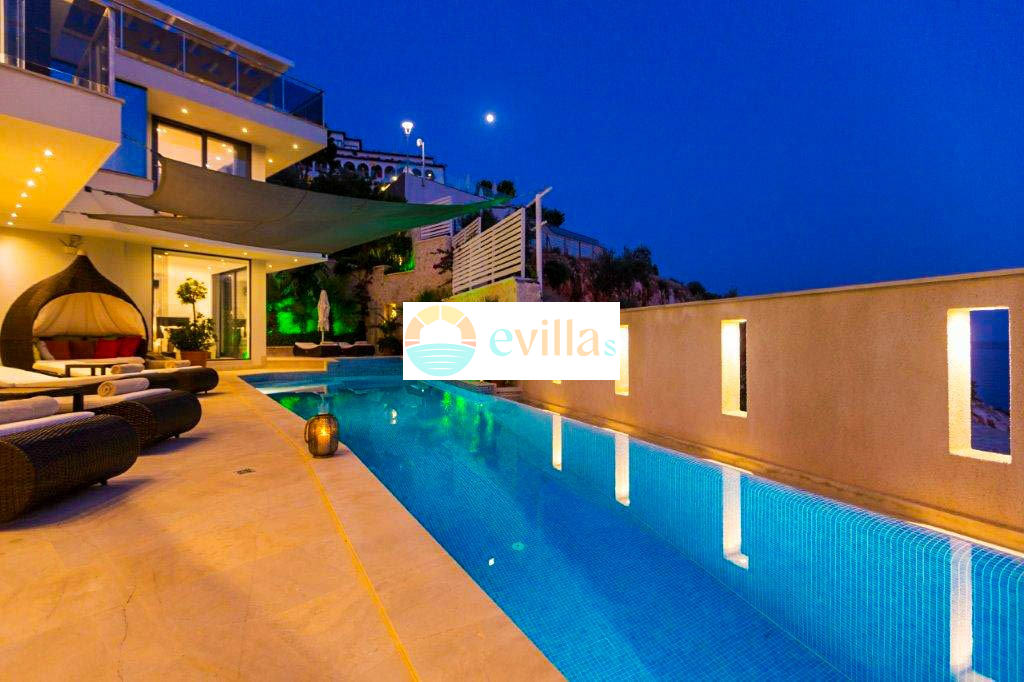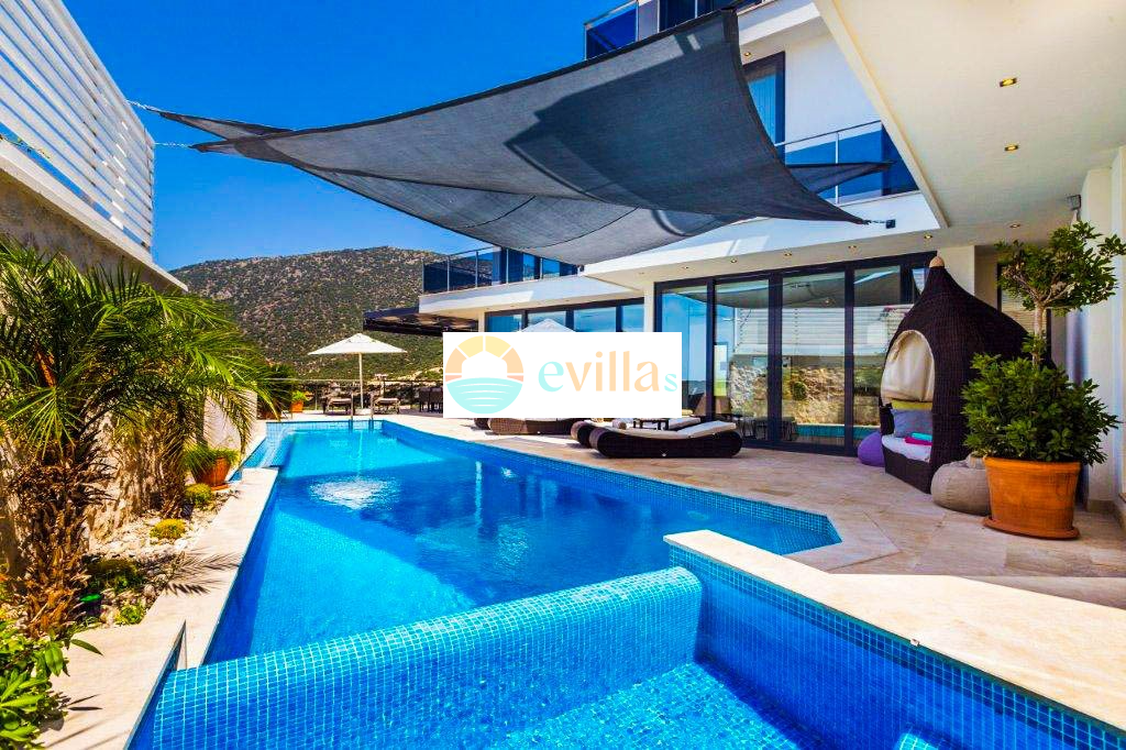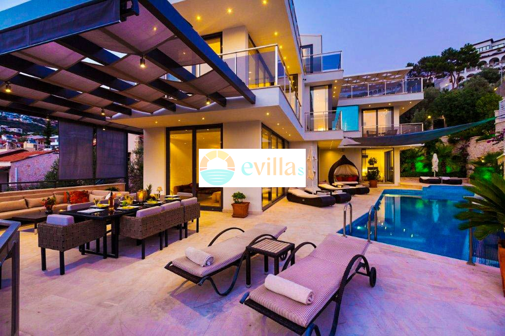 Unsere Villa ist eine Luxusvilla zur Miete in der Region Kalkan Kalamar und 400 Meter vom Meer entfernt. Diese Villa nahe dem Zentrum von Kalkan begleitet mit ihren breiten Fassaden und Nutzungsflächen Kalamars einzigartigen Natur- und Meerblick. Die Lage ist eine ruhige Gegend, umgeben von Luxusvillen. Alle Räume dieser Villa, in denen Sie die Ruhe der Natur und die Ruhe des Meeres spüren können, verfügen über einen herrlichen Meerblick von ihren Balkonen, Dachterrassen und dem Garten mit privatem Pool. Unsere Villa wurde sorgfältig für große Familien und Gruppen von Freunden konzipiert, mit 5 Suite-Schlafzimmern und einer Kapazität von 10 Personen. Auf der Dachterrasse unserer Villa gibt es einen Außenwhirlpool zum Entspannen sowie einen Billardtisch, Darts und Sportmöglichkeiten Ausrüstung, um eine gute Zeit zu haben. Mit seinem 70 Quadratmeter großen privaten Pool bietet es ein einzigartiges Erlebnis für Ihren Urlaub. Im Erdgeschoss der Villa gibt es eine amerikanische Küche, ein Wohnzimmer und ein Suite-Schlafzimmer. Im Obergeschoss befinden sich vier Suite-Schlafzimmer und eine Dachterrasse mit einzigartigem Blick auf Kalkan.