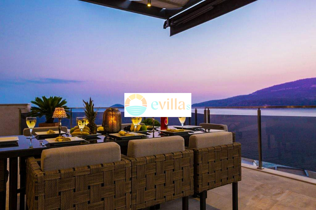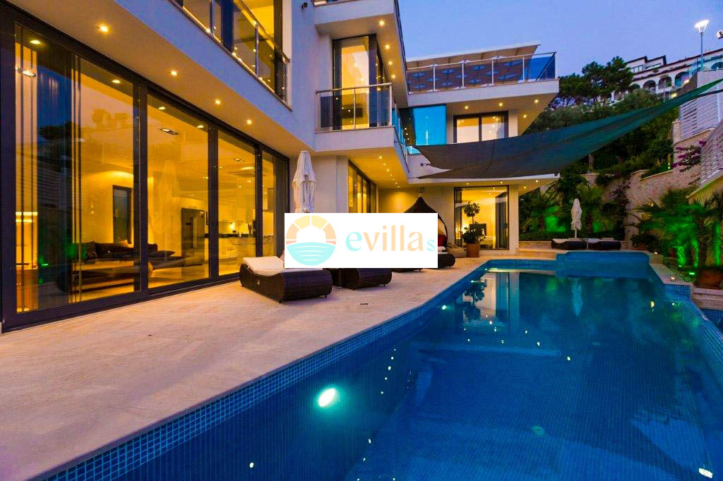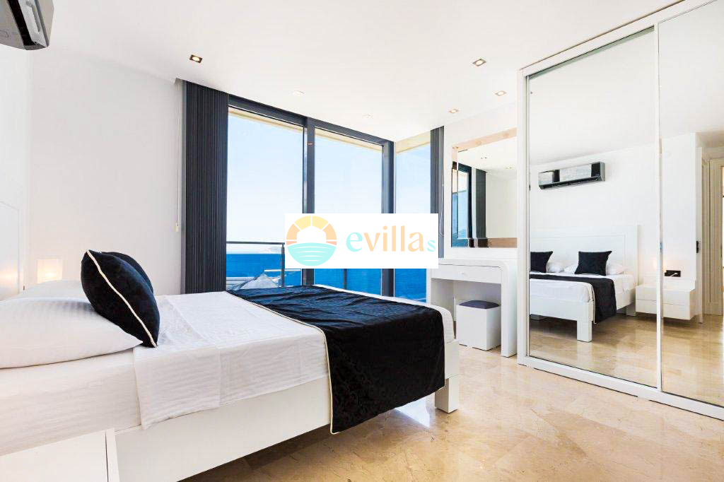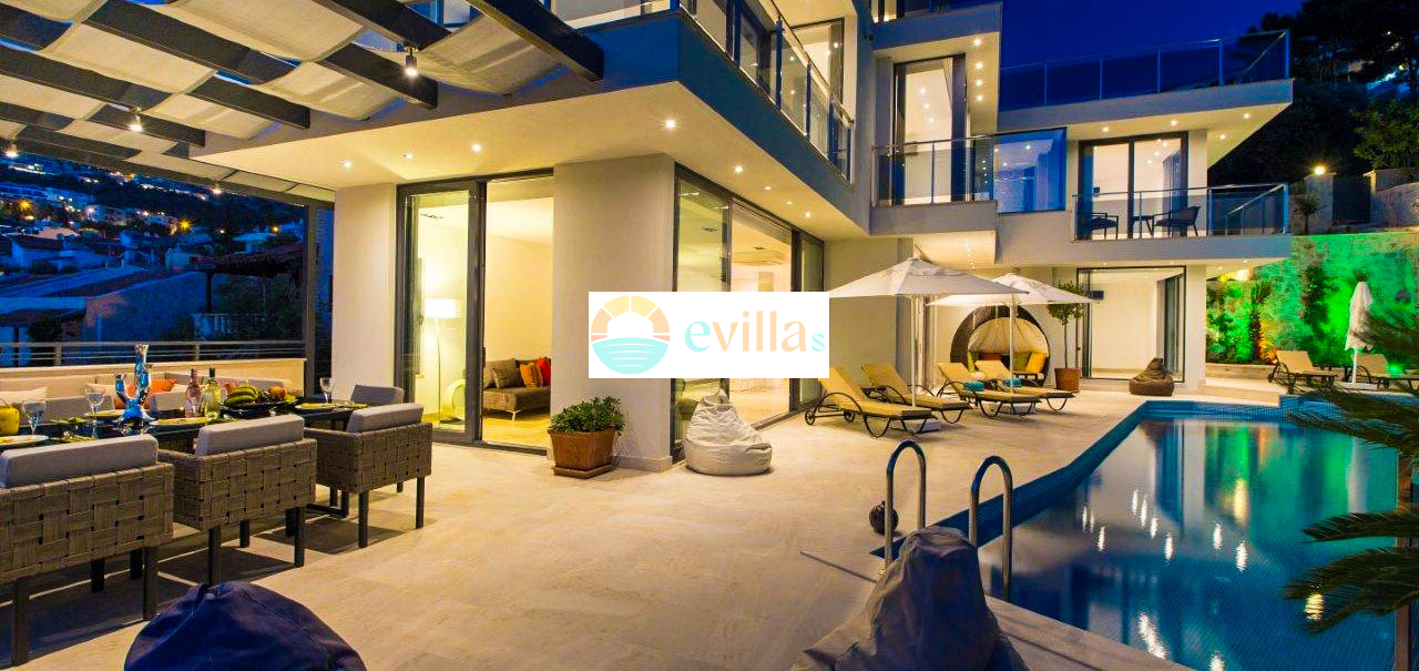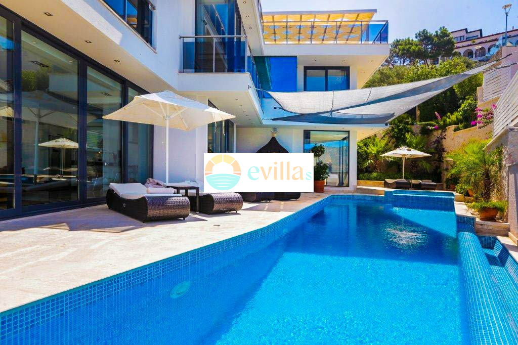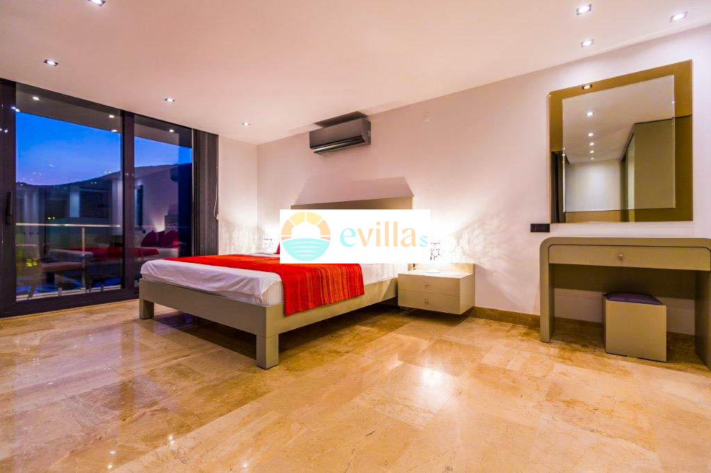 Unsere Villa ist eine Luxusvilla zur Miete in der Region Kalkan Kalamar und 400 Meter vom Meer entfernt. Diese Villa nahe dem Zentrum von Kalkan begleitet mit ihren breiten Fassaden und Nutzungsflächen Kalamars einzigartigen Natur- und Meerblick. Die Lage ist eine ruhige Gegend, umgeben von Luxusvillen. Alle Räume dieser Villa, in denen Sie die Ruhe der Natur und die Ruhe des Meeres spüren können, verfügen über einen herrlichen Meerblick von ihren Balkonen, Dachterrassen und dem Garten mit privatem Pool. Unsere Villa wurde sorgfältig für große Familien und Gruppen von Freunden konzipiert, mit 5 Suite-Schlafzimmern und einer Kapazität von 10 Personen. Auf der Dachterrasse unserer Villa gibt es einen Außenwhirlpool zum Entspannen sowie einen Billardtisch, Darts und Sportmöglichkeiten Ausrüstung, um eine gute Zeit zu haben. Mit seinem 70 Quadratmeter großen privaten Pool bietet es ein einzigartiges Erlebnis für Ihren Urlaub. Im Erdgeschoss der Villa gibt es eine amerikanische Küche, ein Wohnzimmer und ein Suite-Schlafzimmer. Im Obergeschoss befinden sich vier Suite-Schlafzimmer und eine Dachterrasse mit einzigartigem Blick auf Kalkan.