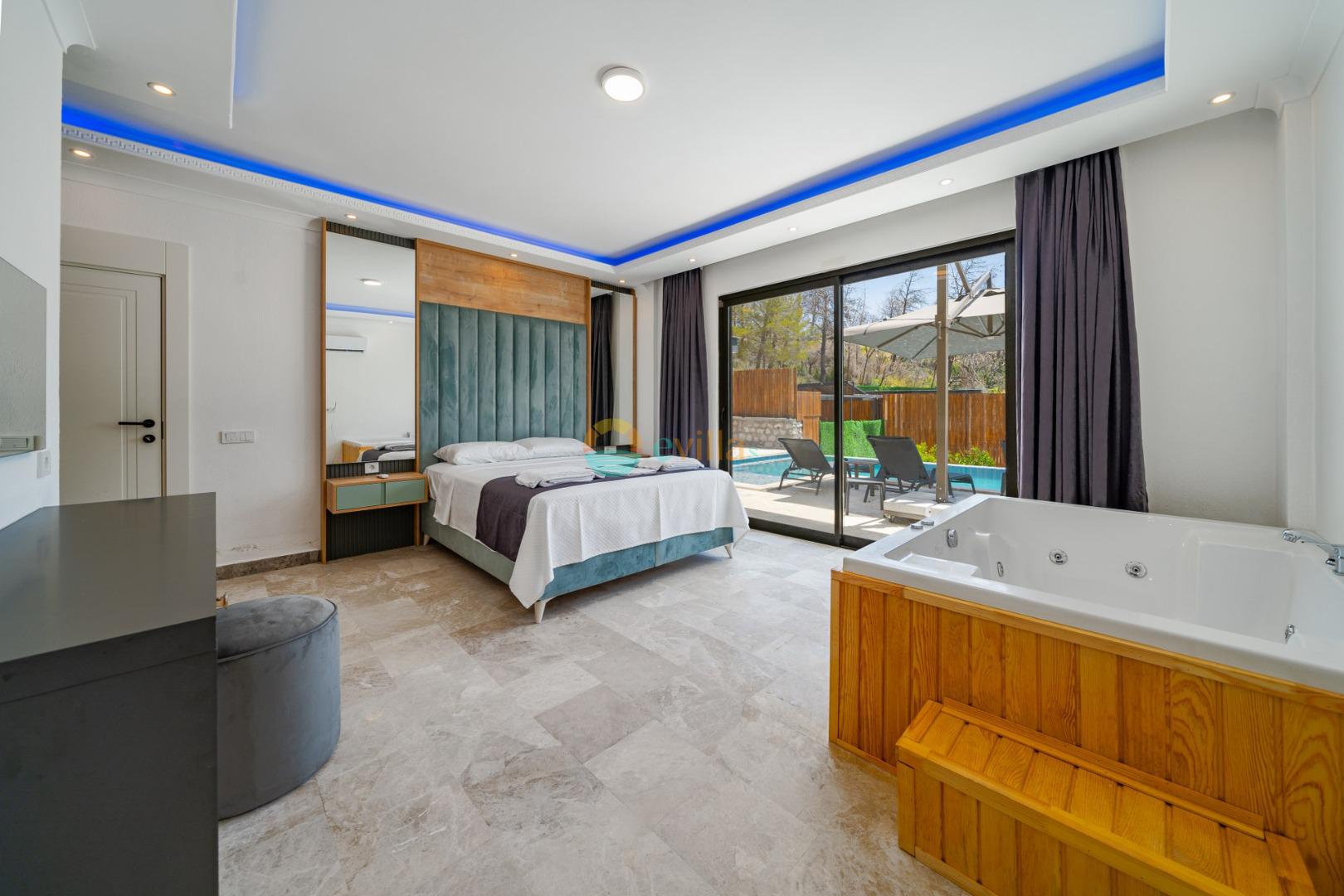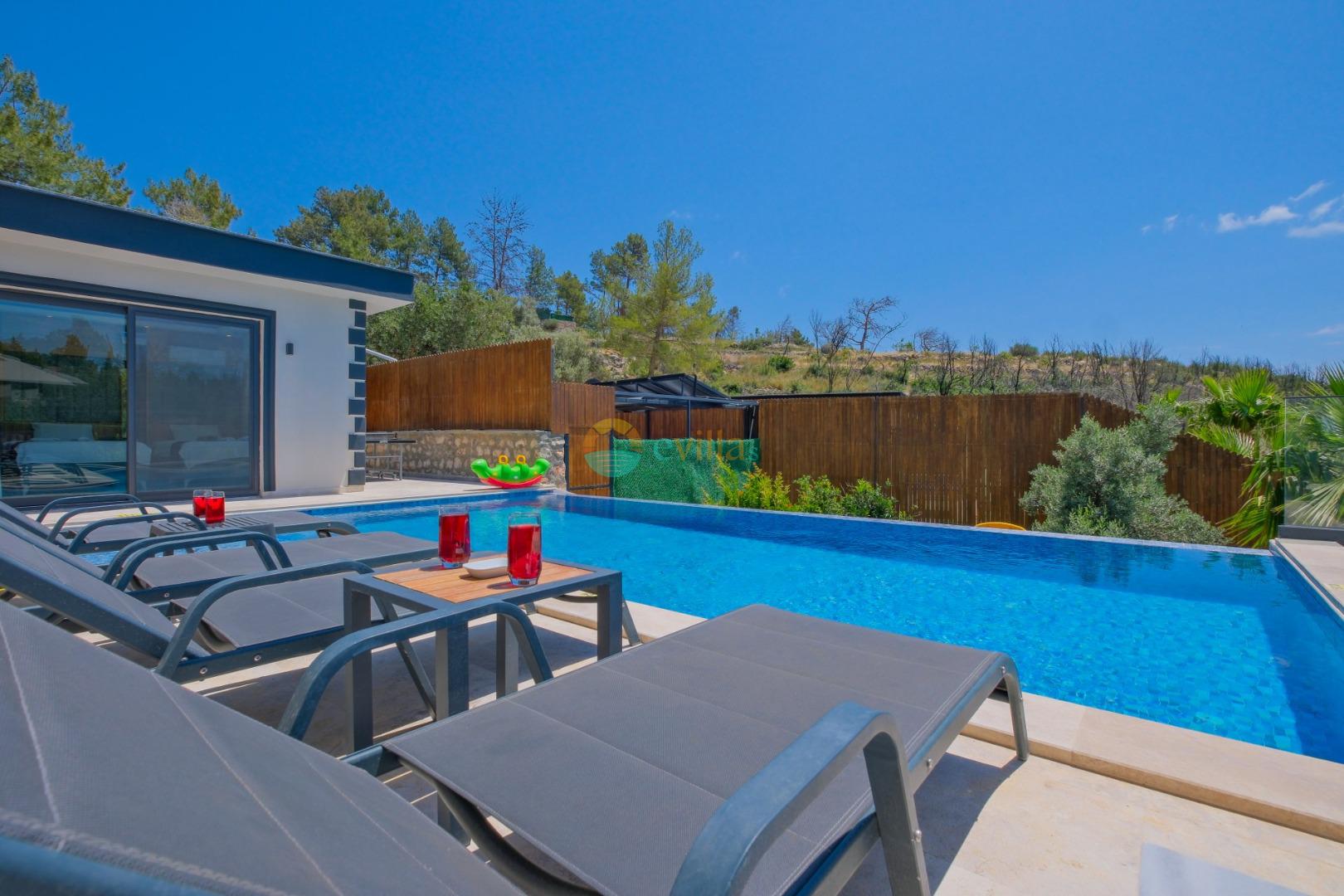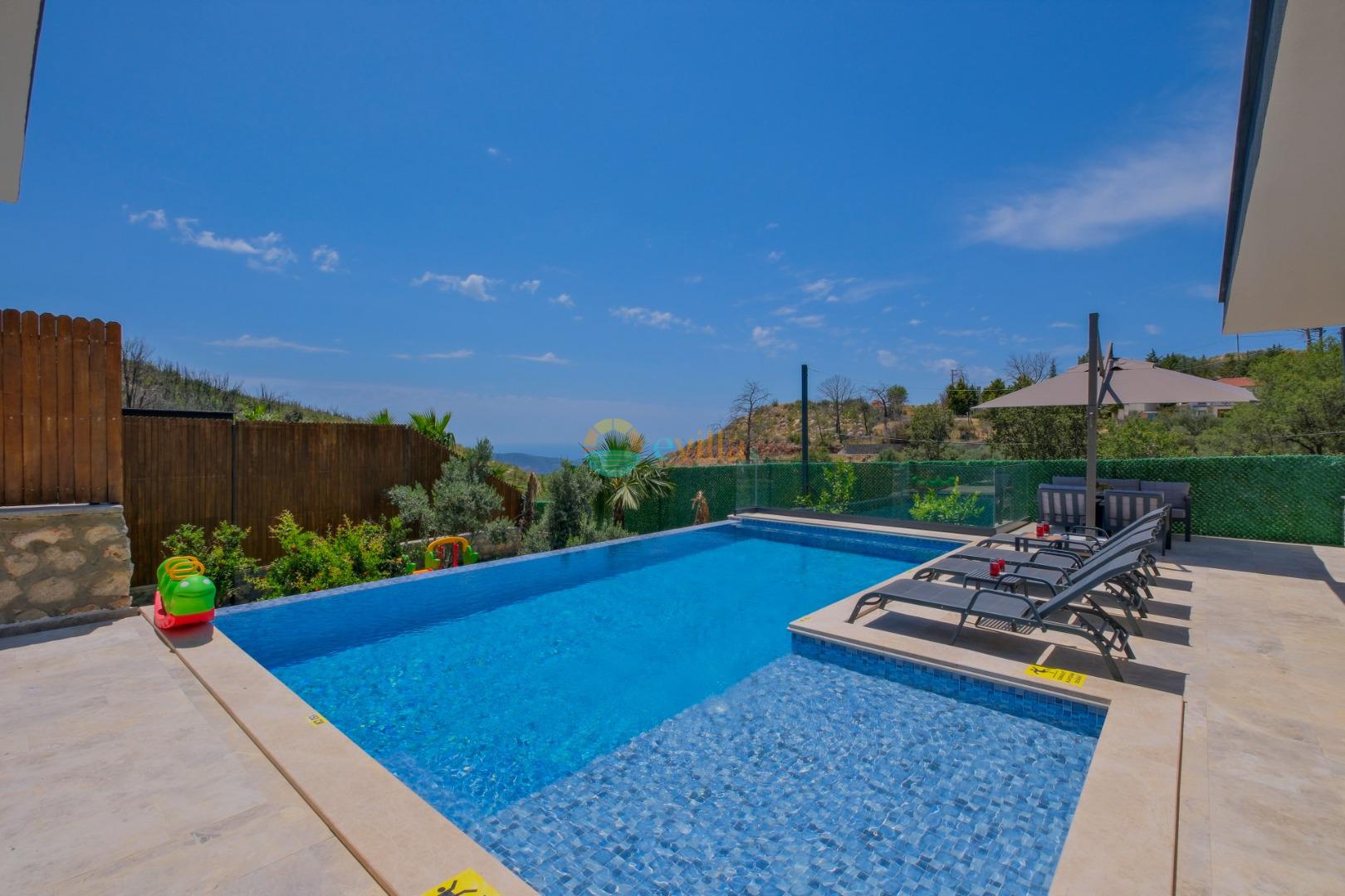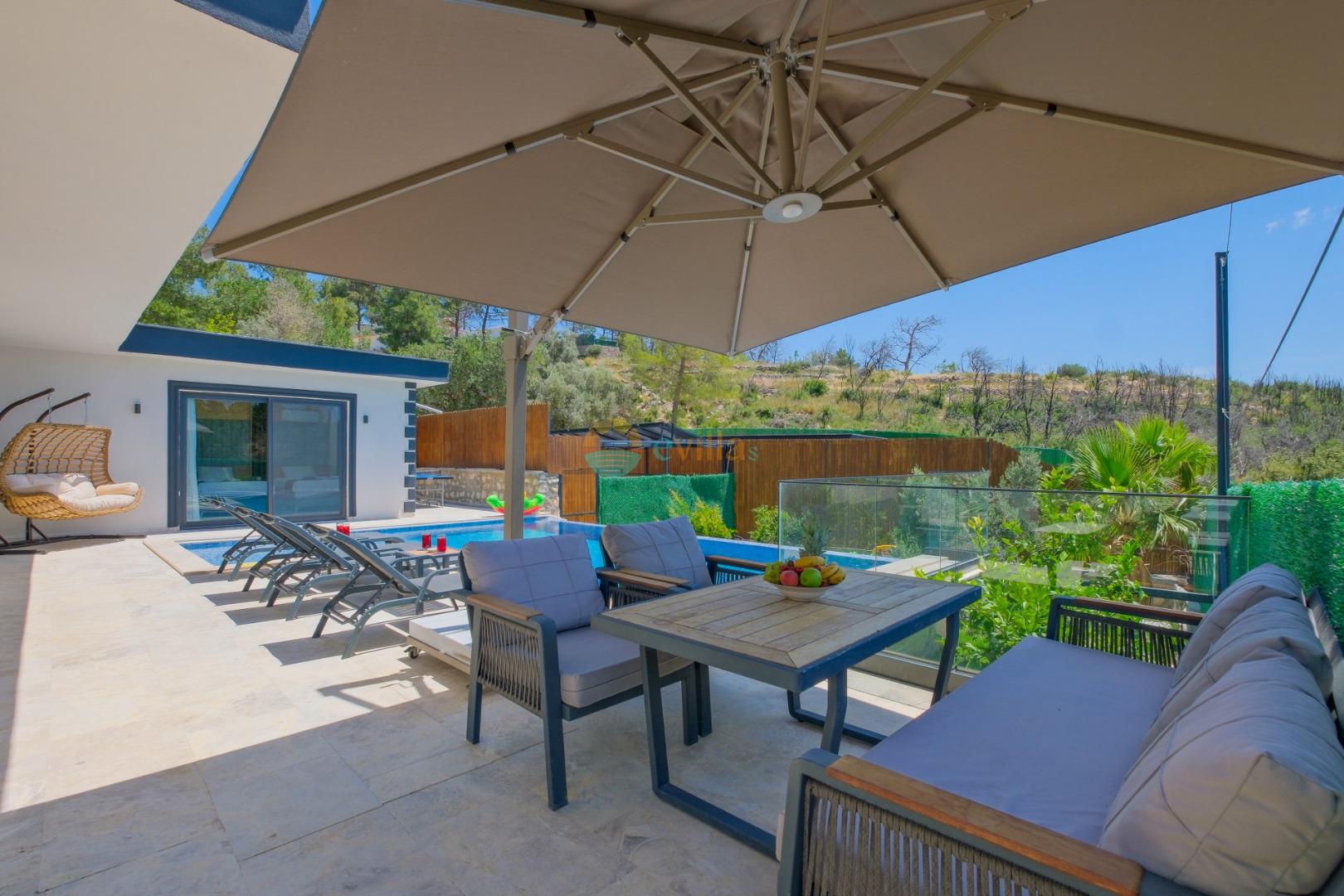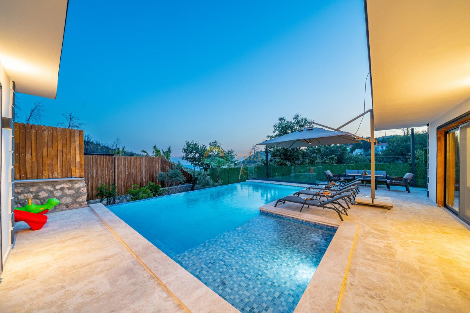 Es handelt sich um eine Honeymoon- und Ferienvilla, die sich in Üzümlü bei Kalkan inmitten der Natur befindet.