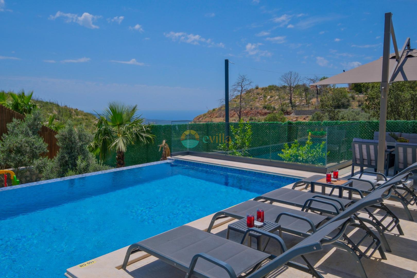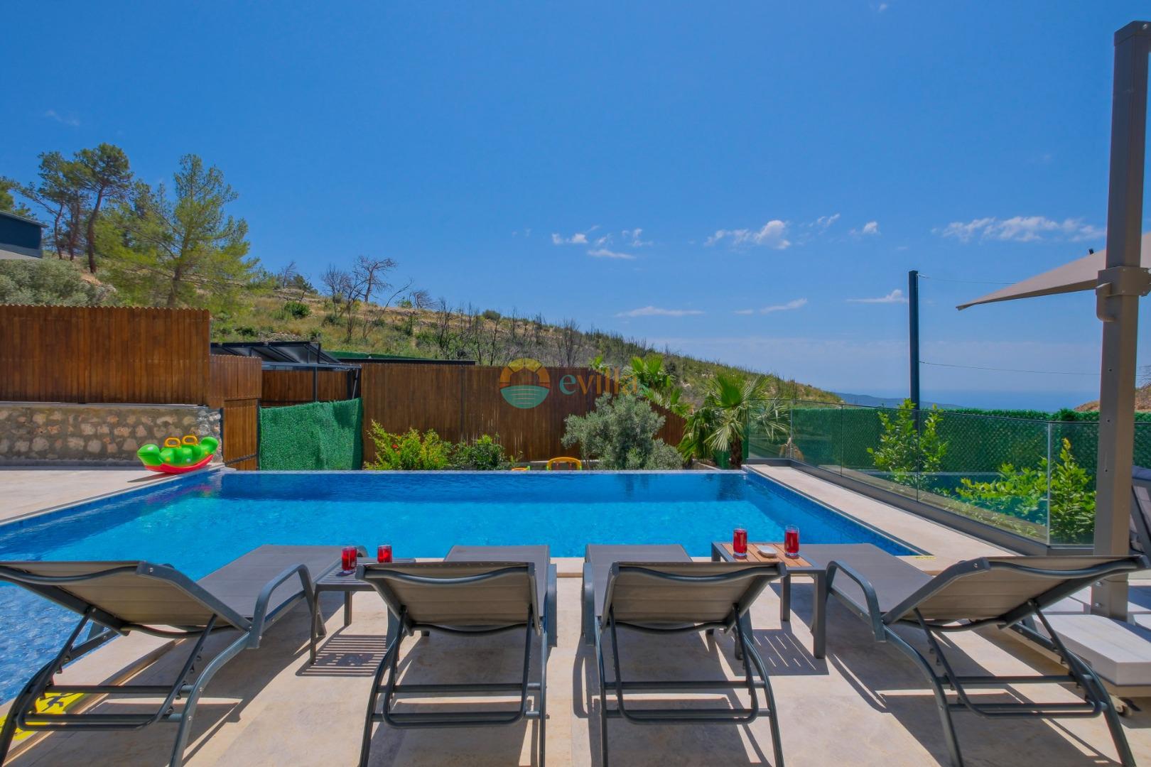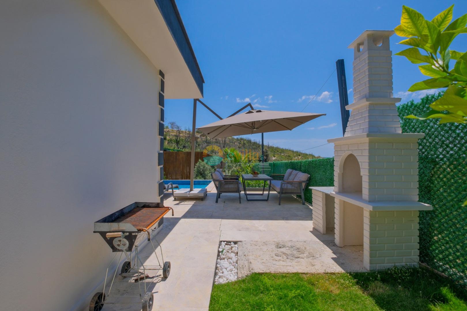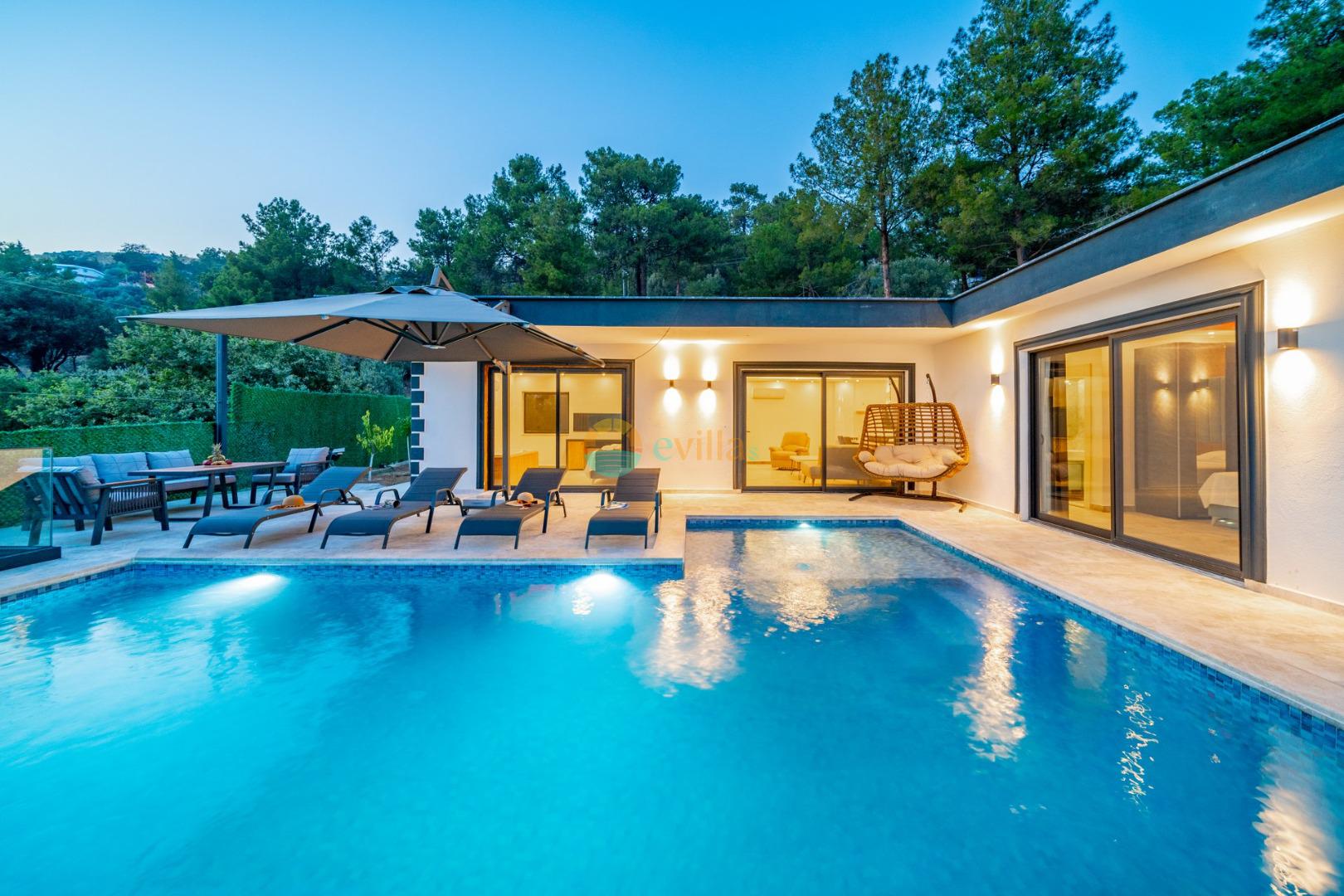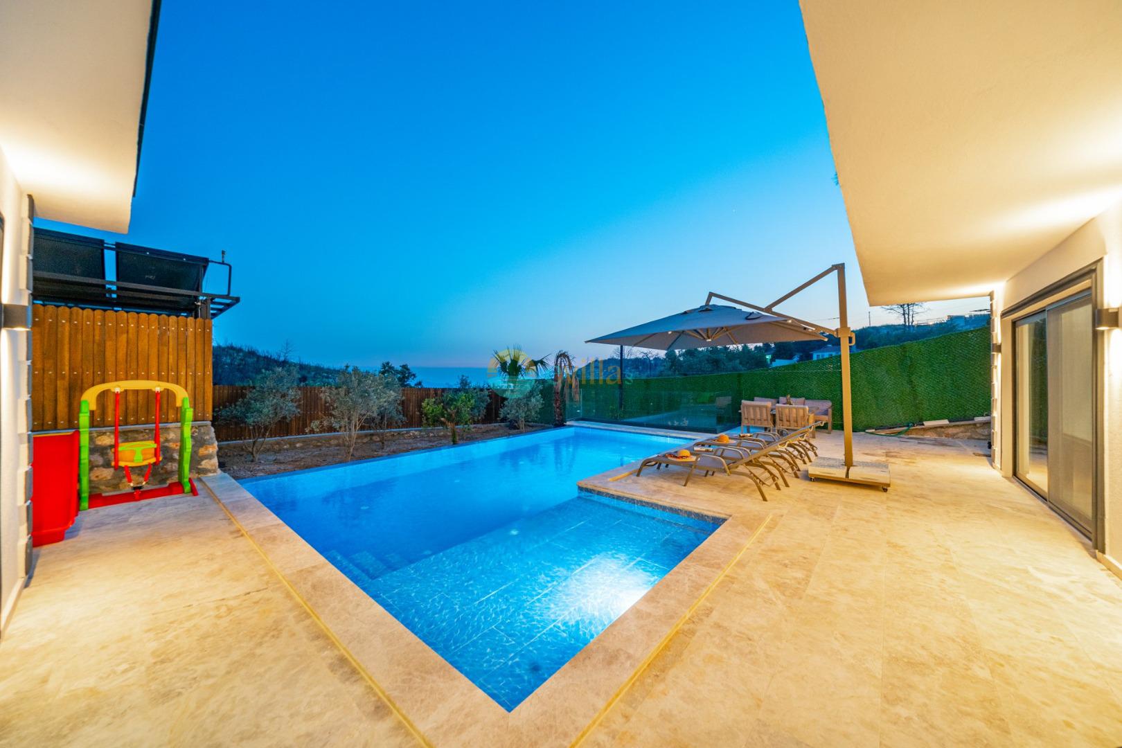 Es handelt sich um eine Honeymoon- und Ferienvilla, die sich in Üzümlü bei Kalkan inmitten der Natur befindet.