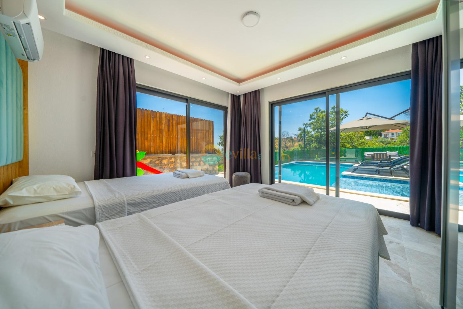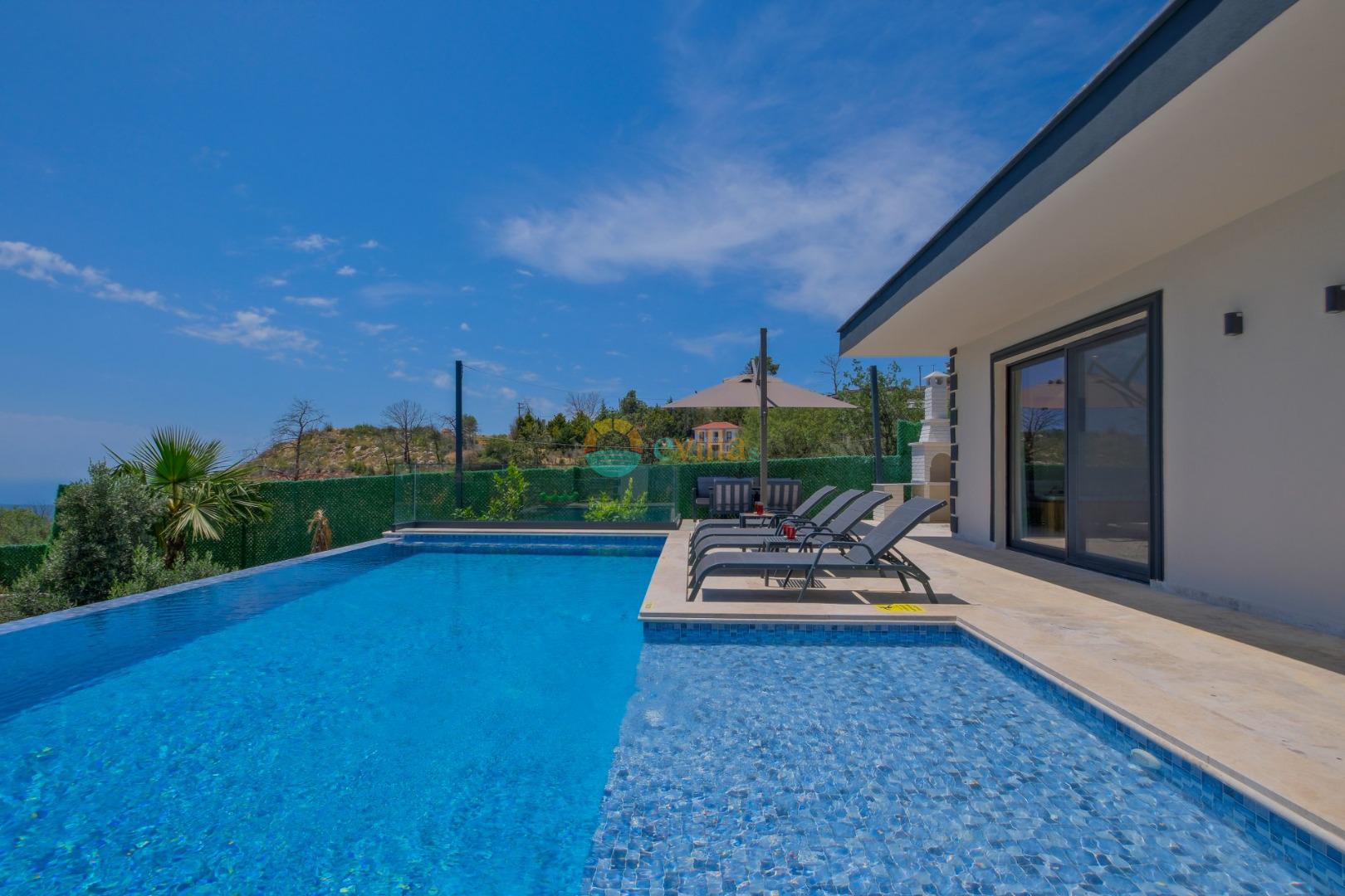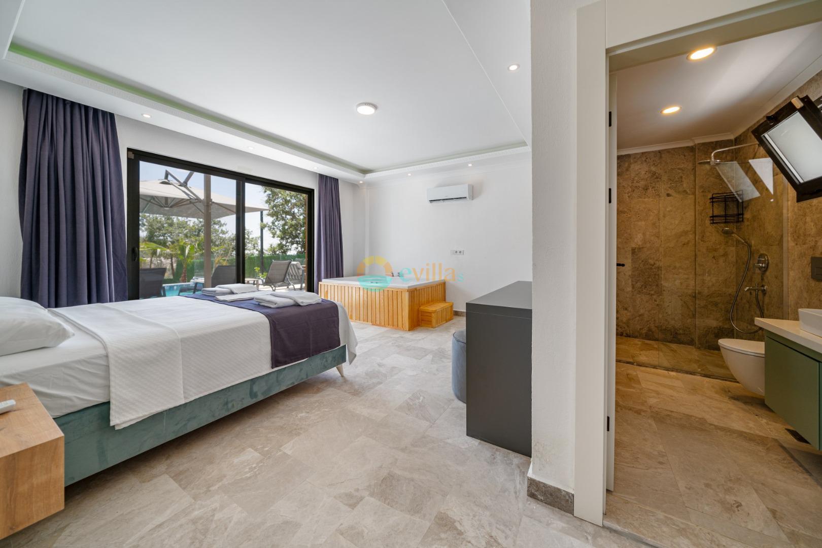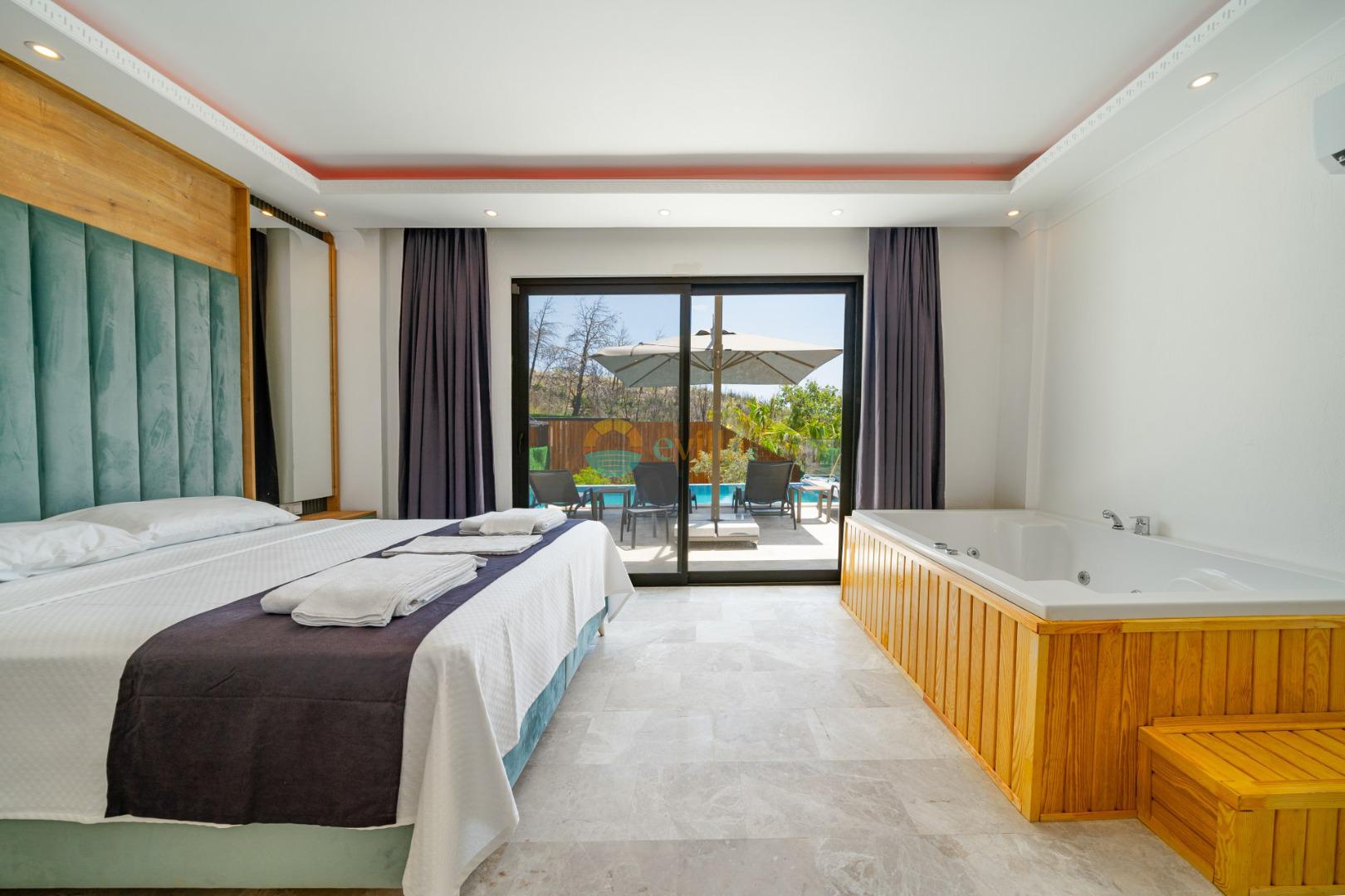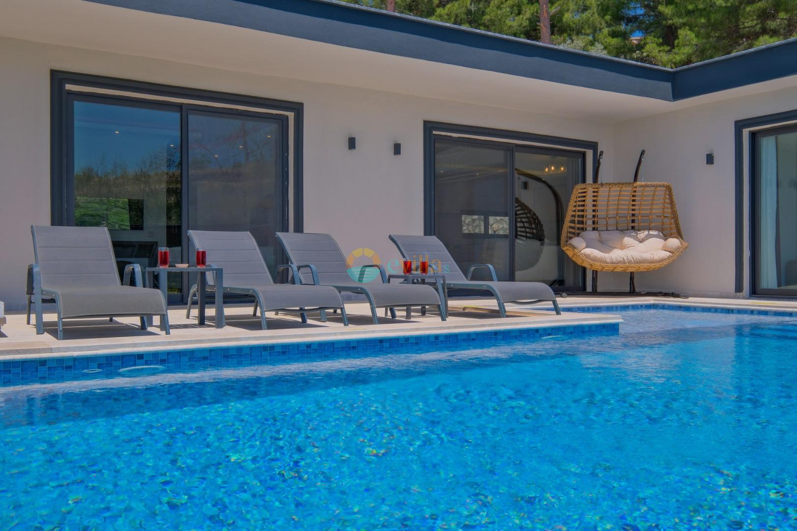 Es handelt sich um eine Honeymoon- und Ferienvilla, die sich in Üzümlü bei Kalkan inmitten der Natur befindet.