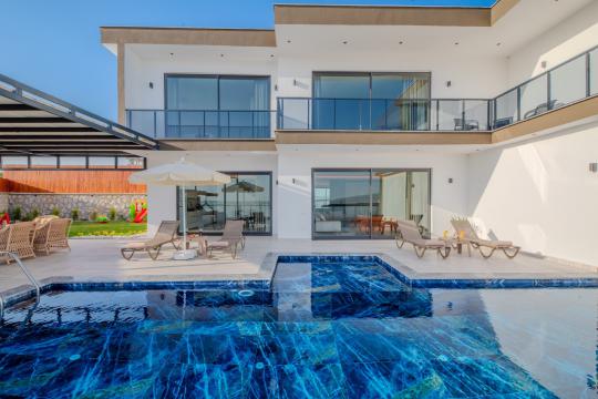 Diese konservative Ferienvilla mit Whirlpool und Sauna liegt in Çavdır, Antalya Kalkan und bietet eine komfortable Unterkunft mit 2 Schlafzimmern und einer Kapazität von 5 Personen. Die Villa bietet eine friedliche Atmosphäre inmitten der Natur und verspricht mit ihrem privaten Pool und modernem Innendesign ein luxuriöses Urlaubserlebnis. Das erste Schlafzimmer verfügt über ein Doppelbett, ein eigenes Bad, einen Kleiderschrank und eine Klimaanlage. Das zweite Schlafzimmer verfügt über 1 Doppelbett und 1 Einzelbett, ein eigenes Bad, einen Kleiderschrank und eine Klimaanlage. Der Whirlpool und die Sauna im Inneren der Villa sind ideale Bereiche für Urlauber zum Entspannen und Erholen. Die Villa ist nach einem konservativen Konzept gestaltet und bietet einen privaten Raum. Es bietet auch einfachen Zugang zu den Stränden und dem Zentrum von Kalkan. Mit diesen Eigenschaften kann diese Ferienvilla mit Whirlpool und Sauna in Çavdır eine ideale Option für diejenigen sein, die einen unvergesslichen Urlaub in Kalkan verbringen möchten.