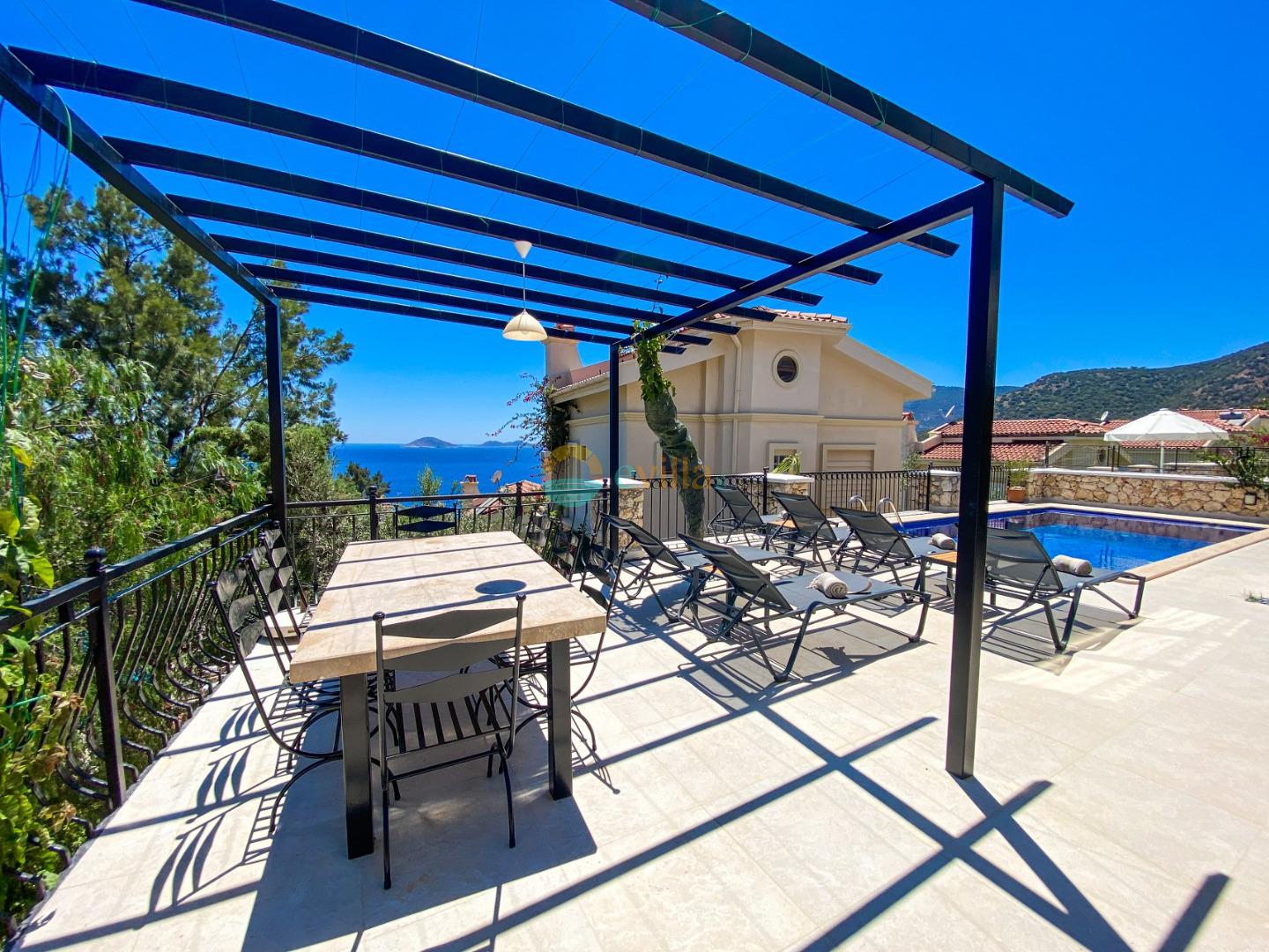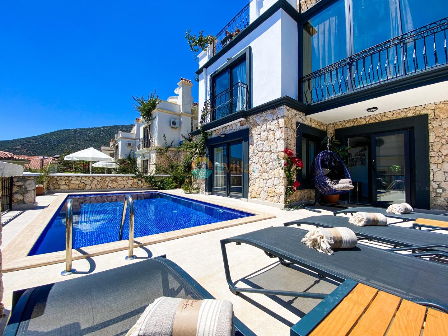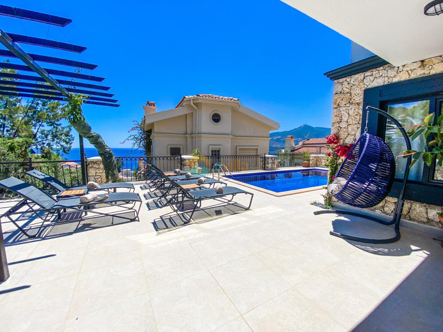 Unsere Villa befindet sich in der Region Kalkan Kalamar und verfügt über einen einzigartigen Meerblick, 3 Schlafzimmer und Unterkunftsmöglichkeiten für 6 Personen. Von allen Zimmern aus können Sie den Meerblick genießen. Im Garten unserer Villa befinden sich ein Pool und eine Gartensitzgruppe für den Komfort unserer Gäste. Unsere moderne und voll ausgestattete Villa bietet unseren Gästen den perfekten Rahmen für einen angenehmen Urlaub.