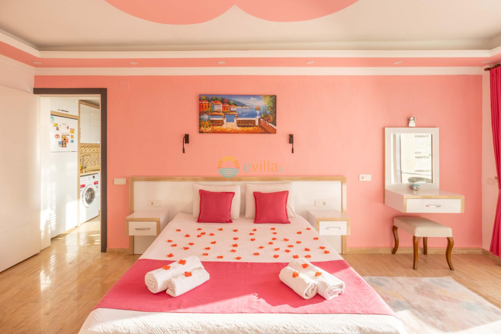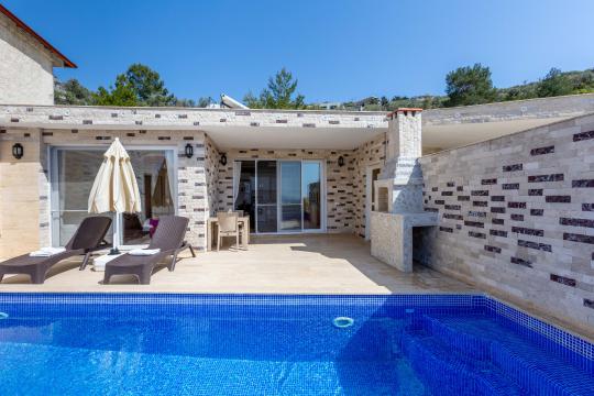 Unsere Villa befindet sich in Akbel Mevkii, nahe dem Zentrum von Kalkan. Unsere Villa mit einem Schlafzimmer bietet Platz für 2 Personen. Sie wurde als Flitterwochenvilla konzipiert und verfügt über einen Whirlpool im Schlafzimmer mit Doppelbett. Für konservative Paare sind der private Swimmingpool und die Poolterrasse geschützt. Direkt neben unserer Villa haben wir Villen mit der gleichen Ausstattung. Es bietet den Vorteil der gemeinsamen Anmietung für diejenigen, die gemeinsam in den Urlaub fahren möchten.