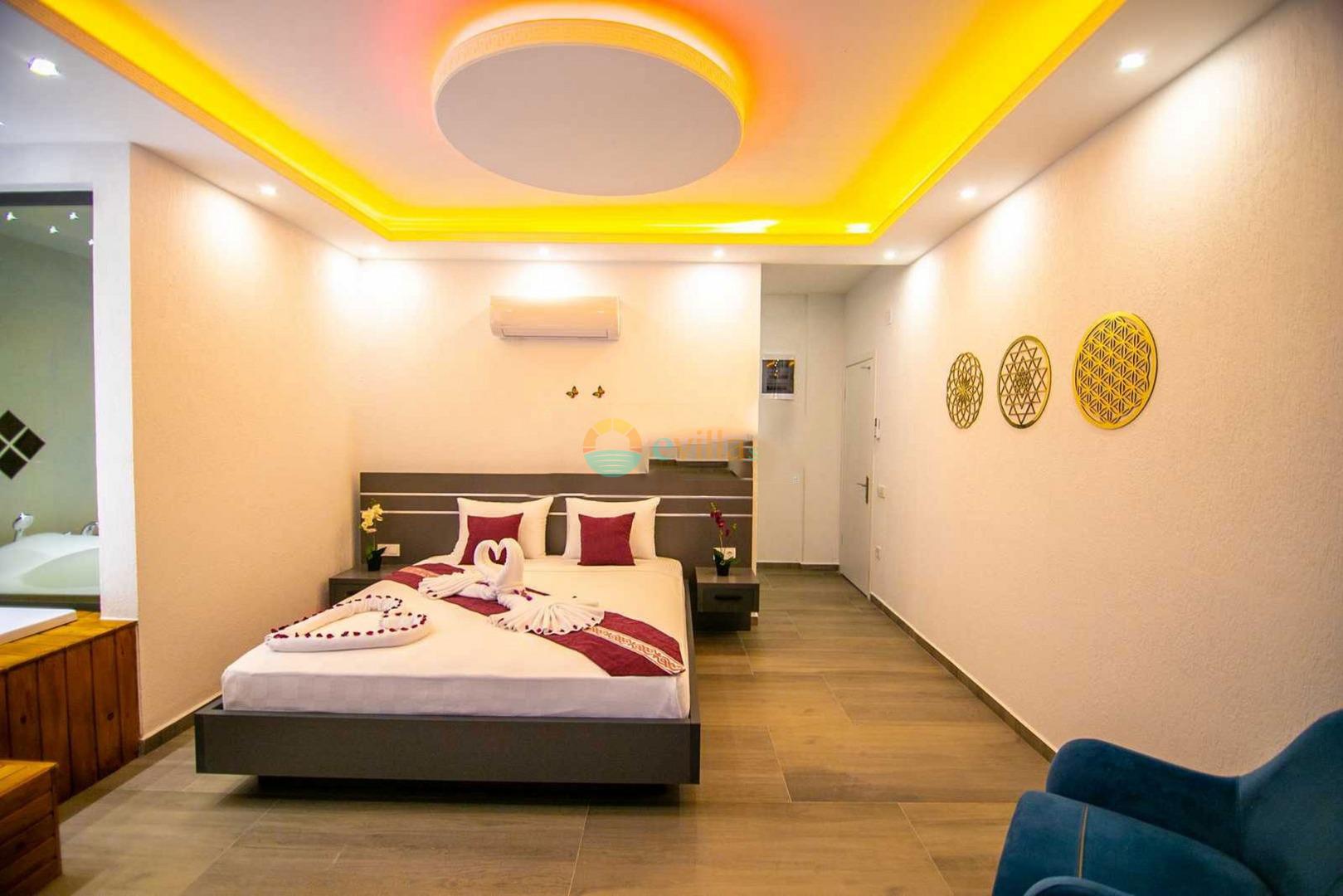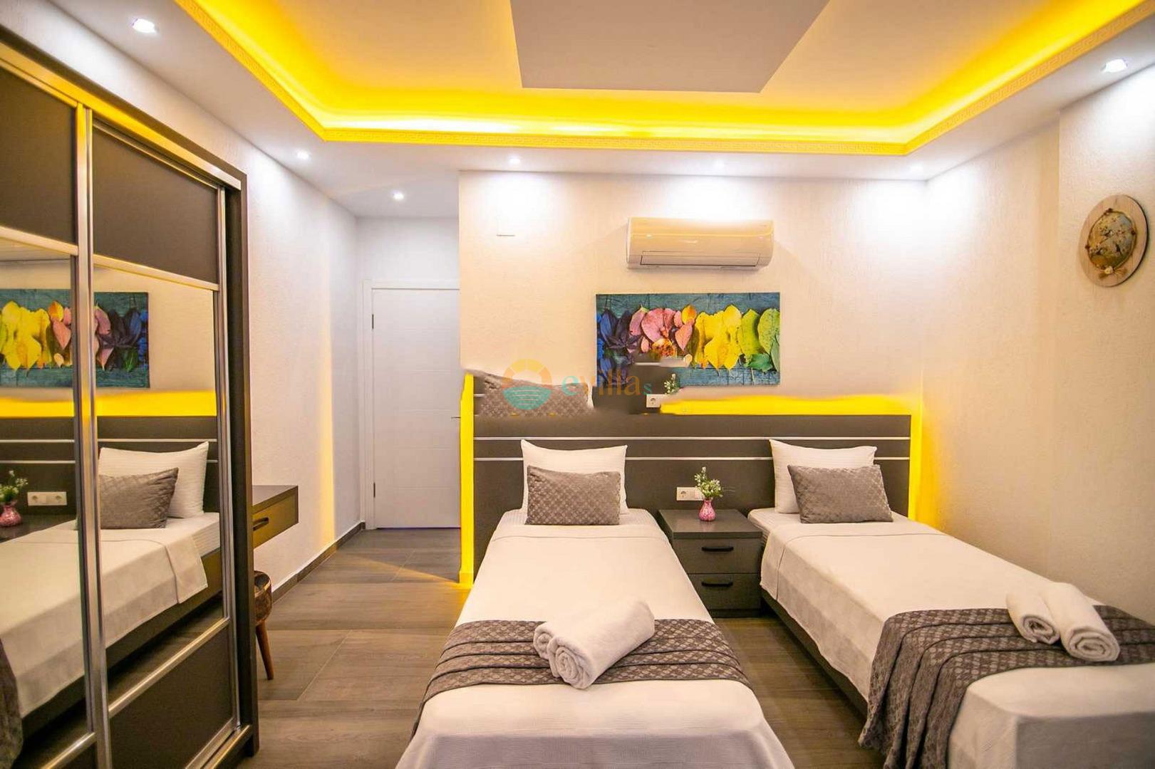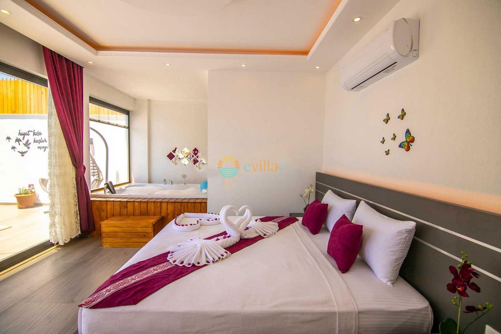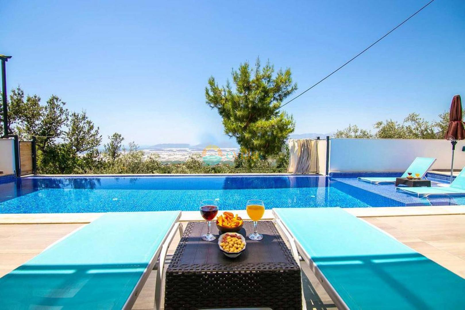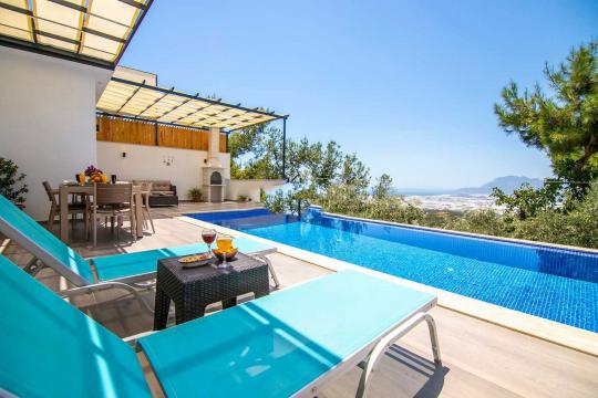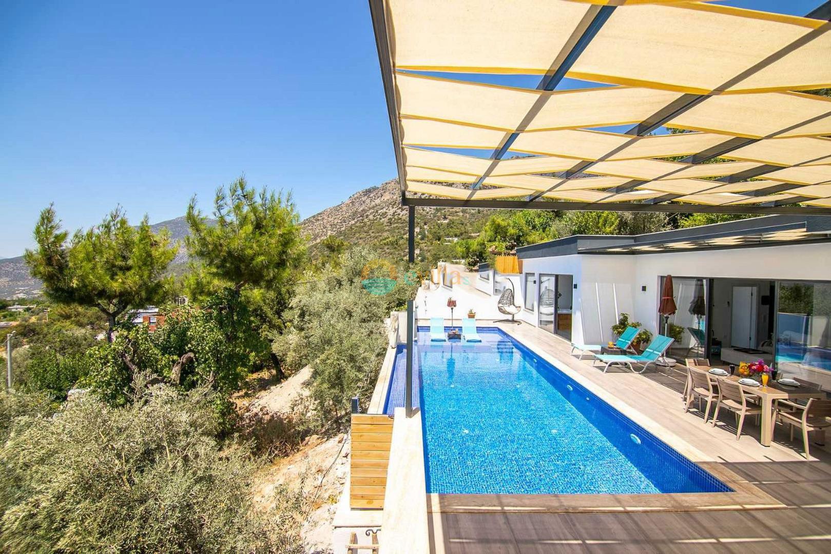 Unsere Villa befindet sich im Dorf Kalkan Üzümlü und ist eine brandneue Villa mit einem vollständig geschützten privaten Pool. Mit seiner Lage inmitten üppiger Natur und dem weiten Blick auf das Meer bietet es eine wunderbare Urlaubsmöglichkeit für konservative Familien und Flitterwochengäste. In unserer Villa mit farbenfroher und stilvoller Inneneinrichtung können Sie dank Kinoraum, Brettspielen (Molipoly, Tell Me, Ludo), Rommé-Spiel, Schach, Spielkarten und Backgammon auch Spaß mit Ihrer Familie haben.