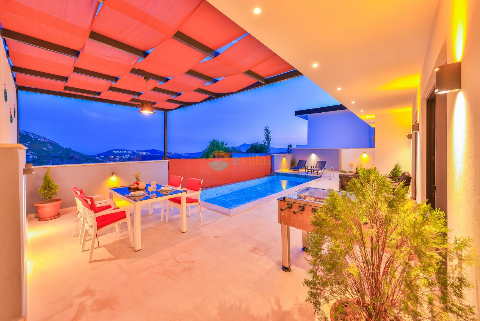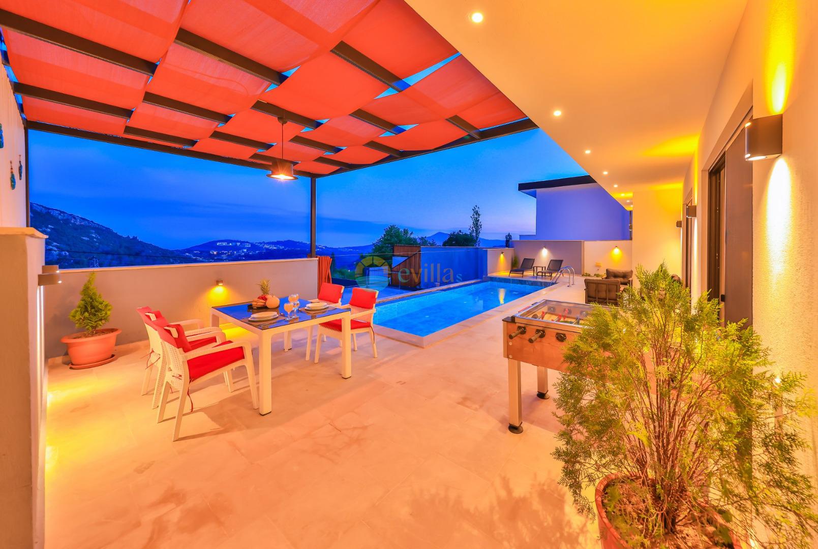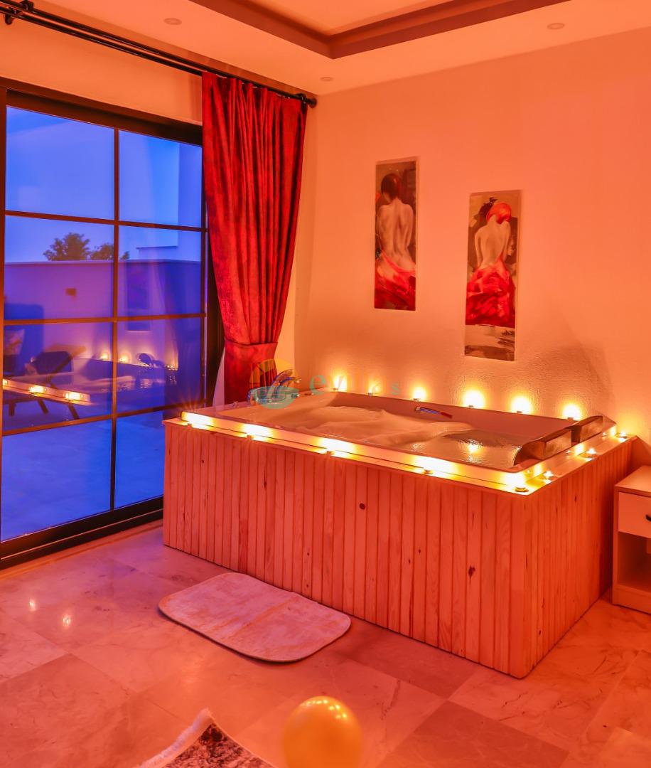 Unsere Villa ist eine konservative Flitterwochen-Ferienvilla mit Blick auf die Natur und einem Whirlpool in der Gegend von Kalkan İslamlar. Unsere ruhig in der Natur gelegene Villa bietet Platz für 2 Personen und eignet sich sehr gut für unsere Flitterwochengäste. In unserer Villa mit herrlichem Naturblick wurde alles mit Liebe zum kleinsten Detail gestaltet, damit unsere Gäste einen ruhigen Urlaub verbringen können. Dank des Tischfußballs in unserer Villa können Sie eine angenehme Zeit verbringen. Es erwartet Sie für einen ruhigen und komfortablen Urlaub.