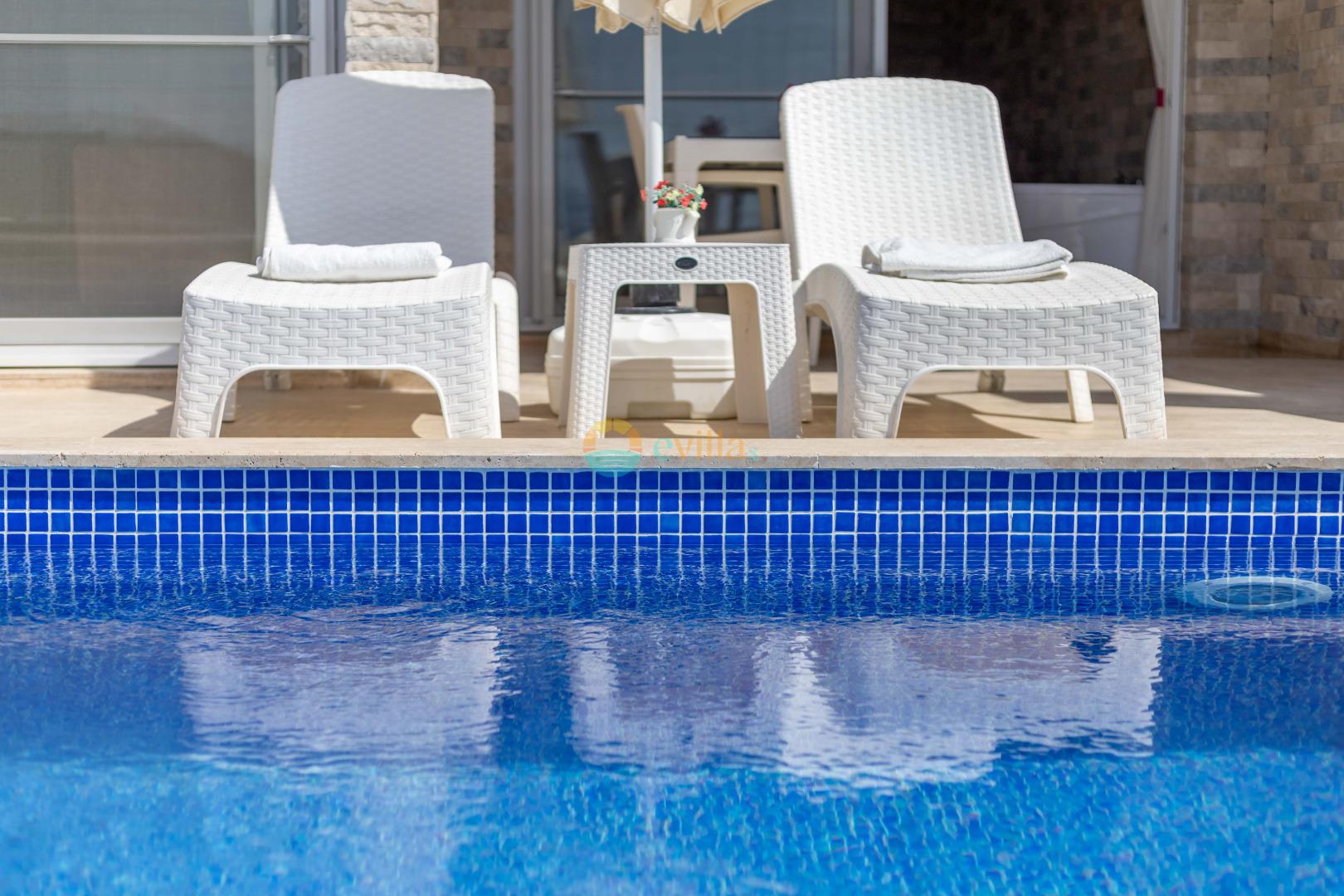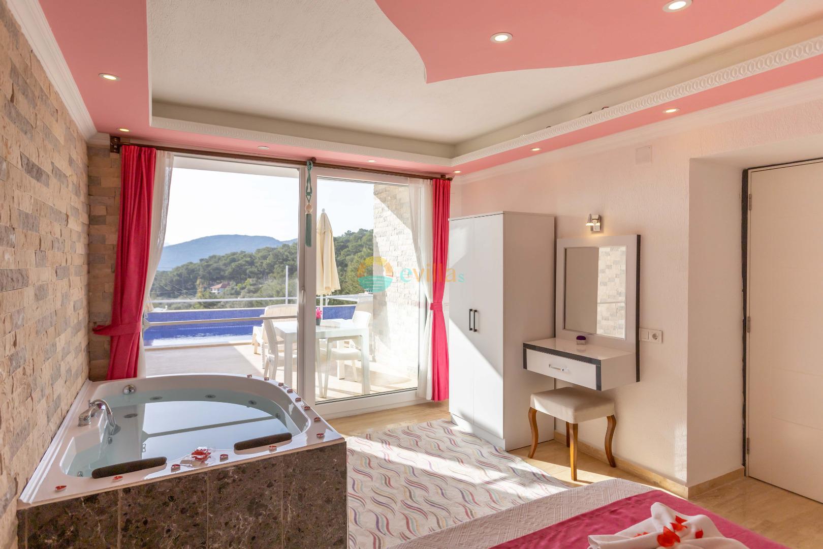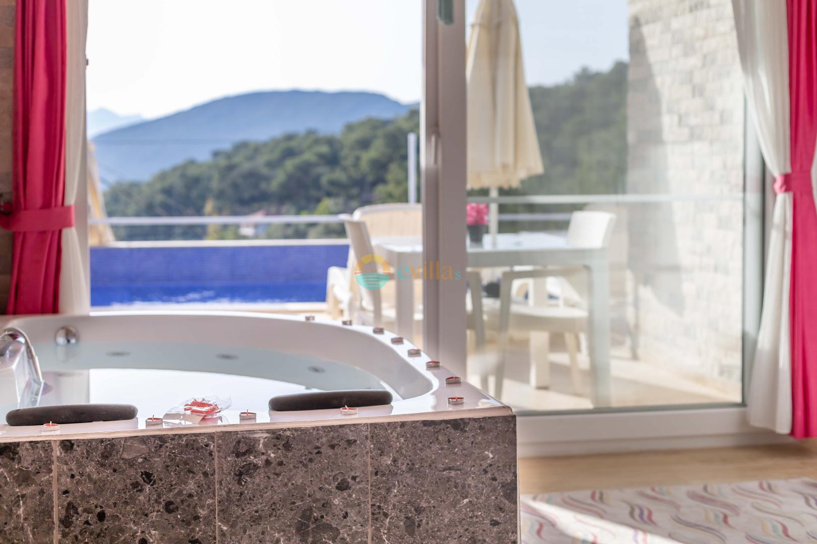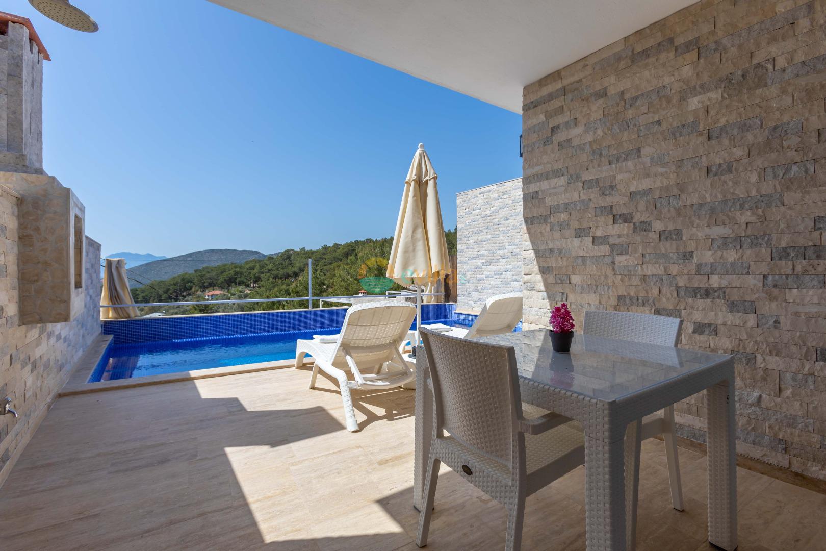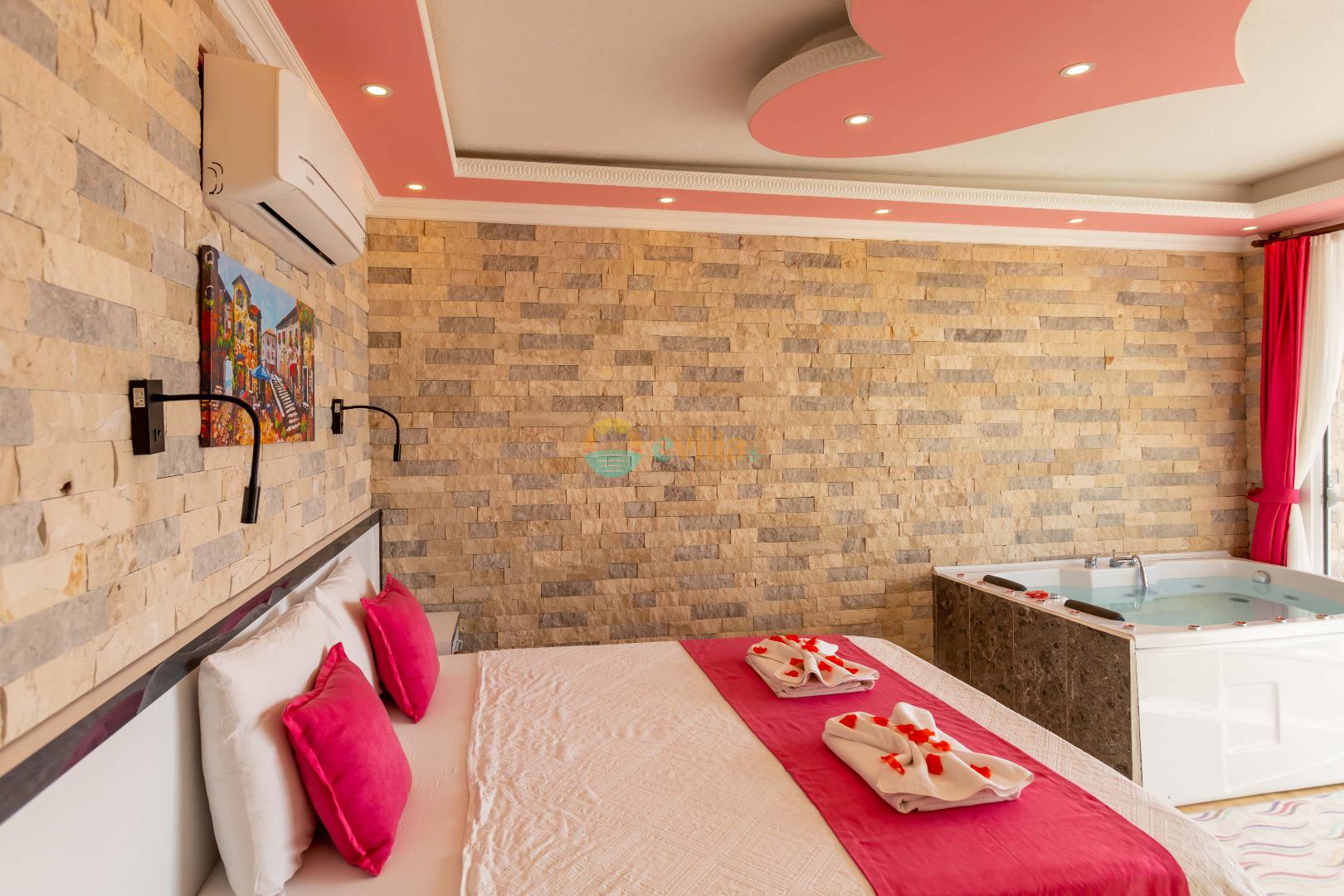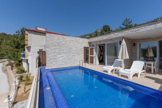 Unsere Villa befindet sich in Akbel Mevkii, nahe dem Zentrum von Kalkan. Unsere Villa mit einem Schlafzimmer bietet Platz für 2 Personen. Sie wurde als Flitterwochenvilla konzipiert und verfügt über einen Whirlpool im Schlafzimmer mit Doppelbett. Für konservative Paare sind der private Swimmingpool und die Poolterrasse geschützt. Direkt neben unserer Villa haben wir Villen mit der gleichen Ausstattung. Es bietet den Vorteil der gemeinsamen Anmietung für diejenigen, die gemeinsam in den Urlaub fahren möchten.
