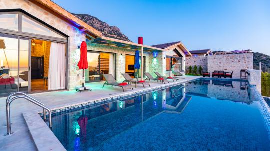 Unsere Villa verfügt über einen großen Gartenbereich im Kördere-Viertel von Antalya Kaş Kalkan. Mit ihren 2 Zimmern, 2 Badezimmern und einer Kapazität für 4 Personen bietet die Sea View Villa unseren geschätzten Gästen mit Whirlpool, Sauna und Türkischem Bad eine gemütliche und komfortable Urlaubsmöglichkeit.