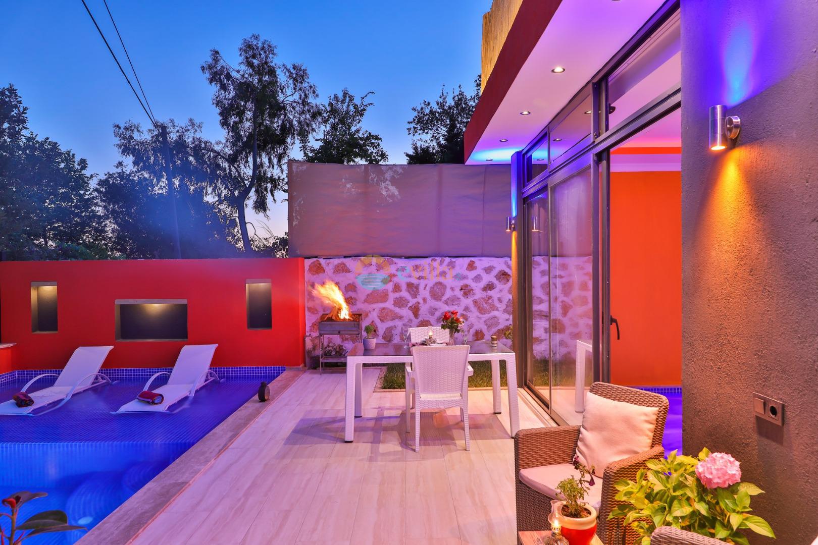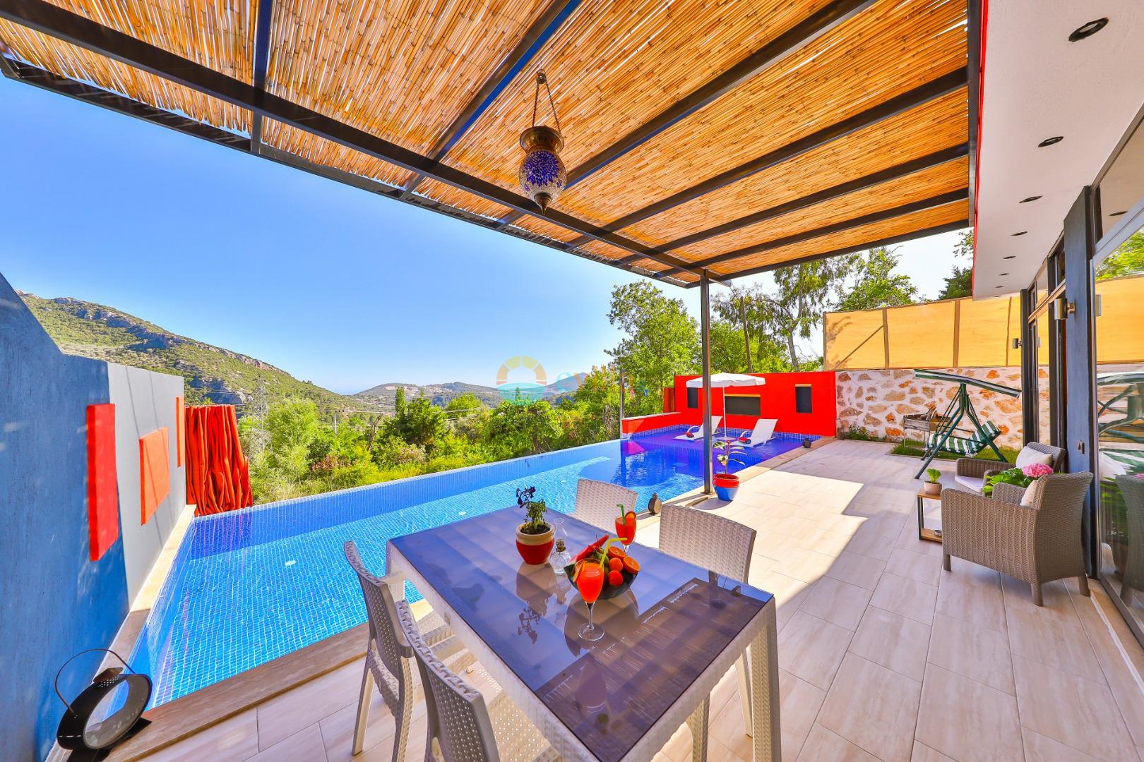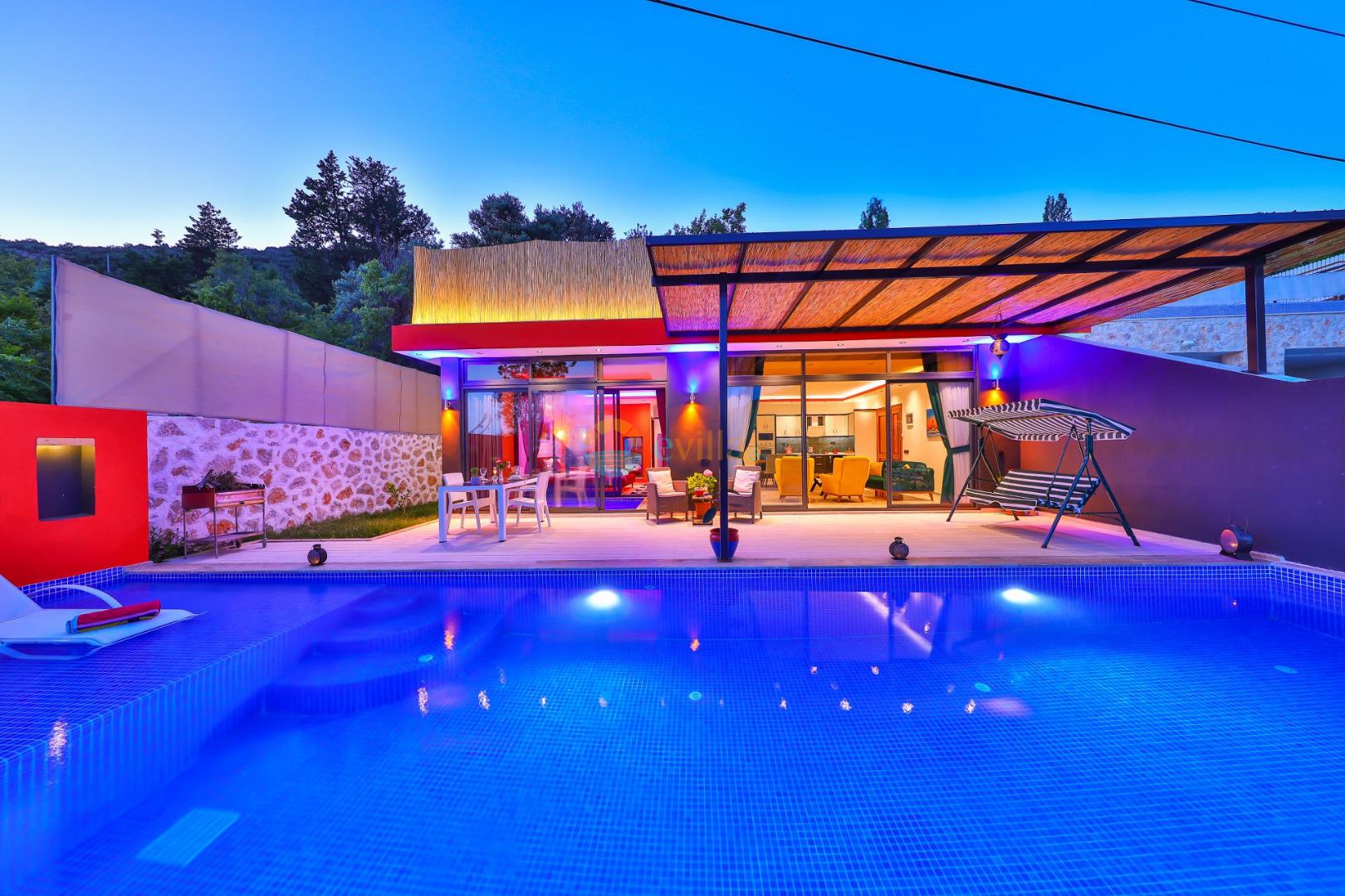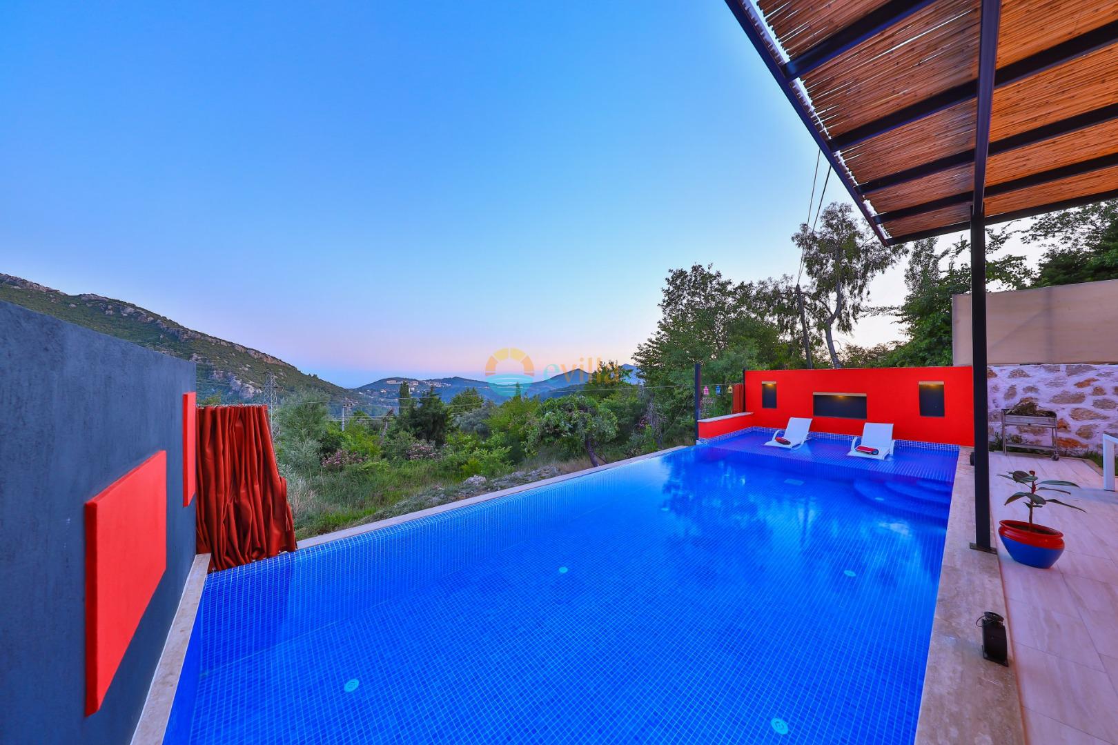 Unsere einstöckige, romantische Flitterwochenvilla befindet sich in Kalkans Lage İslamlar, an einem Punkt mit Blick auf die Natur und ist mit der Natur verflochten. Sie verfügt über eine Küche und ein Wohnzimmer im amerikanischen Stil sowie ein Suite-Schlafzimmer mit Meerblick. Unsere Gäste, die einen Urlaub in unserem Sommerhaus verbringen möchten, werden den geschützten Pool und einen Urlaub inmitten der Natur genießen.