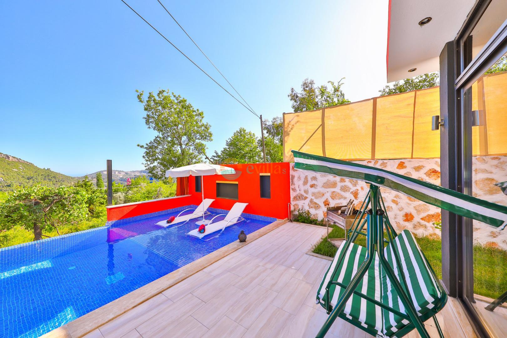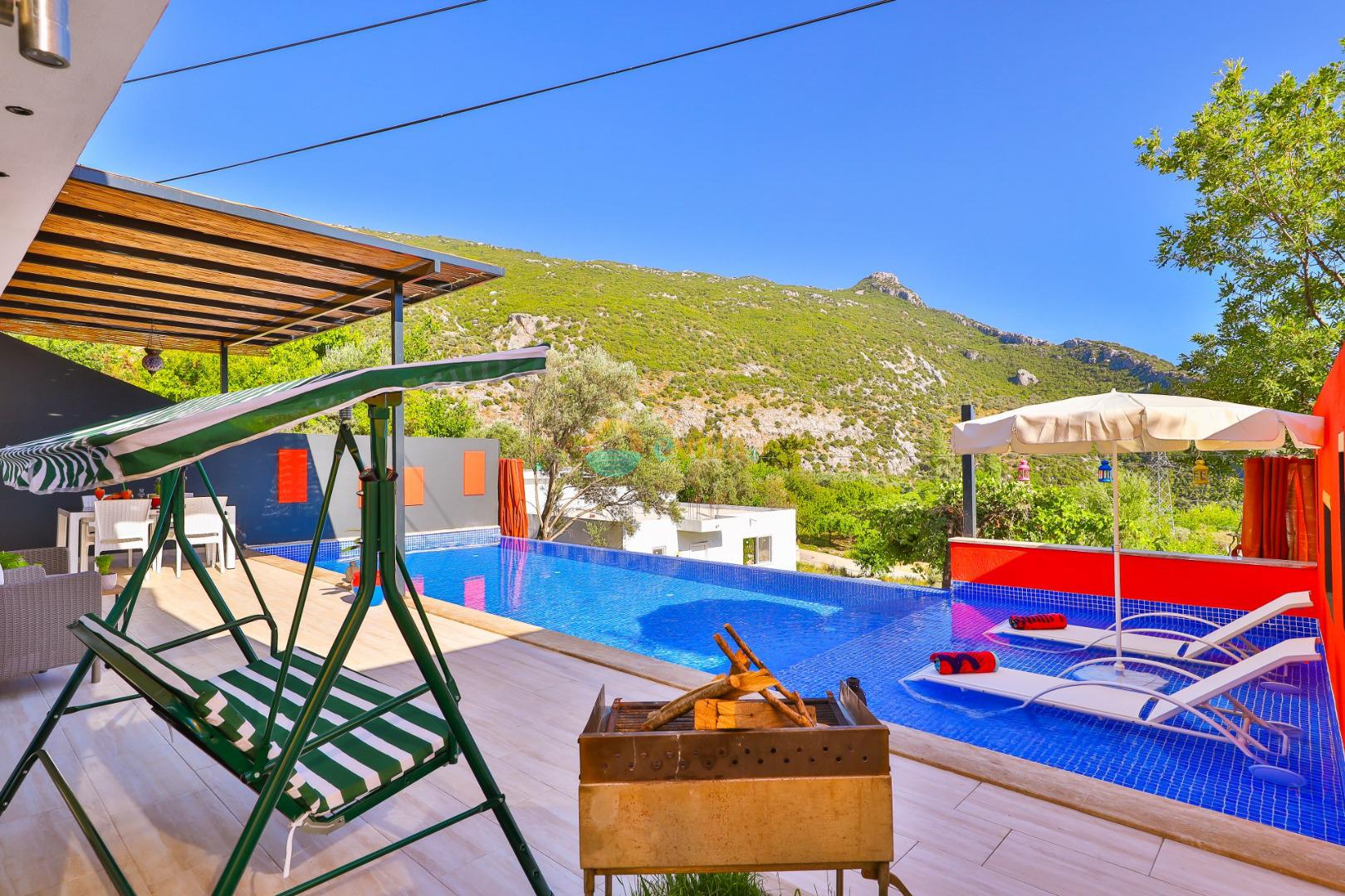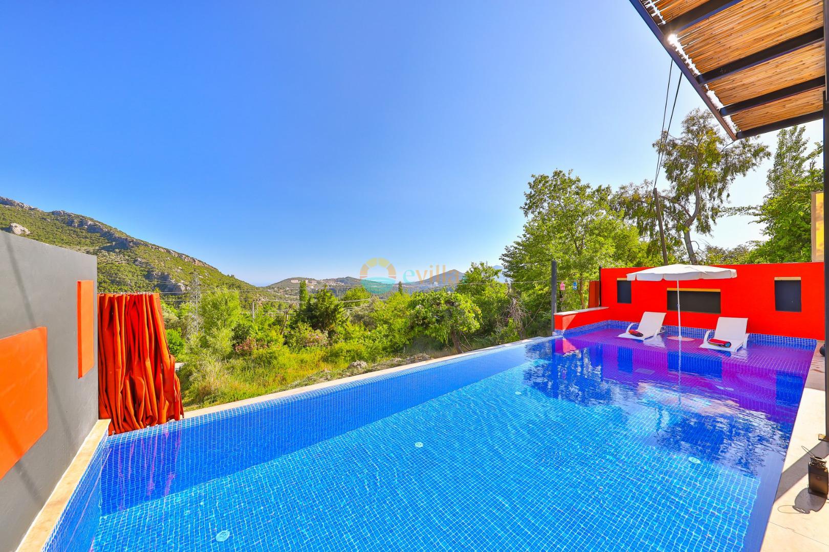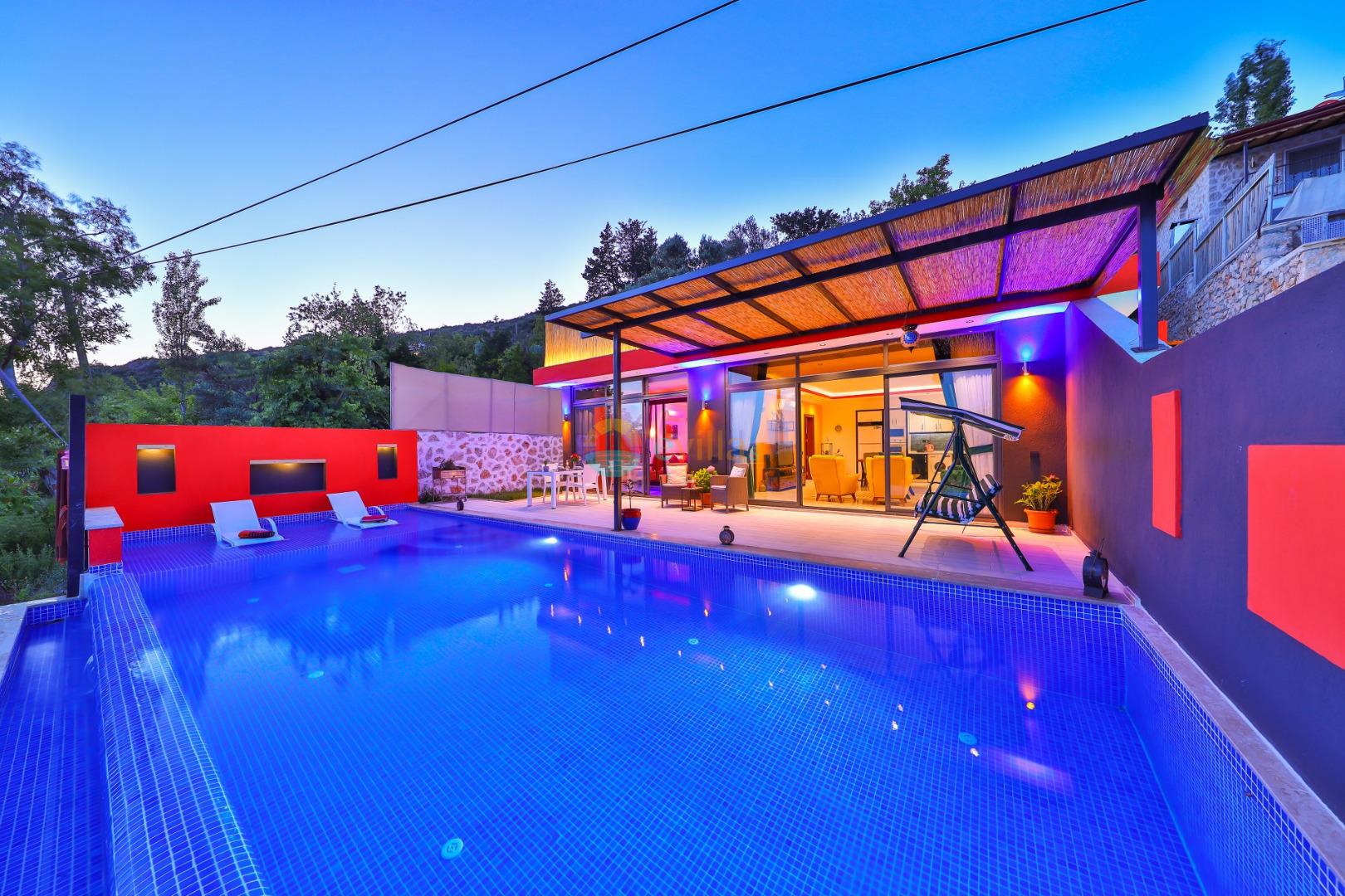 Unsere einstöckige, romantische Flitterwochenvilla befindet sich in Kalkans Lage İslamlar, an einem Punkt mit Blick auf die Natur und ist mit der Natur verflochten. Sie verfügt über eine Küche und ein Wohnzimmer im amerikanischen Stil sowie ein Suite-Schlafzimmer mit Meerblick. Unsere Gäste, die einen Urlaub in unserem Sommerhaus verbringen möchten, werden den geschützten Pool und einen Urlaub inmitten der Natur genießen.