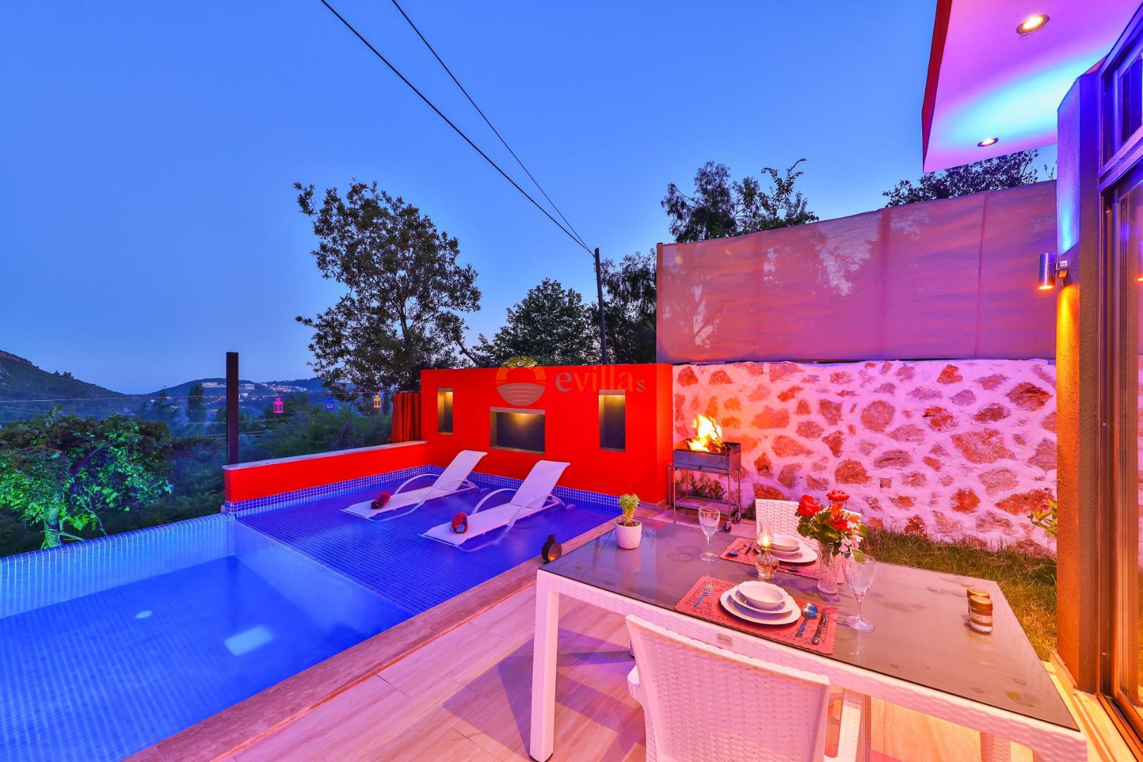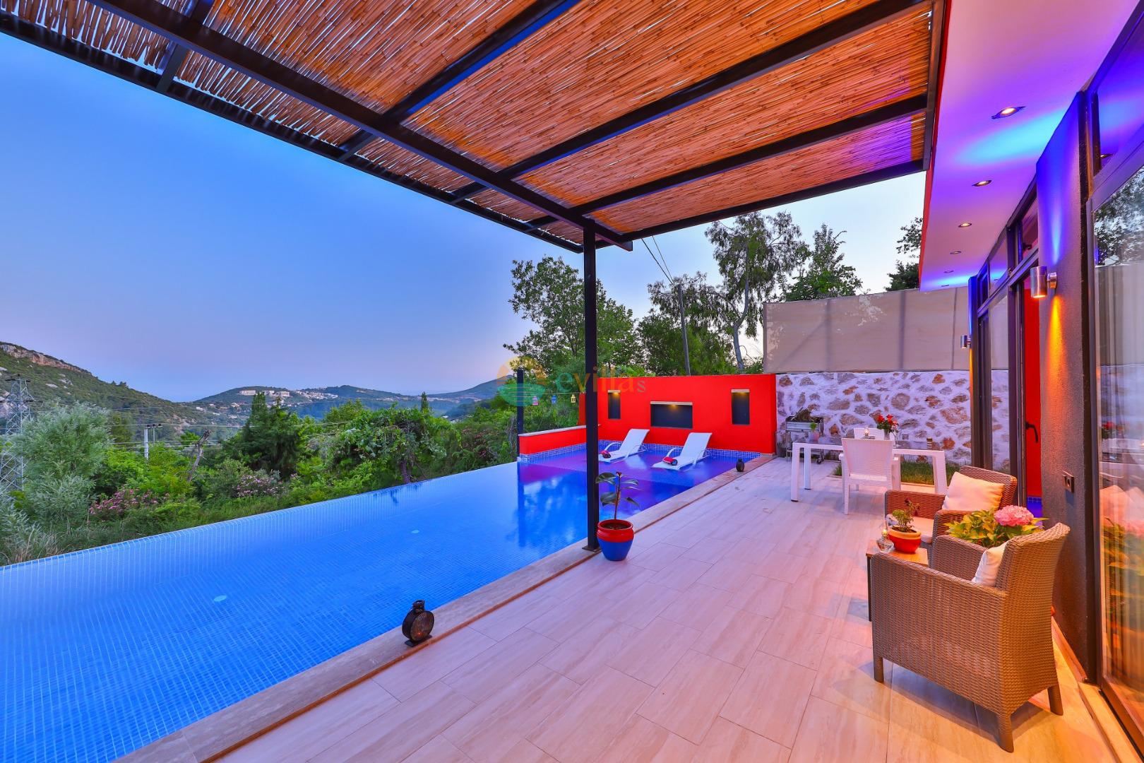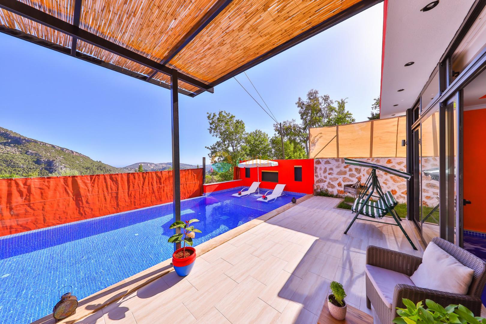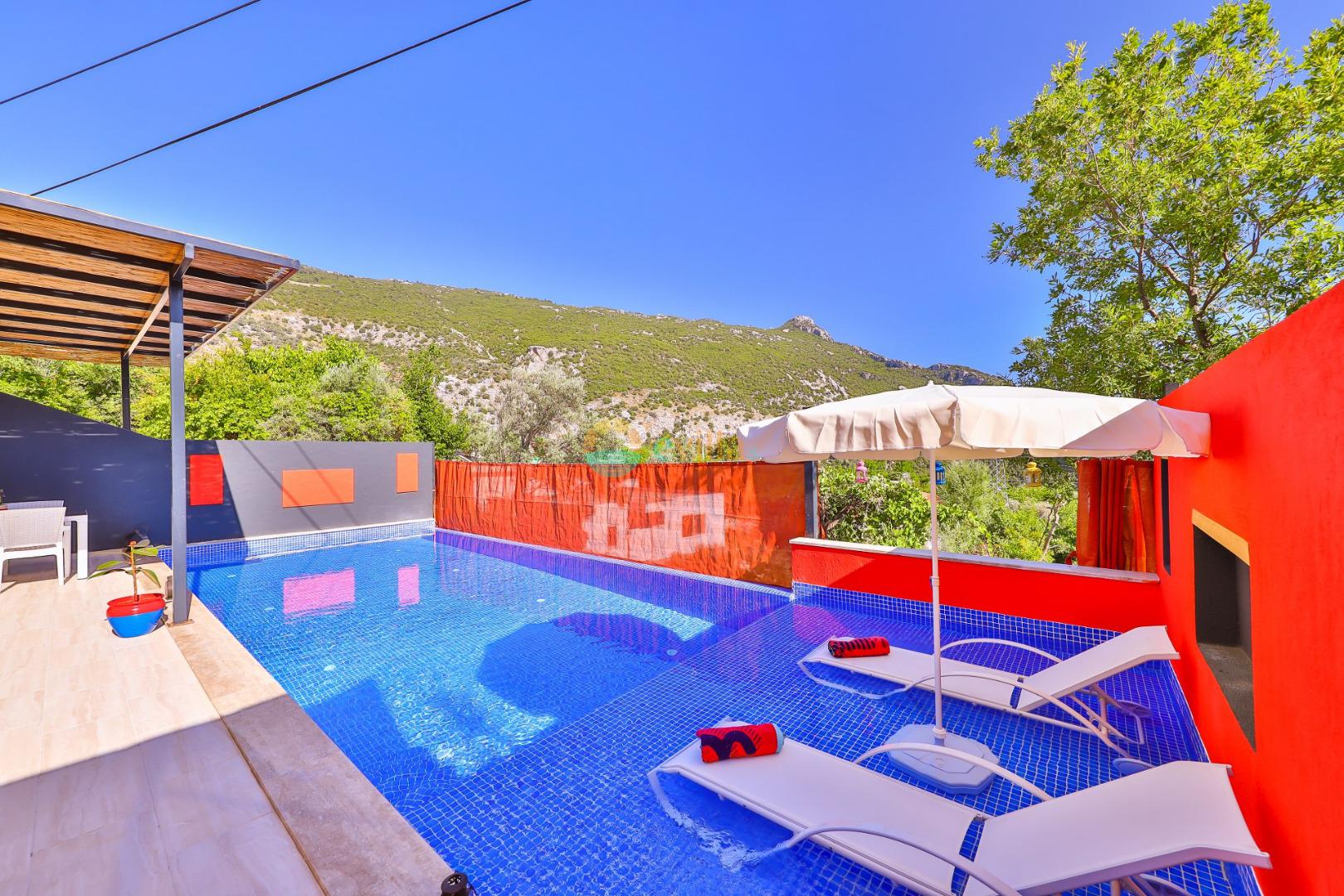 Unsere einstöckige, romantische Flitterwochenvilla befindet sich in Kalkans Lage İslamlar, an einem Punkt mit Blick auf die Natur und ist mit der Natur verflochten. Sie verfügt über eine Küche und ein Wohnzimmer im amerikanischen Stil sowie ein Suite-Schlafzimmer mit Meerblick. Unsere Gäste, die einen Urlaub in unserem Sommerhaus verbringen möchten, werden den geschützten Pool und einen Urlaub inmitten der Natur genießen.