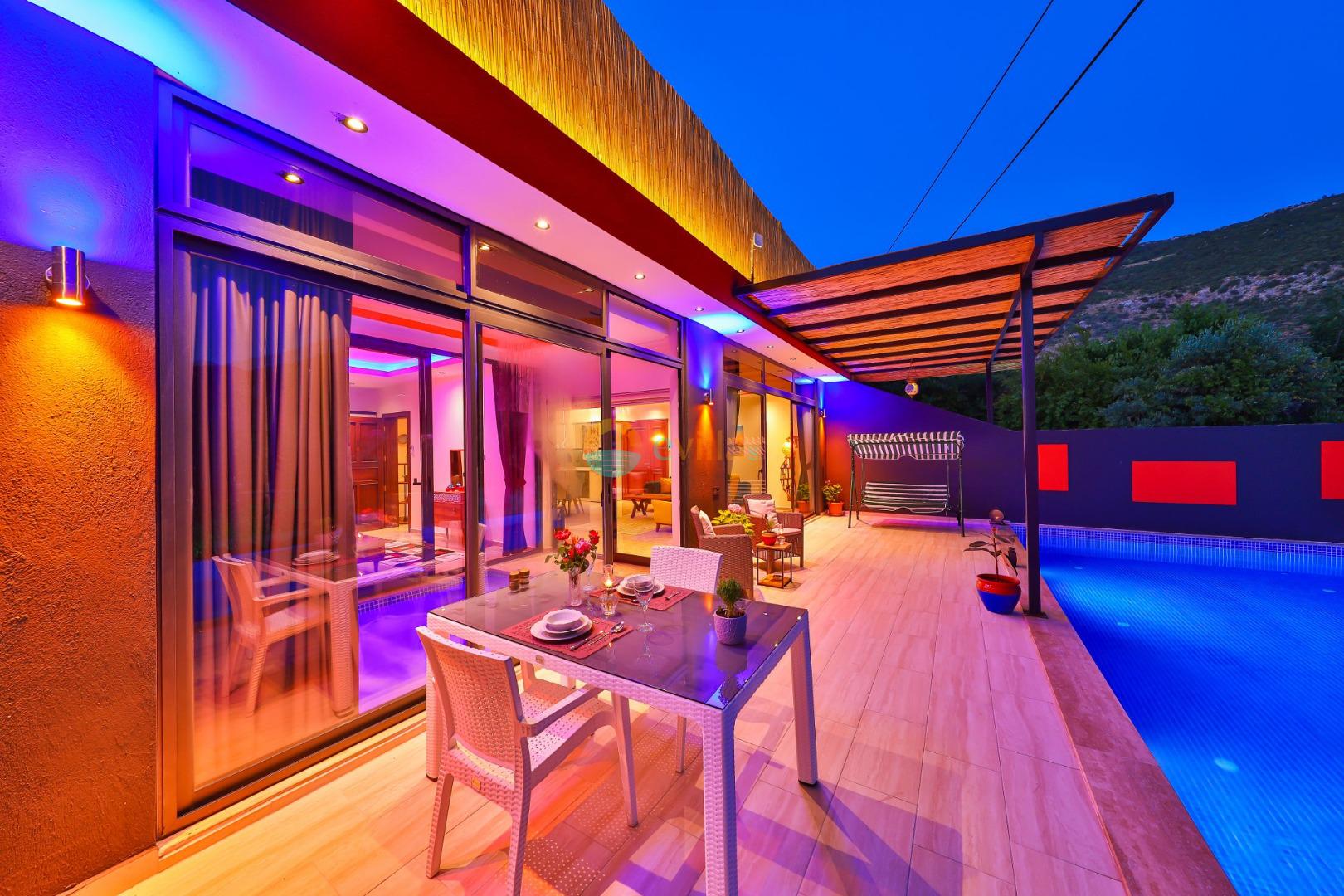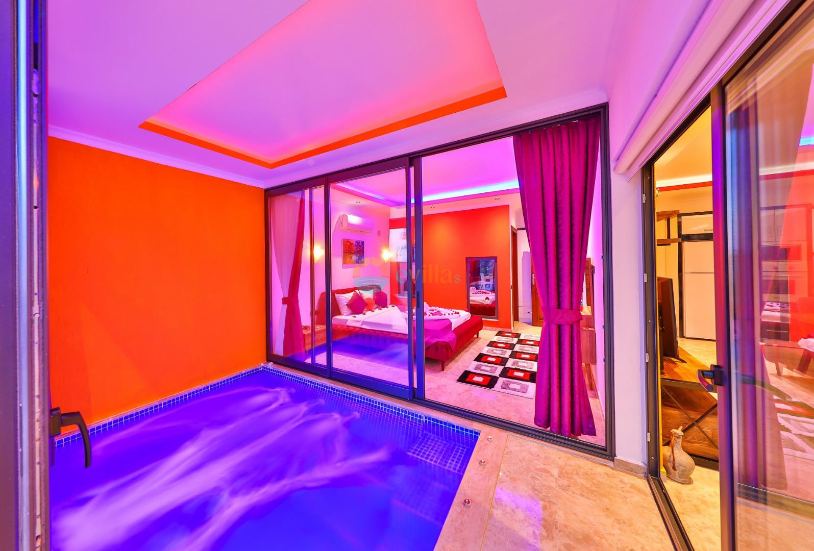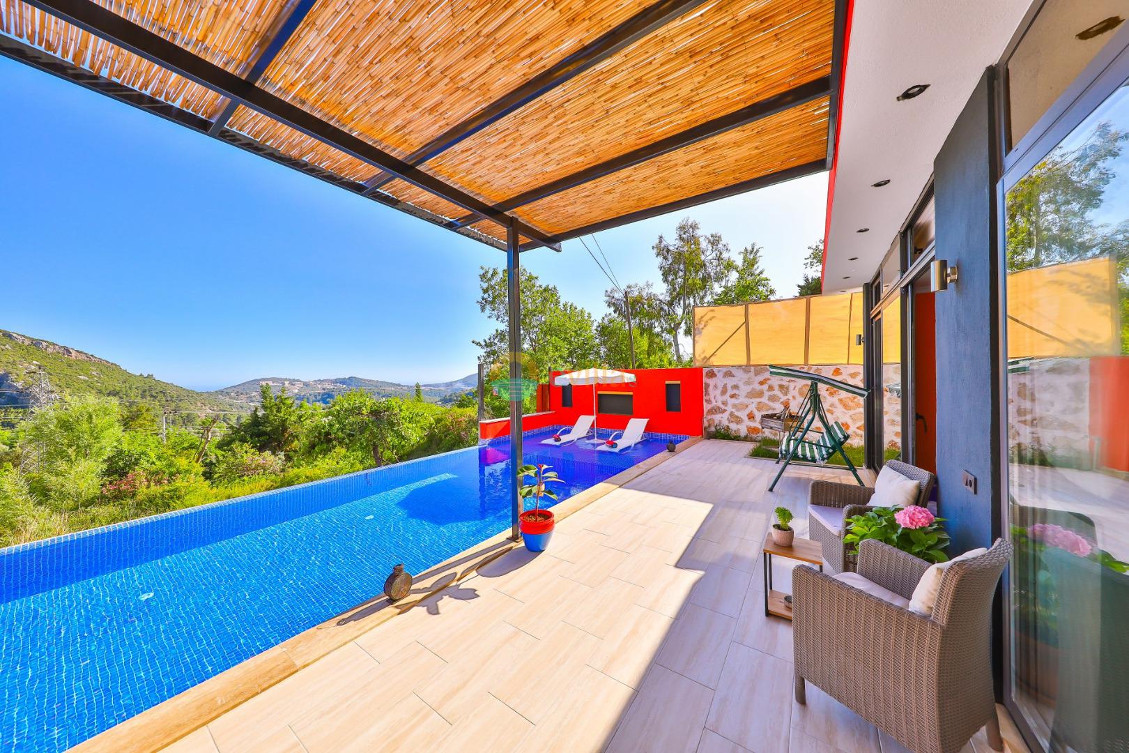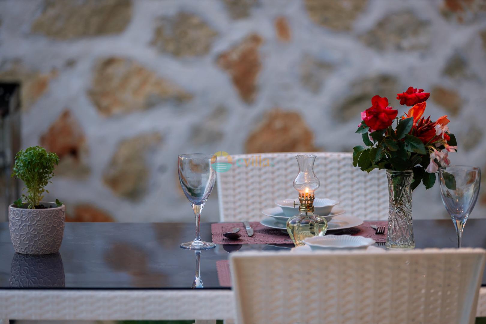 Unsere einstöckige, romantische Flitterwochenvilla befindet sich in Kalkans Lage İslamlar, an einem Punkt mit Blick auf die Natur und ist mit der Natur verflochten. Sie verfügt über eine Küche und ein Wohnzimmer im amerikanischen Stil sowie ein Suite-Schlafzimmer mit Meerblick. Unsere Gäste, die einen Urlaub in unserem Sommerhaus verbringen möchten, werden den geschützten Pool und einen Urlaub inmitten der Natur genießen.