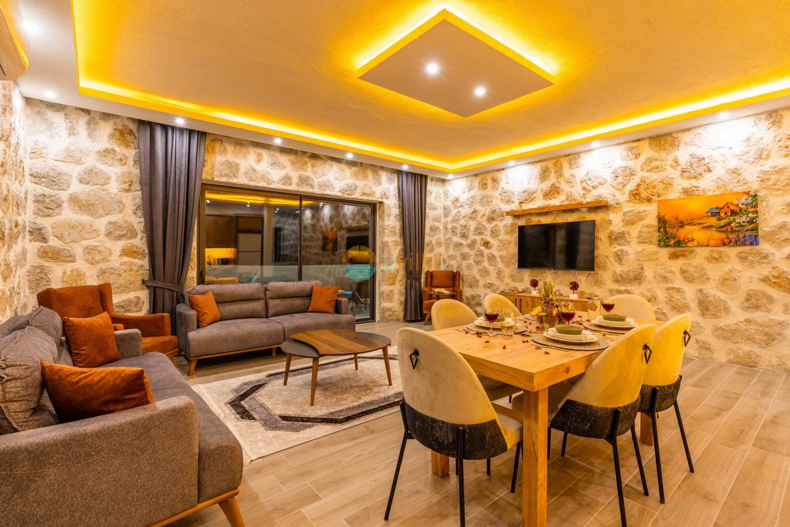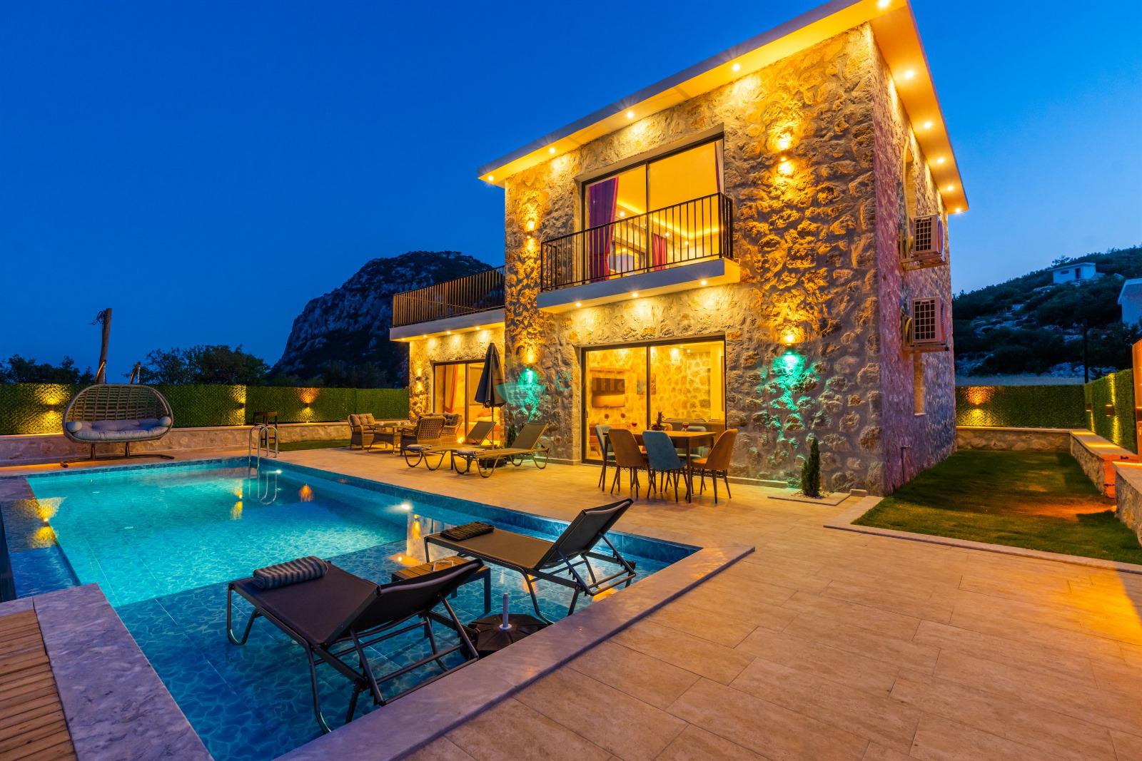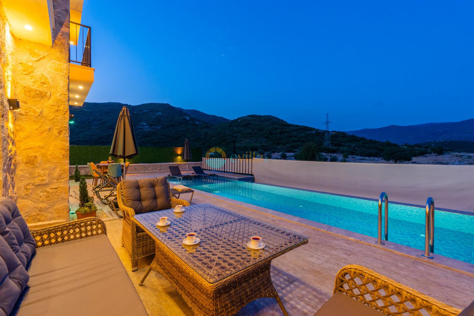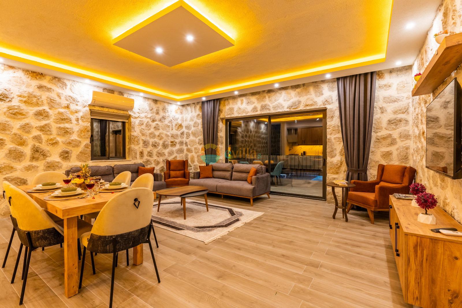 Unsere Villa, abgeschirmt vom Stadtlärm, liegt in der Gegend von Kalkan İkizce. Unsere Villa, die wegen ihrer sauberen Luft und Ruhe beliebt ist, verfügt über 2 Schlafzimmer und eine Unterkunftskapazität von 4 Personen. Im großen, geschützten Garten unserer Villa gibt es einen Pool, eine Schaukel, eine Sonnenliege, eine Sitzecke, einen Esstisch und einen Grill. In einem der Schlafzimmer unserer Villa gibt es einen Whirlpool, der mit architektonischer Harmonie aus Stein und Holz gestaltet wurde. Es ist eine ideale Mietvilla für konservative Familien, die einen ruhigen und angenehmen Urlaub verbringen möchten.
