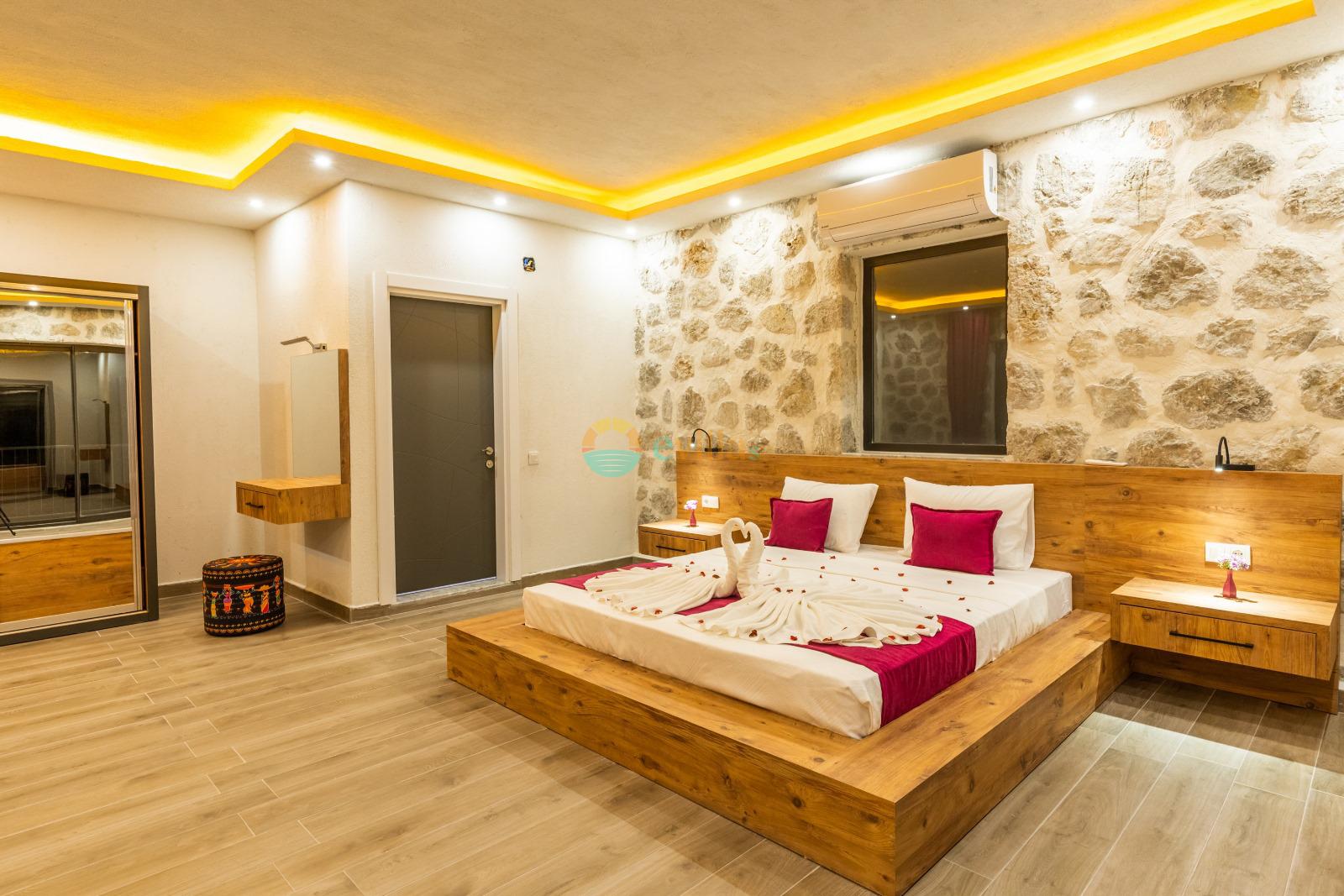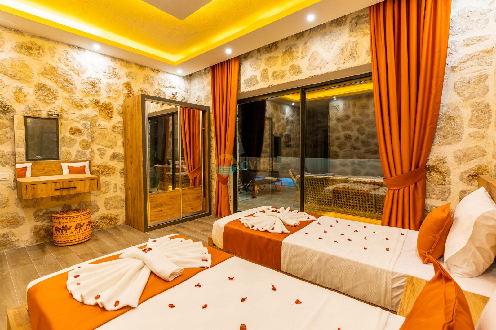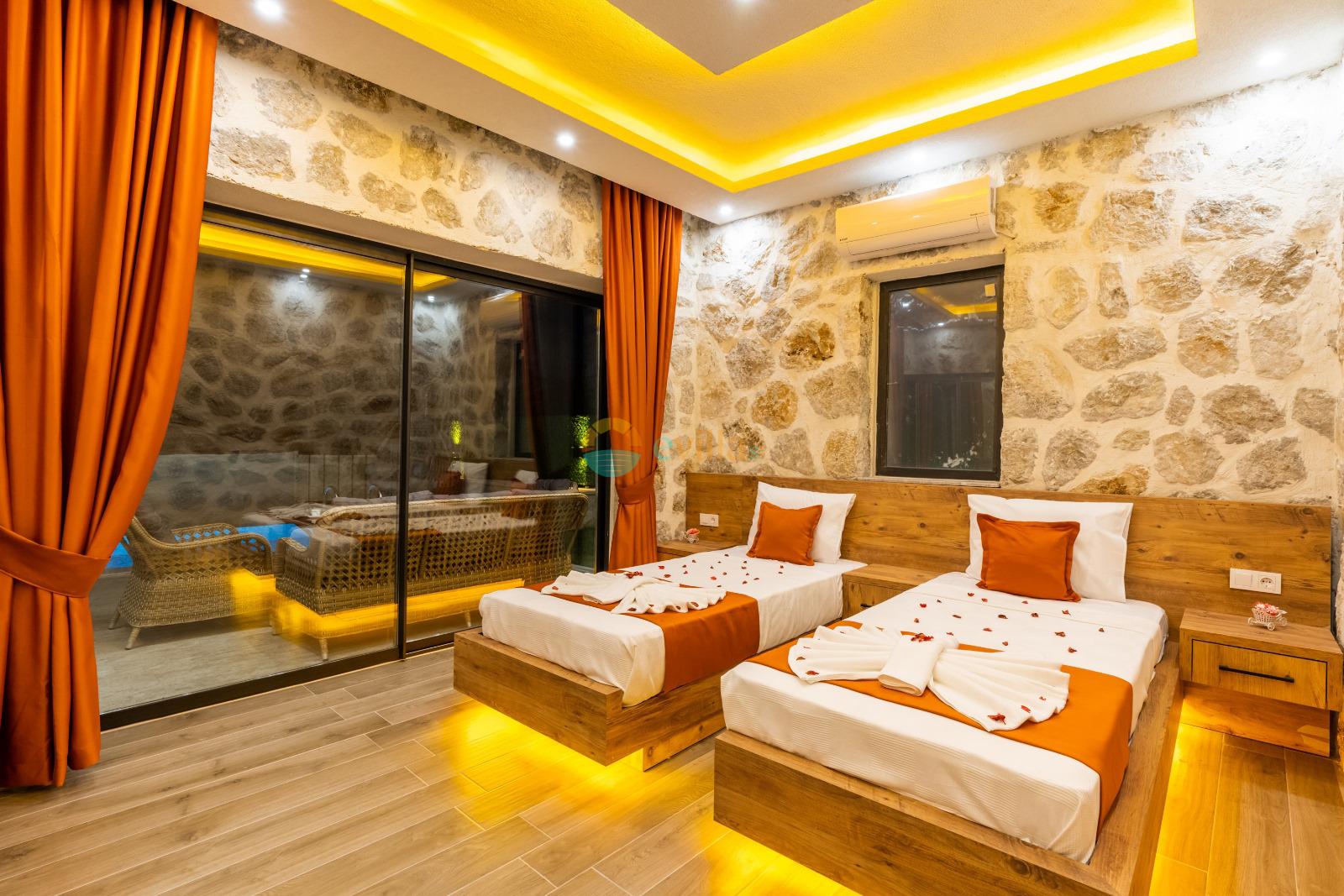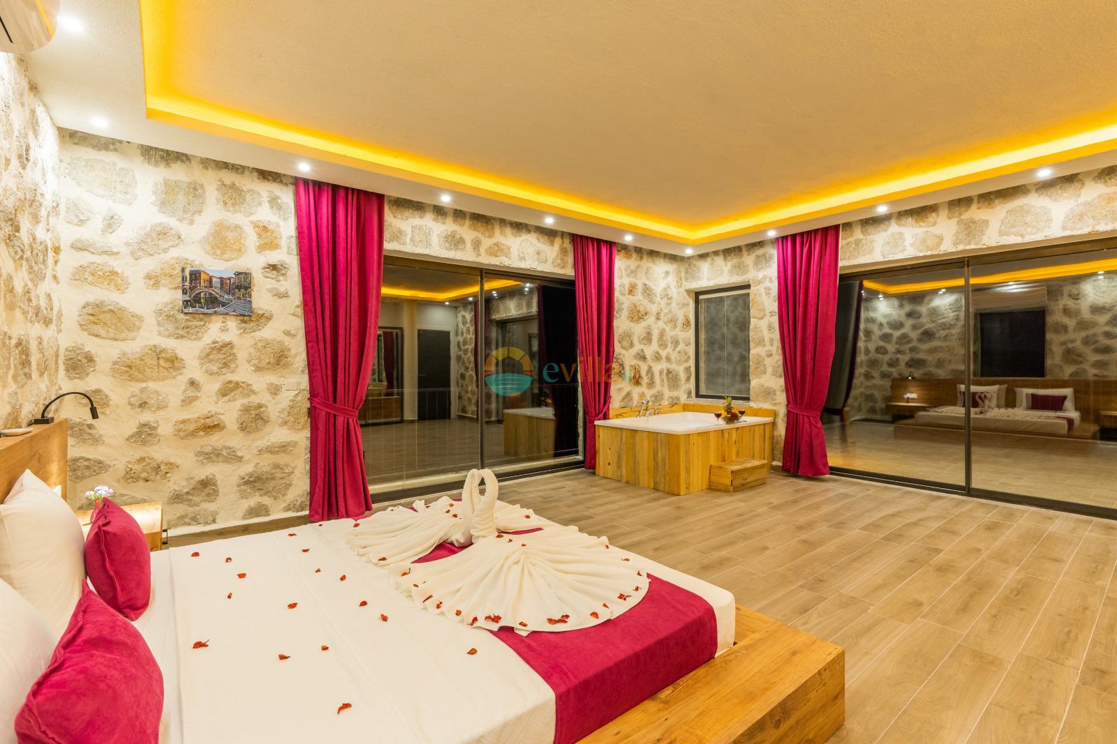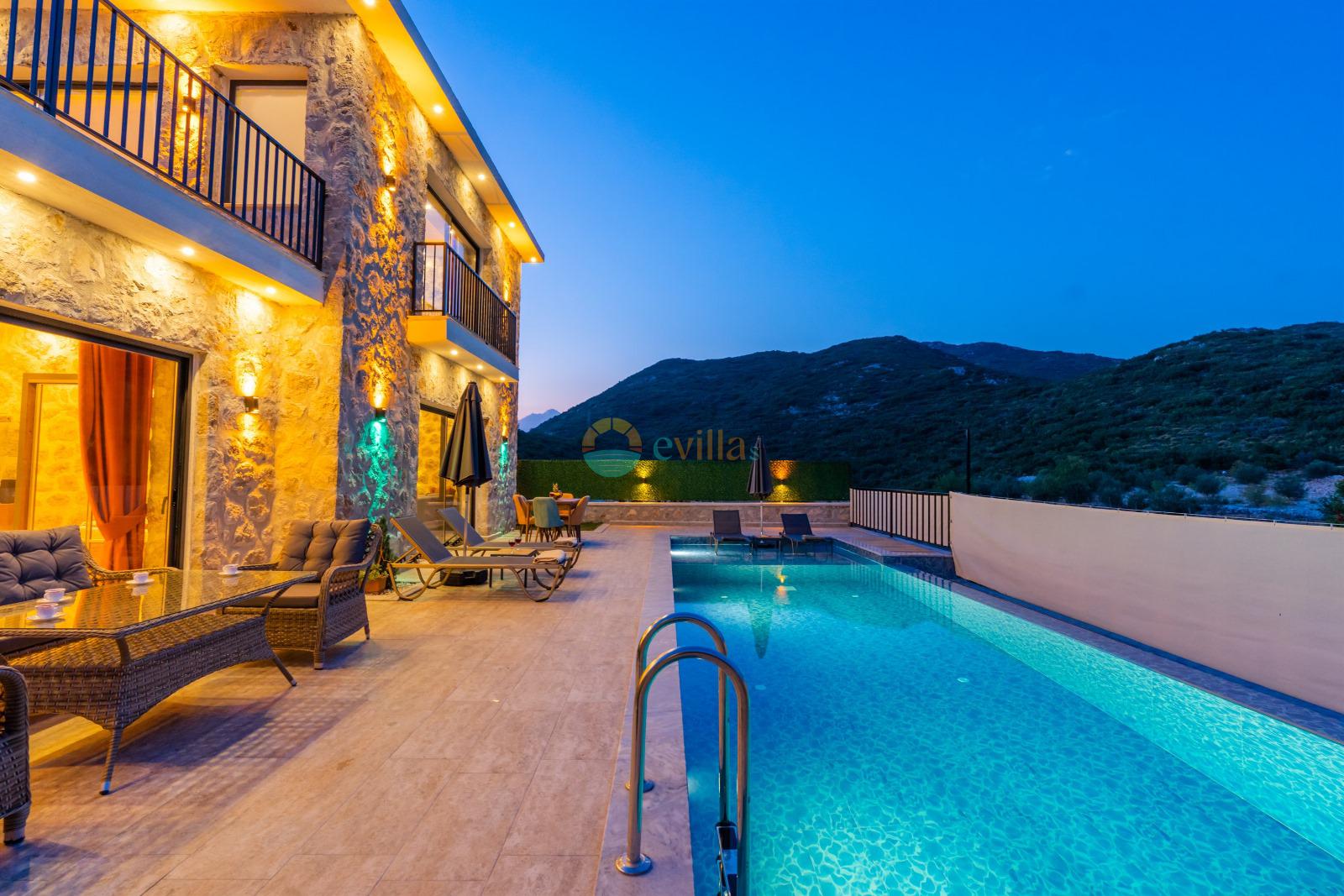 Unsere Villa, abgeschirmt vom Stadtlärm, liegt in der Gegend von Kalkan İkizce. Unsere Villa, die wegen ihrer sauberen Luft und Ruhe beliebt ist, verfügt über 2 Schlafzimmer und eine Unterkunftskapazität von 4 Personen. Im großen, geschützten Garten unserer Villa gibt es einen Pool, eine Schaukel, eine Sonnenliege, eine Sitzecke, einen Esstisch und einen Grill. In einem der Schlafzimmer unserer Villa gibt es einen Whirlpool, der mit architektonischer Harmonie aus Stein und Holz gestaltet wurde. Es ist eine ideale Mietvilla für konservative Familien, die einen ruhigen und angenehmen Urlaub verbringen möchten.