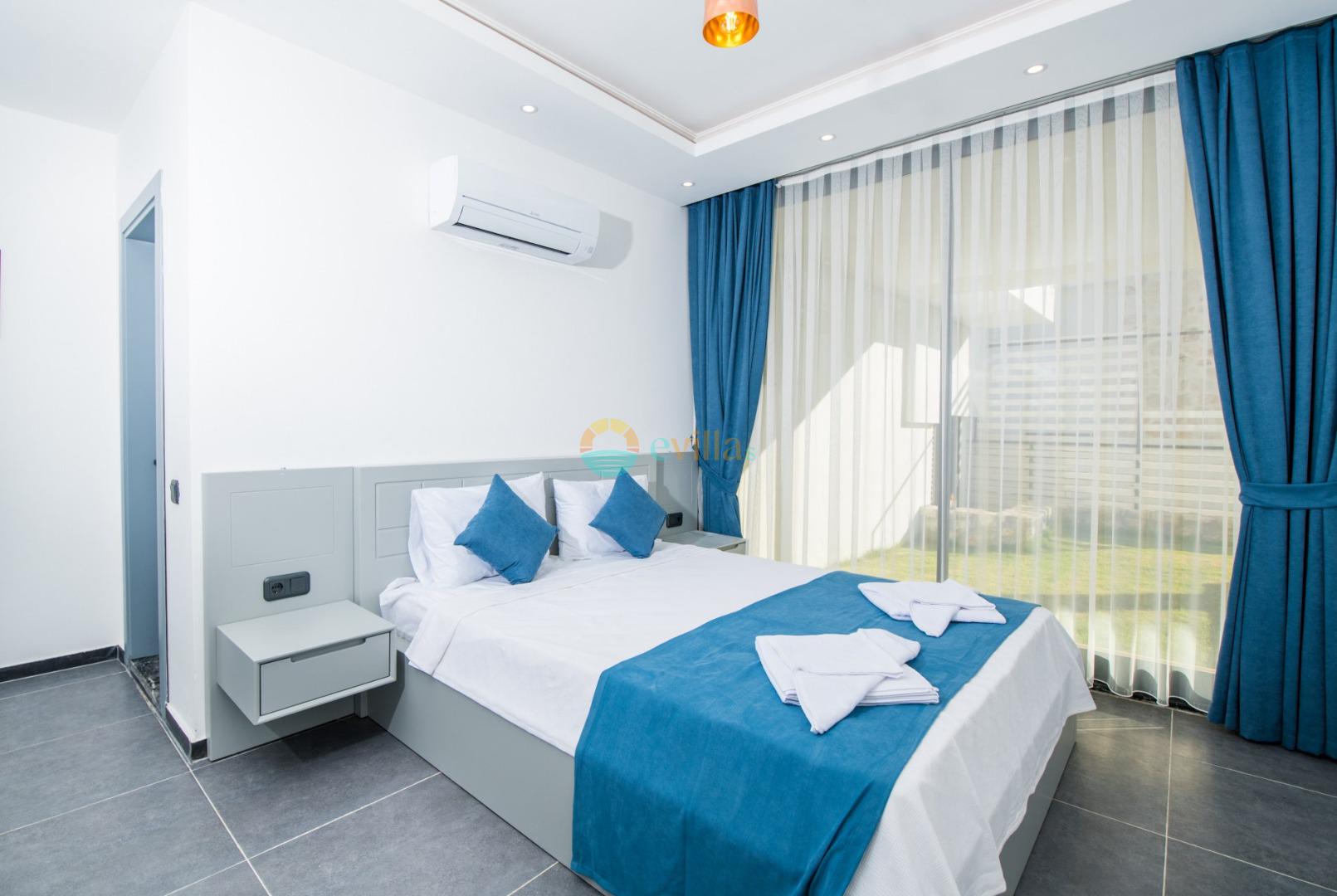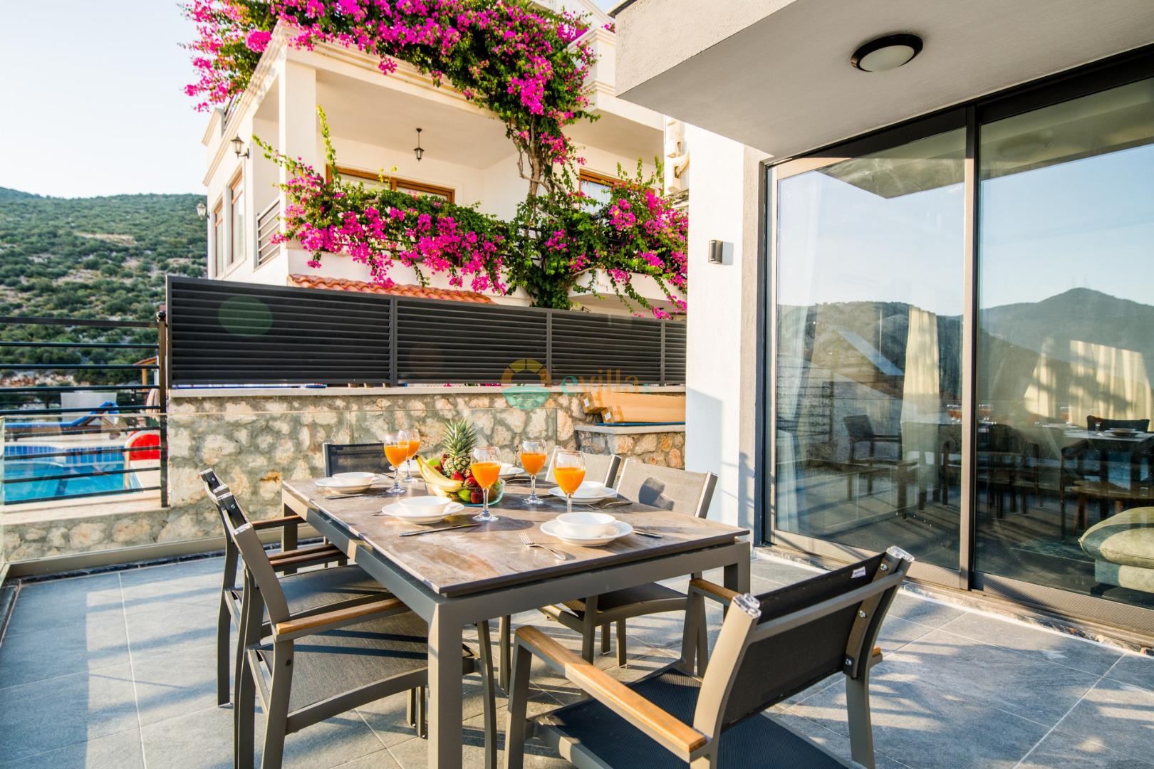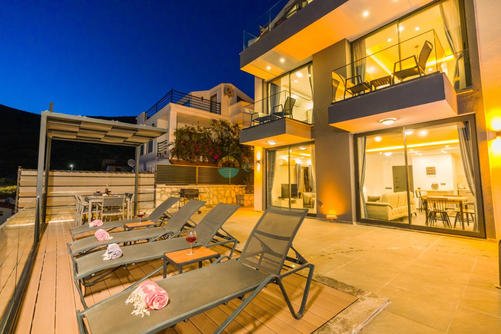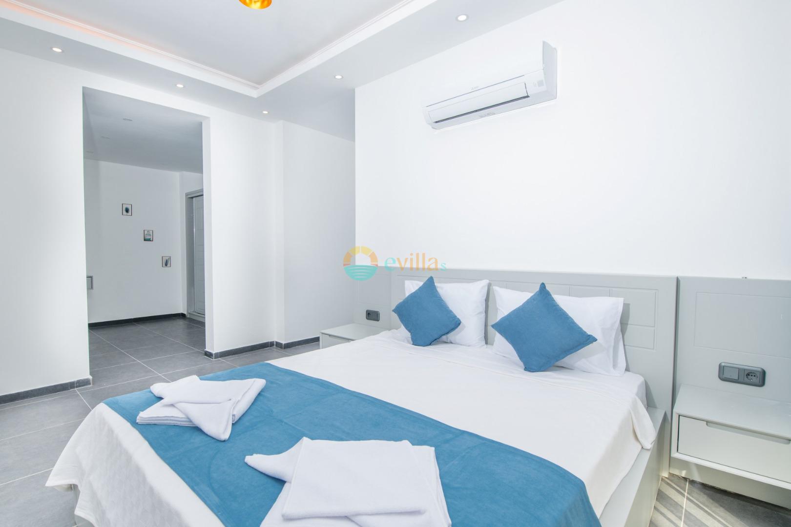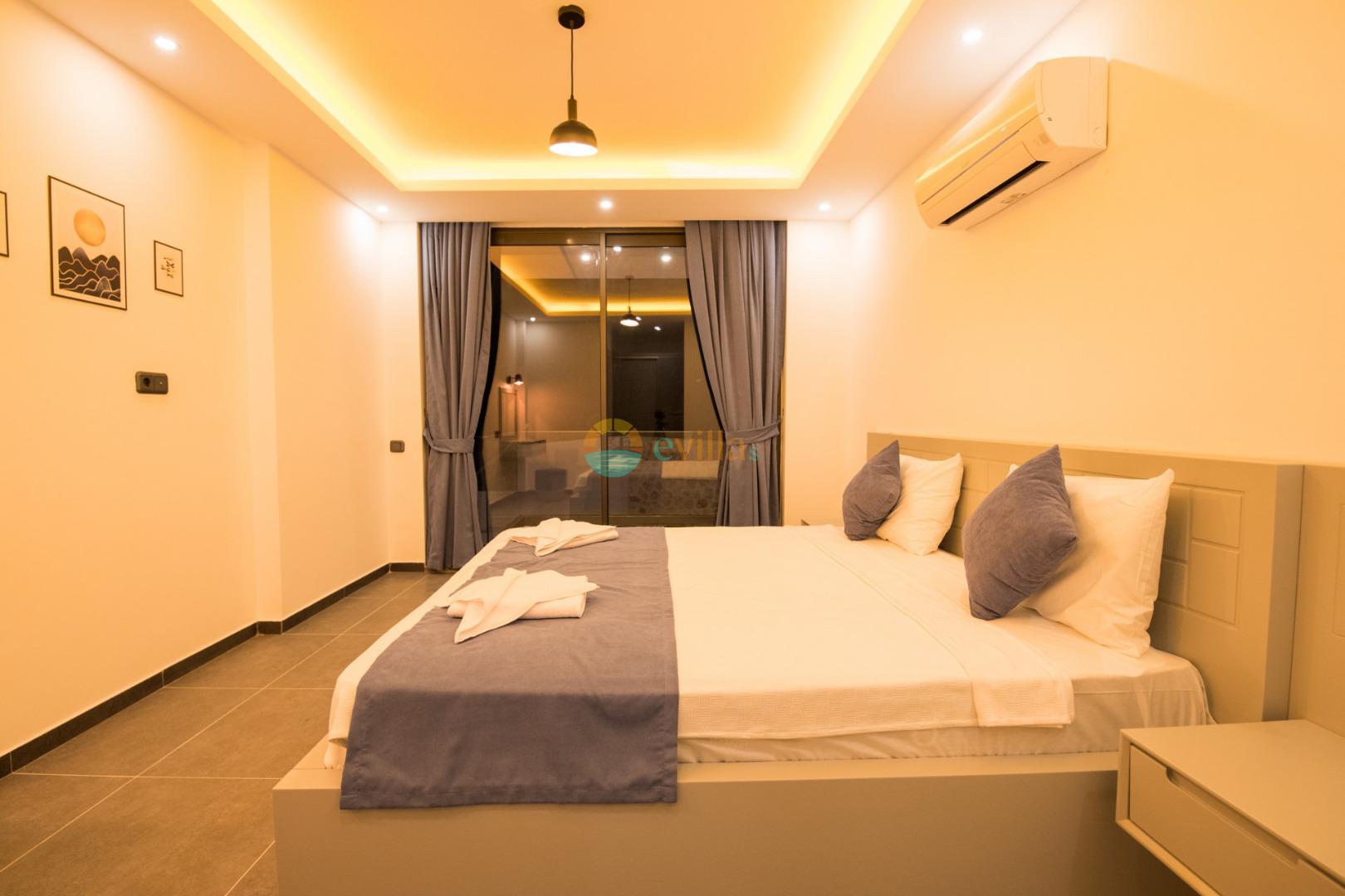 Unsere Villa ist eine Mietvilla mit einer sehr großen Struktur, 4 Schlafzimmern und einer Unterkunftskapazität von 10 Personen, gelegen in der Region Kalamar, dem einzigartigen Schönheitszentrum von Kalkan. Es ist eine ideale Villa, insbesondere für große Familiengruppen. Von Ihrem Zimmer aus können Sie bequem den Meerblick genießen. Ein Schlafzimmer verfügt über einen Whirlpool. Aufgrund der Nähe zum Zentrum und zum Meer gehört sie zu unseren am häufigsten bevorzugten Villen.