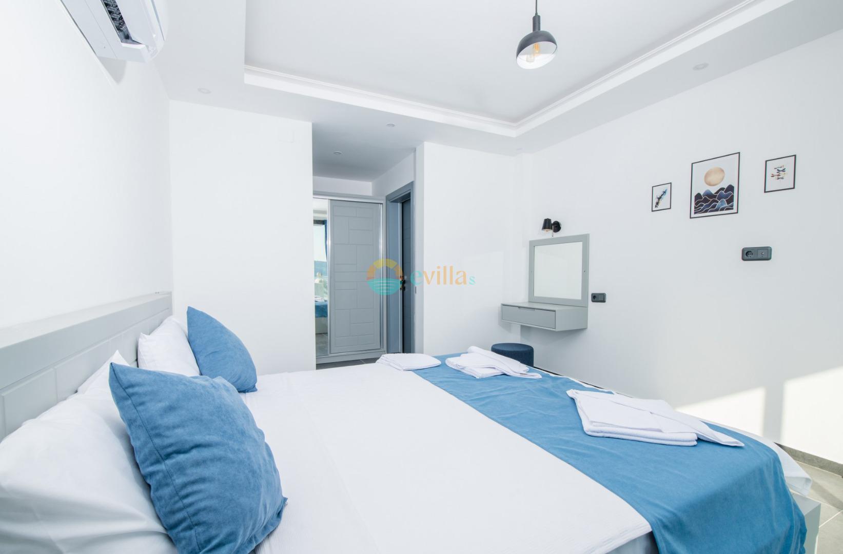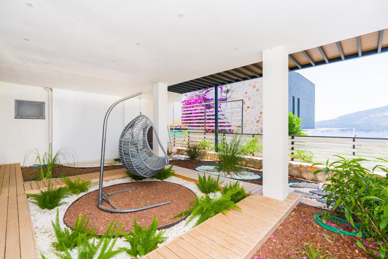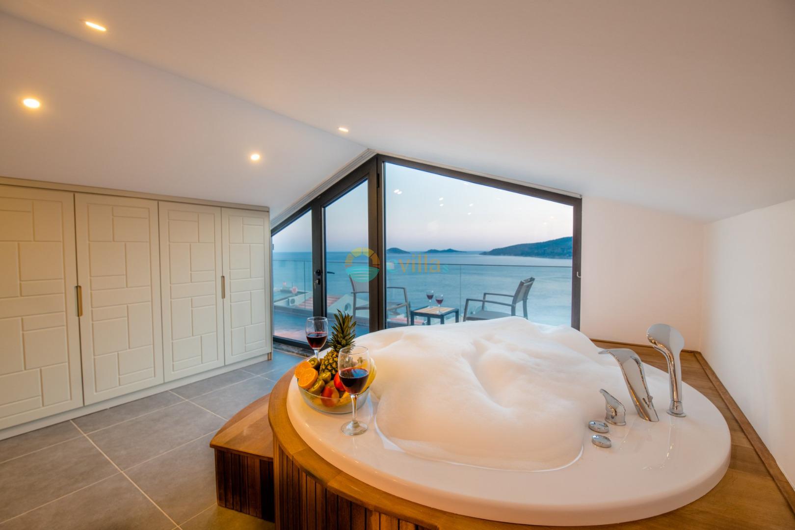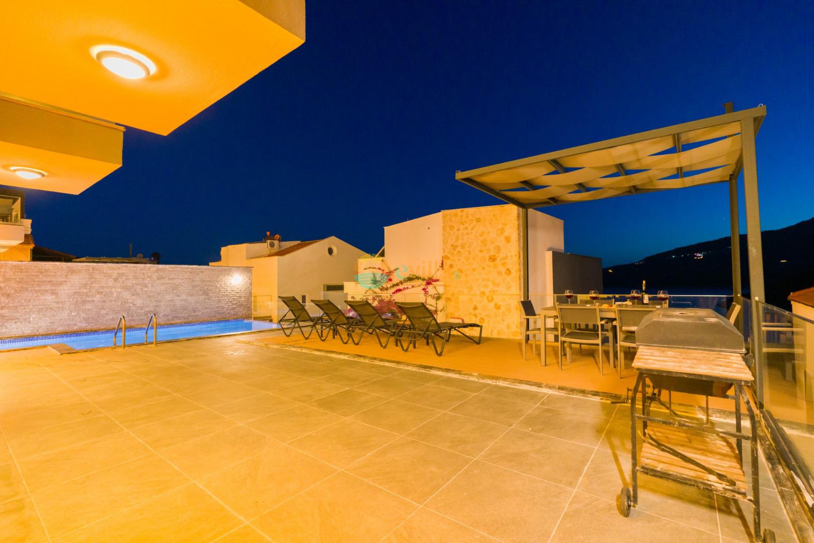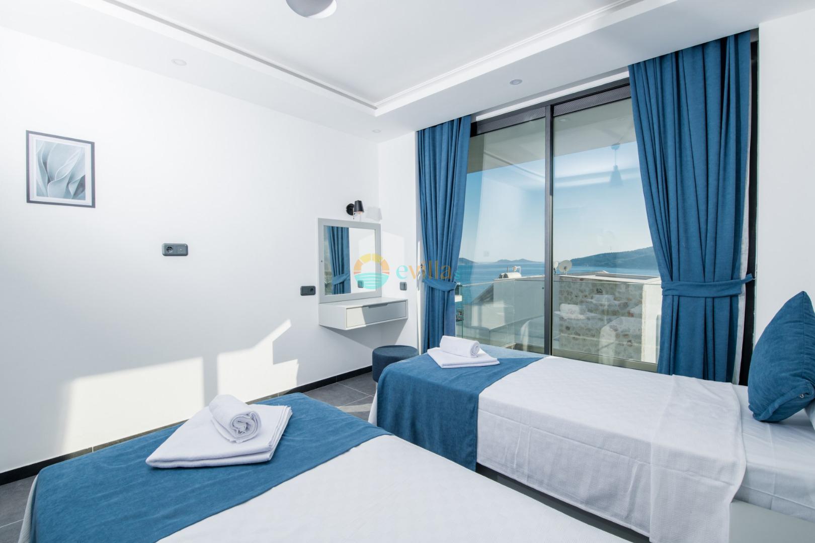 Unsere Villa ist eine Mietvilla mit einer sehr großen Struktur, 4 Schlafzimmern und einer Unterkunftskapazität von 10 Personen, gelegen in der Region Kalamar, dem einzigartigen Schönheitszentrum von Kalkan. Es ist eine ideale Villa, insbesondere für große Familiengruppen. Von Ihrem Zimmer aus können Sie bequem den Meerblick genießen. Ein Schlafzimmer verfügt über einen Whirlpool. Aufgrund der Nähe zum Zentrum und zum Meer gehört sie zu unseren am häufigsten bevorzugten Villen.